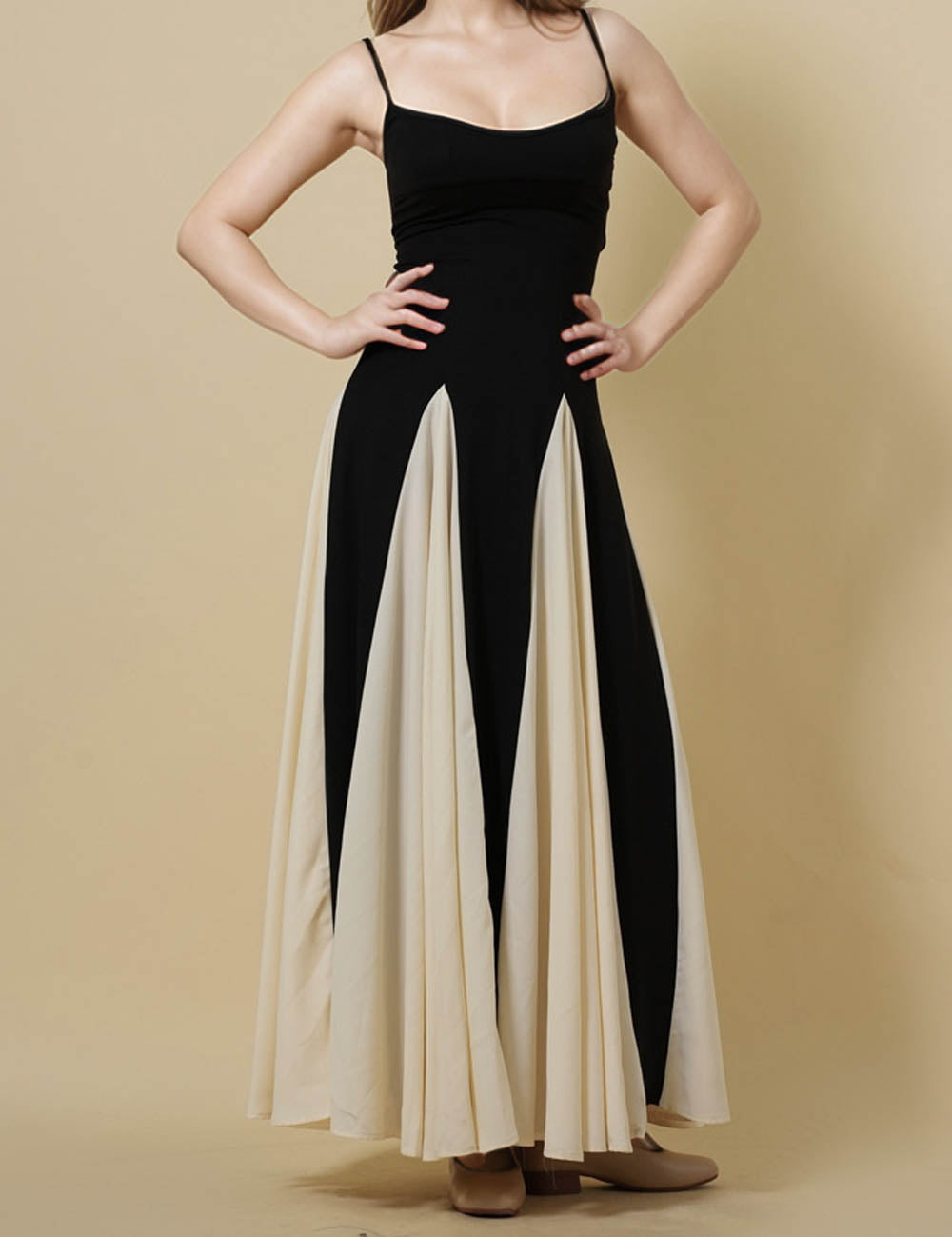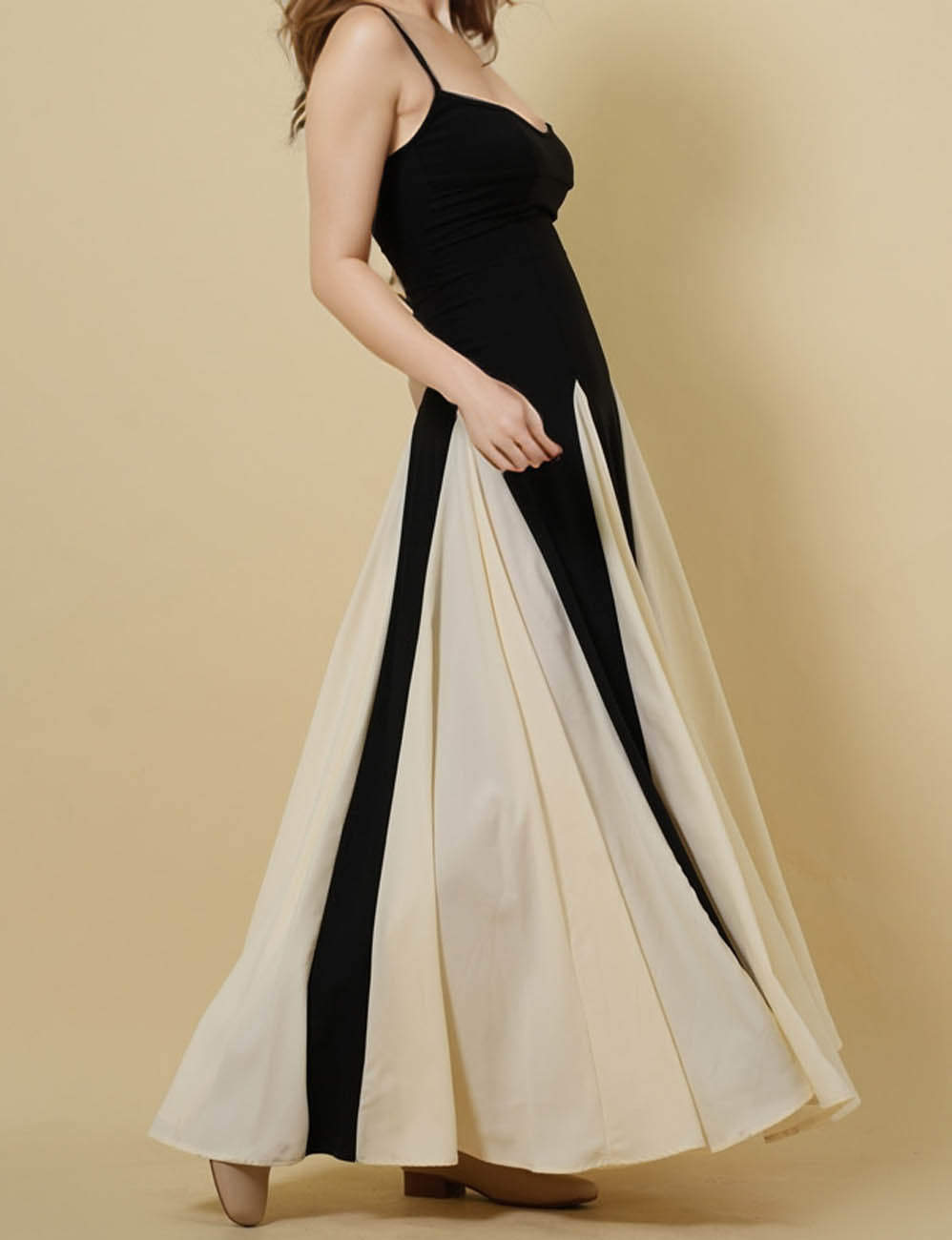 Ladies String Shoulder Color Block Maxi Dress SKD51235