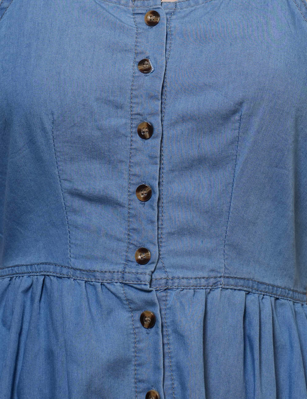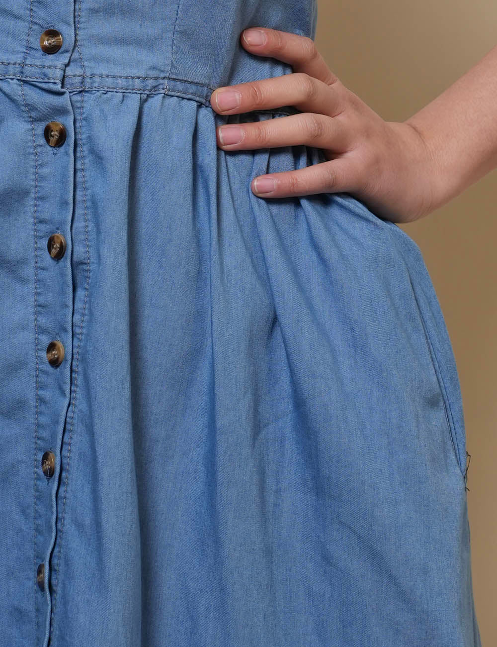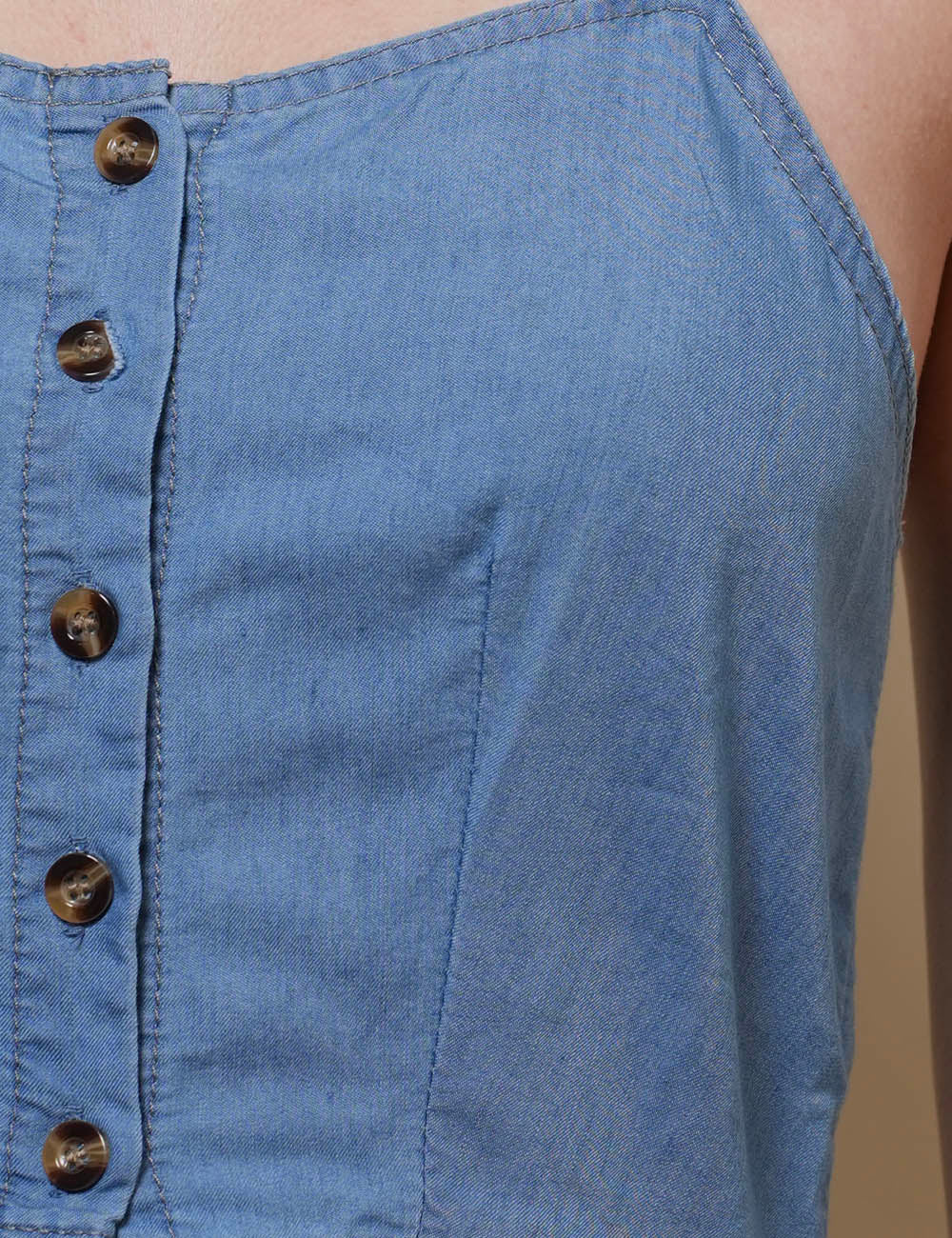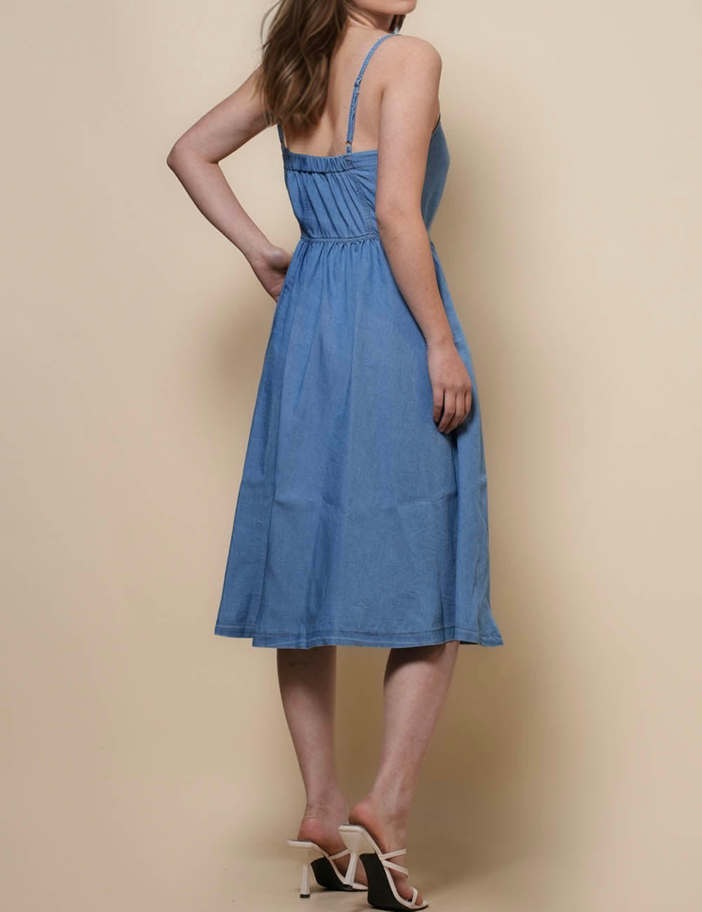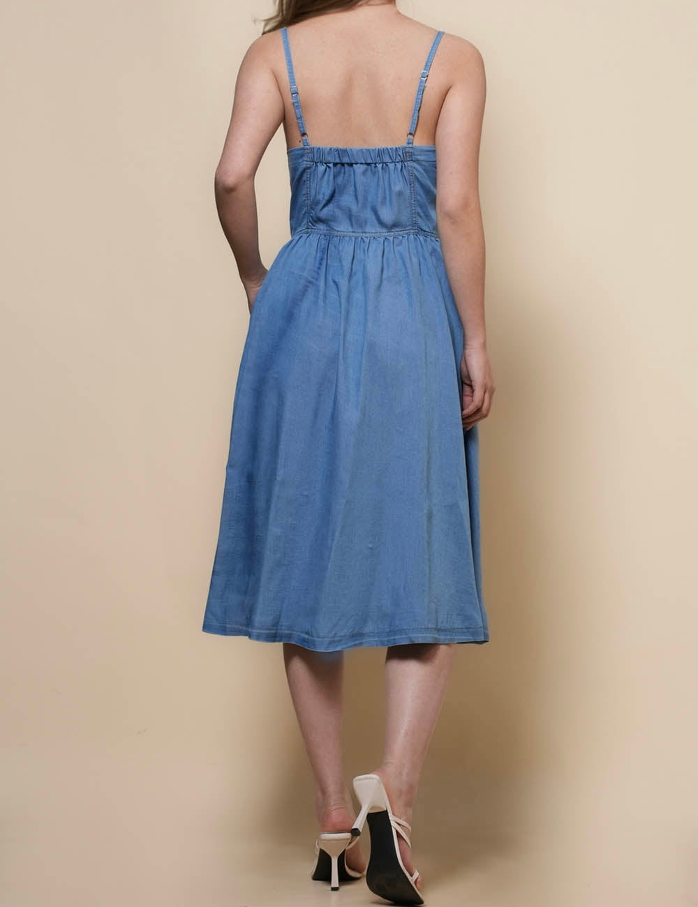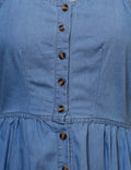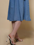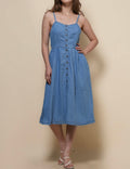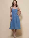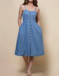 Ladies String Shoulder Denim Midi Dress SKD50012