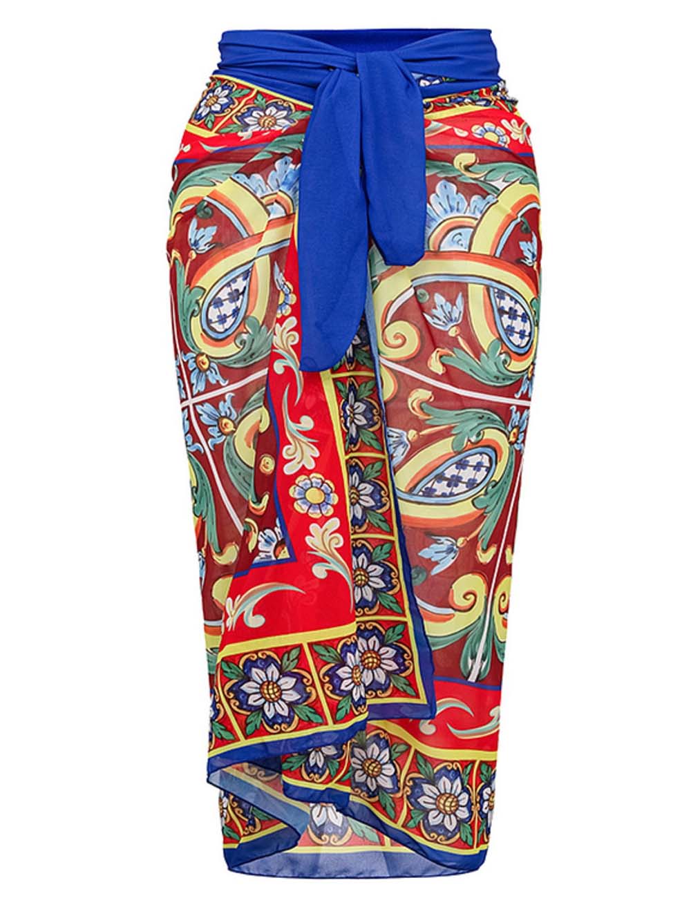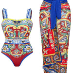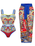 Ladies String Shoulder Print One Piece Swimwear with Salong
