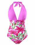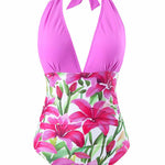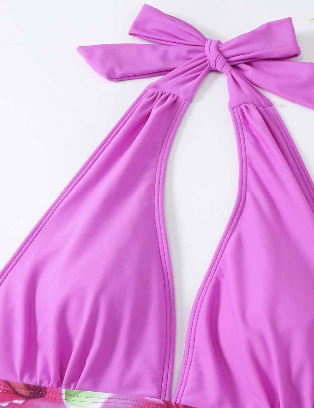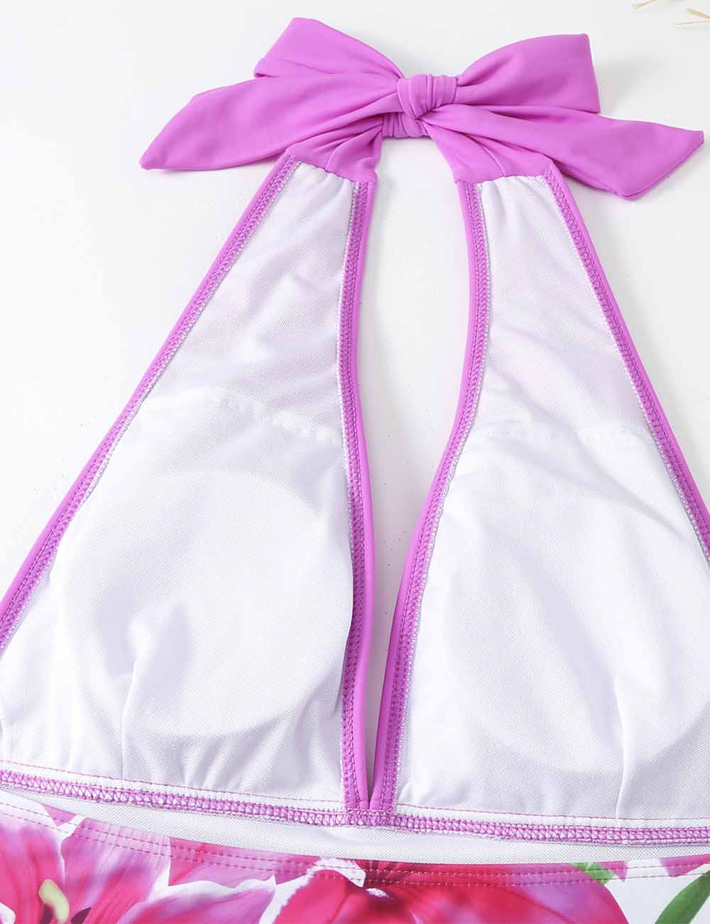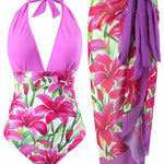 Ladies String Tie Floral Print One Piece Swimwear with Salong