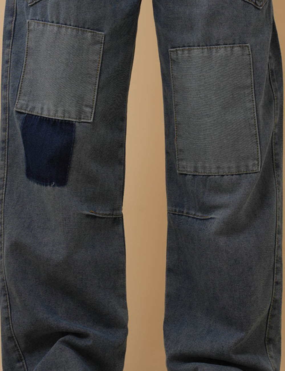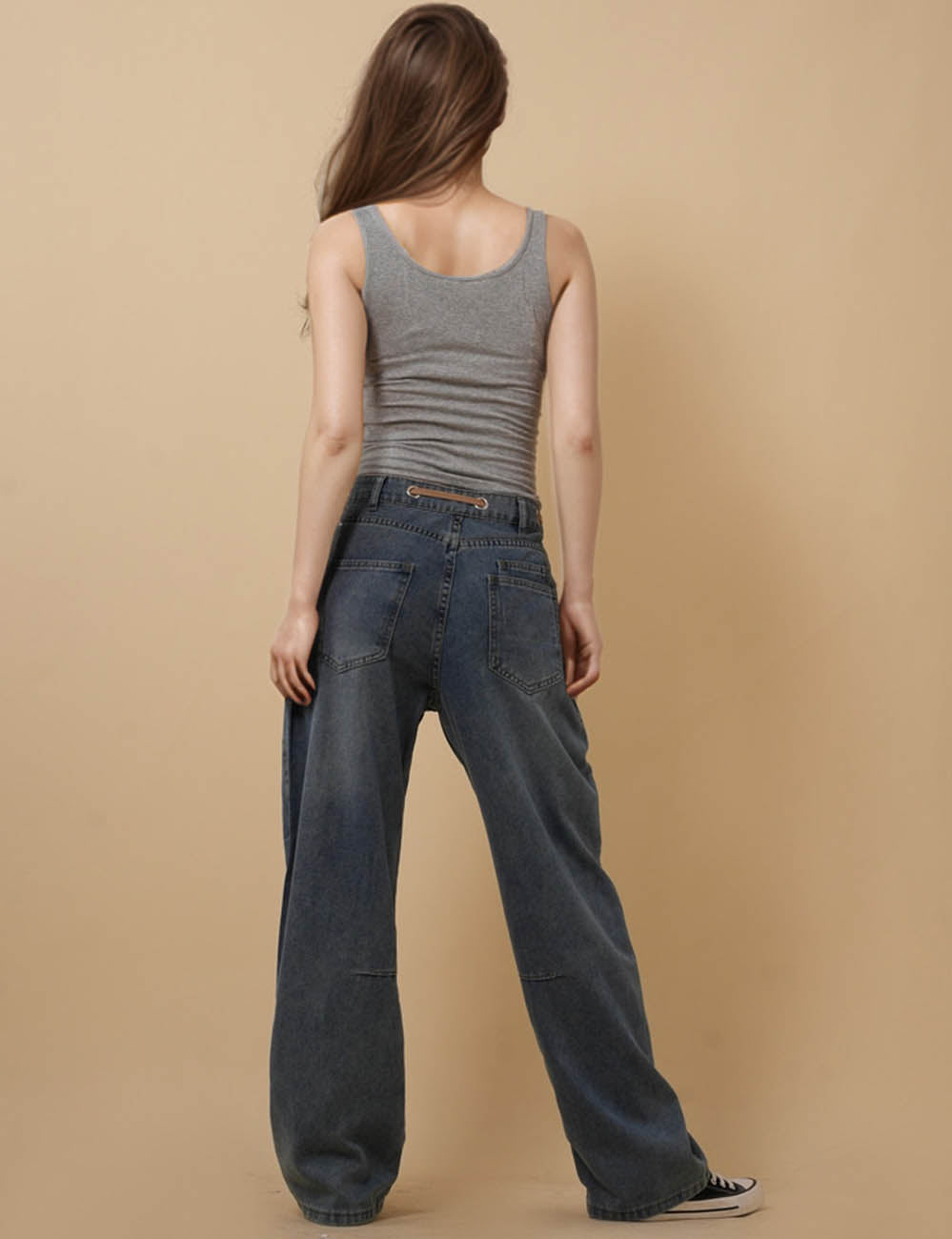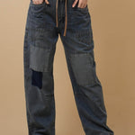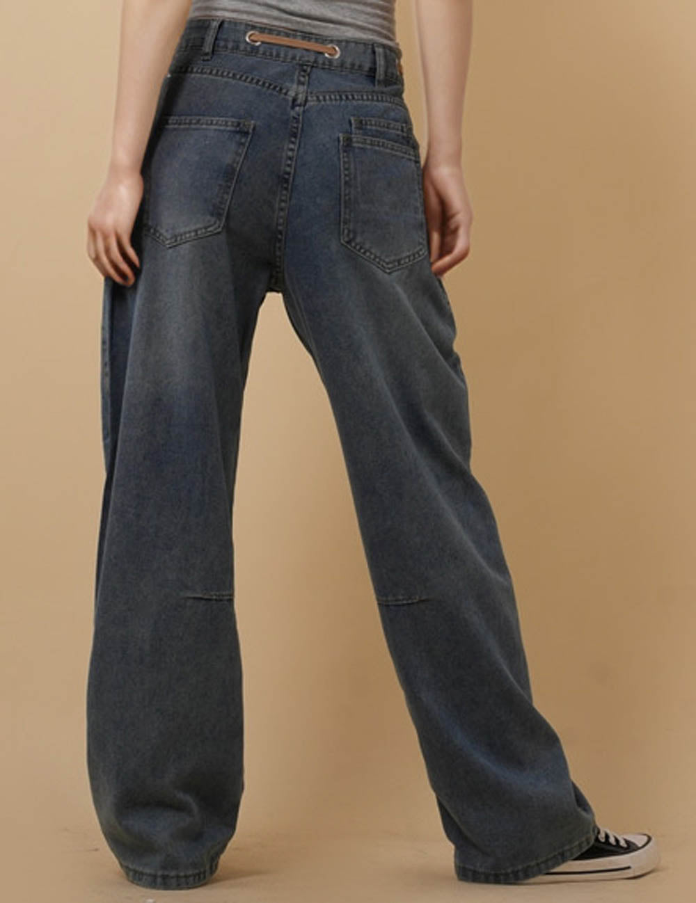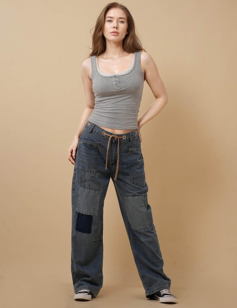 Ladies String Tie Jeans Demin Splice Straight Leg Pants 8SKP50370