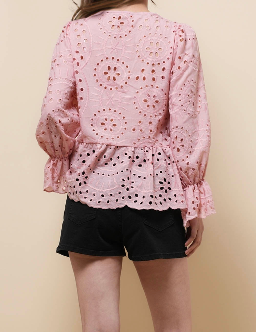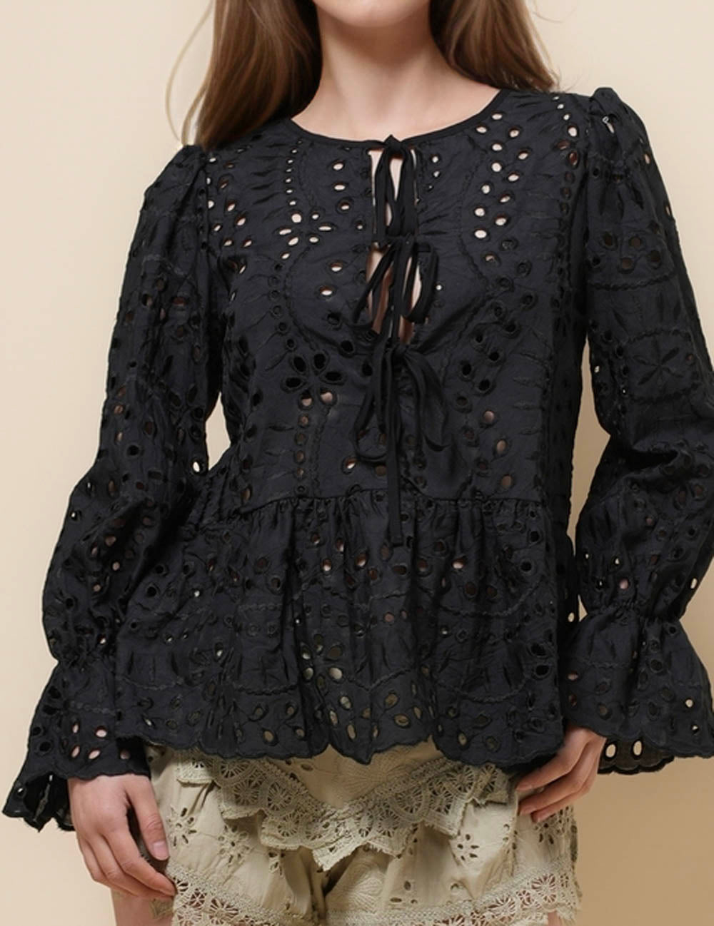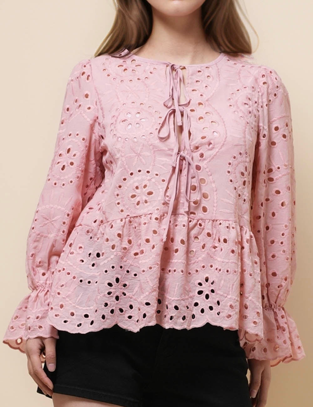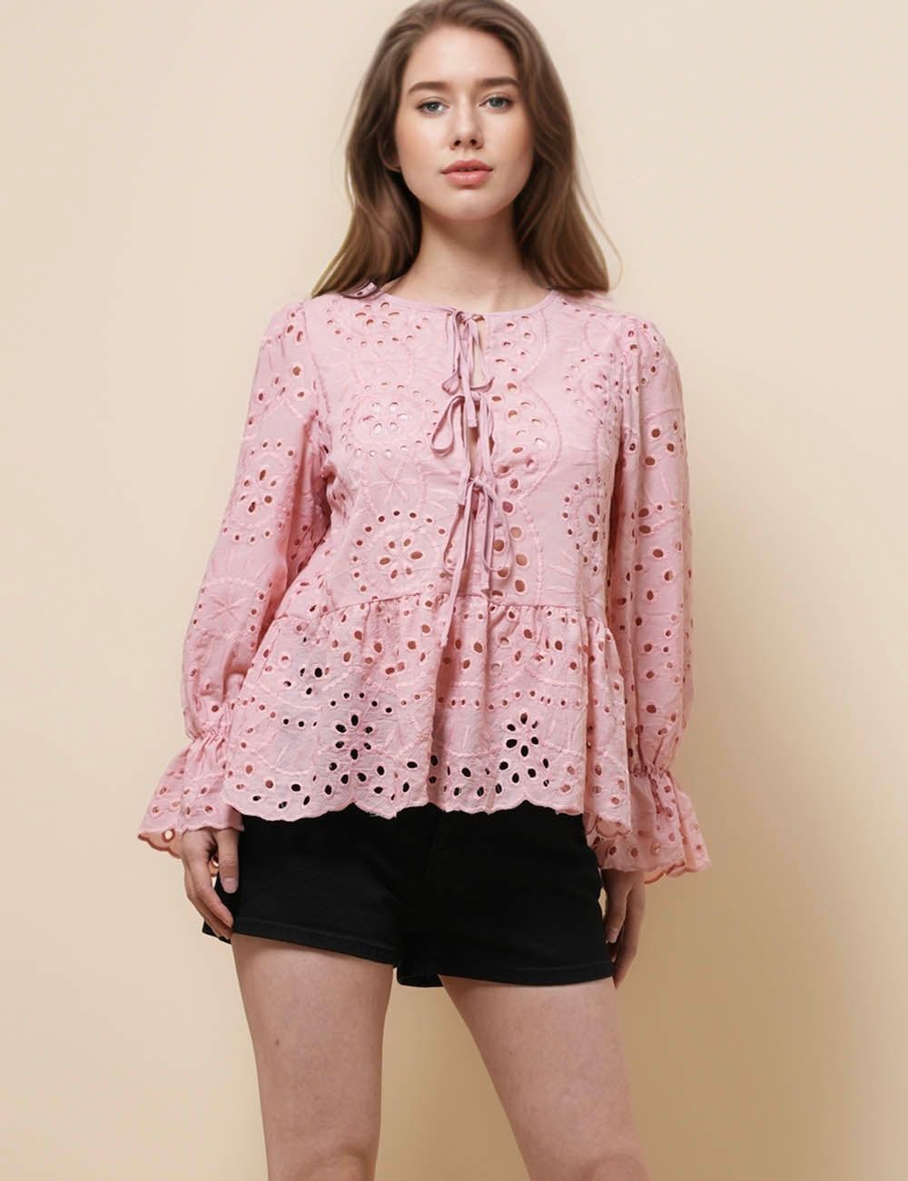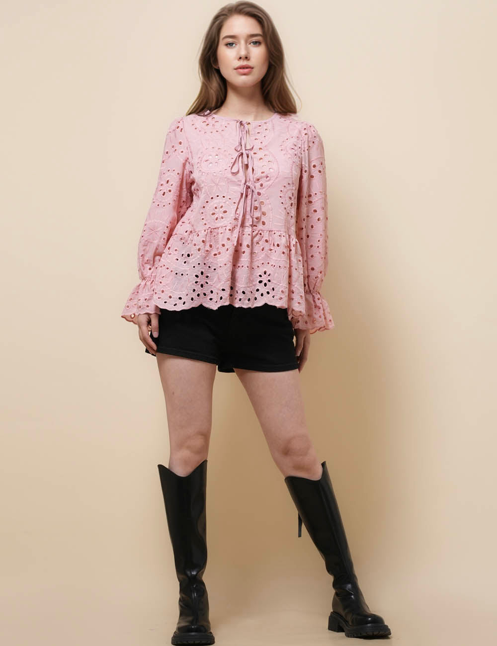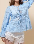 Ladies String Tie Long Sleeves Hollow Out Top SKT51086