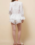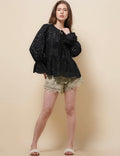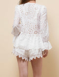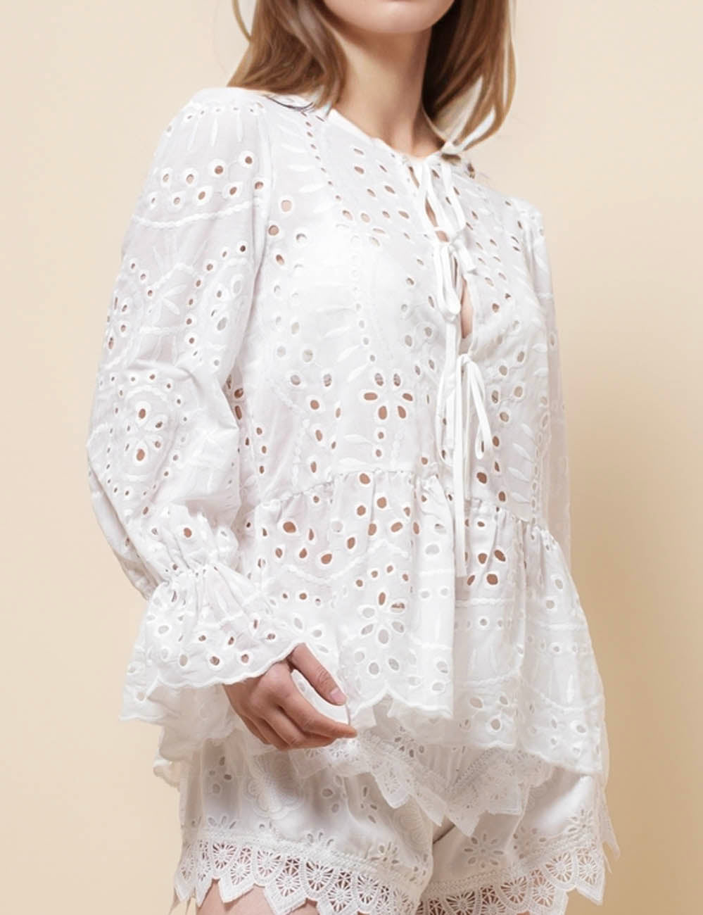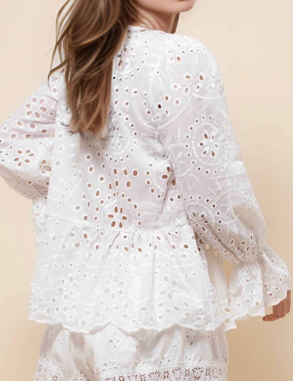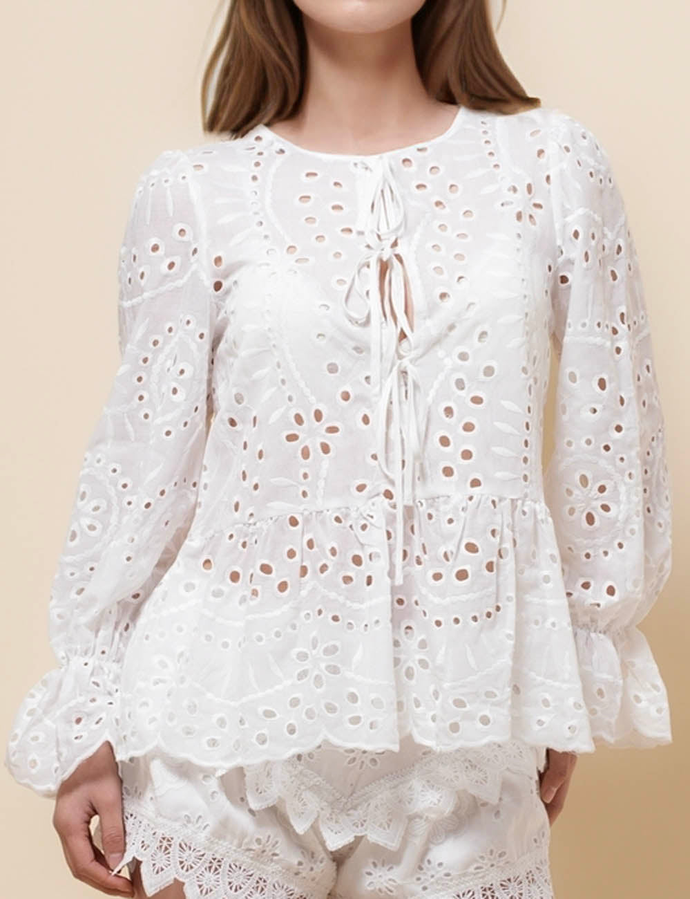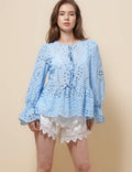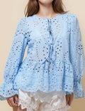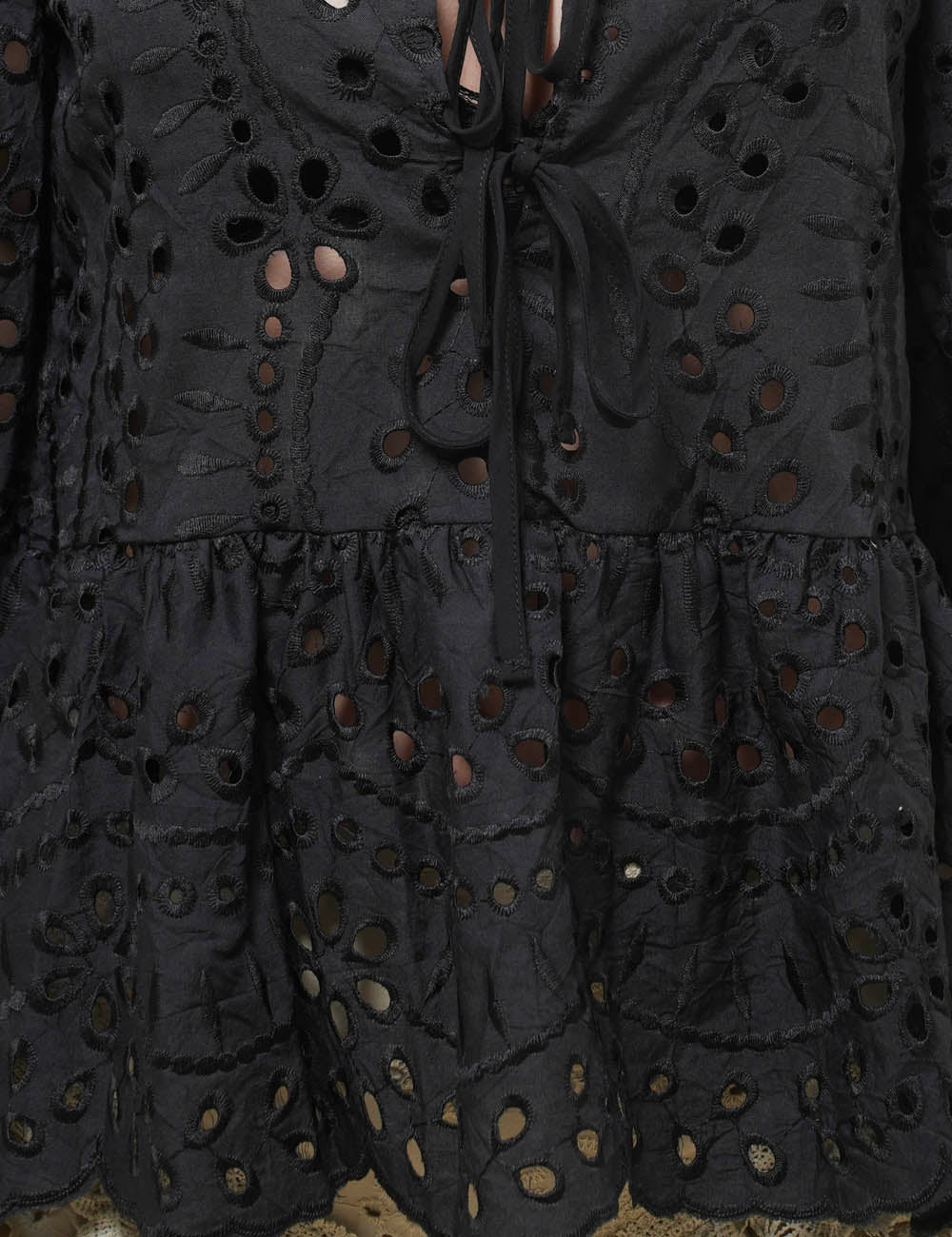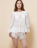 Ladies String Tie Long Sleeves Hollow Out Top SKT51086