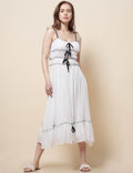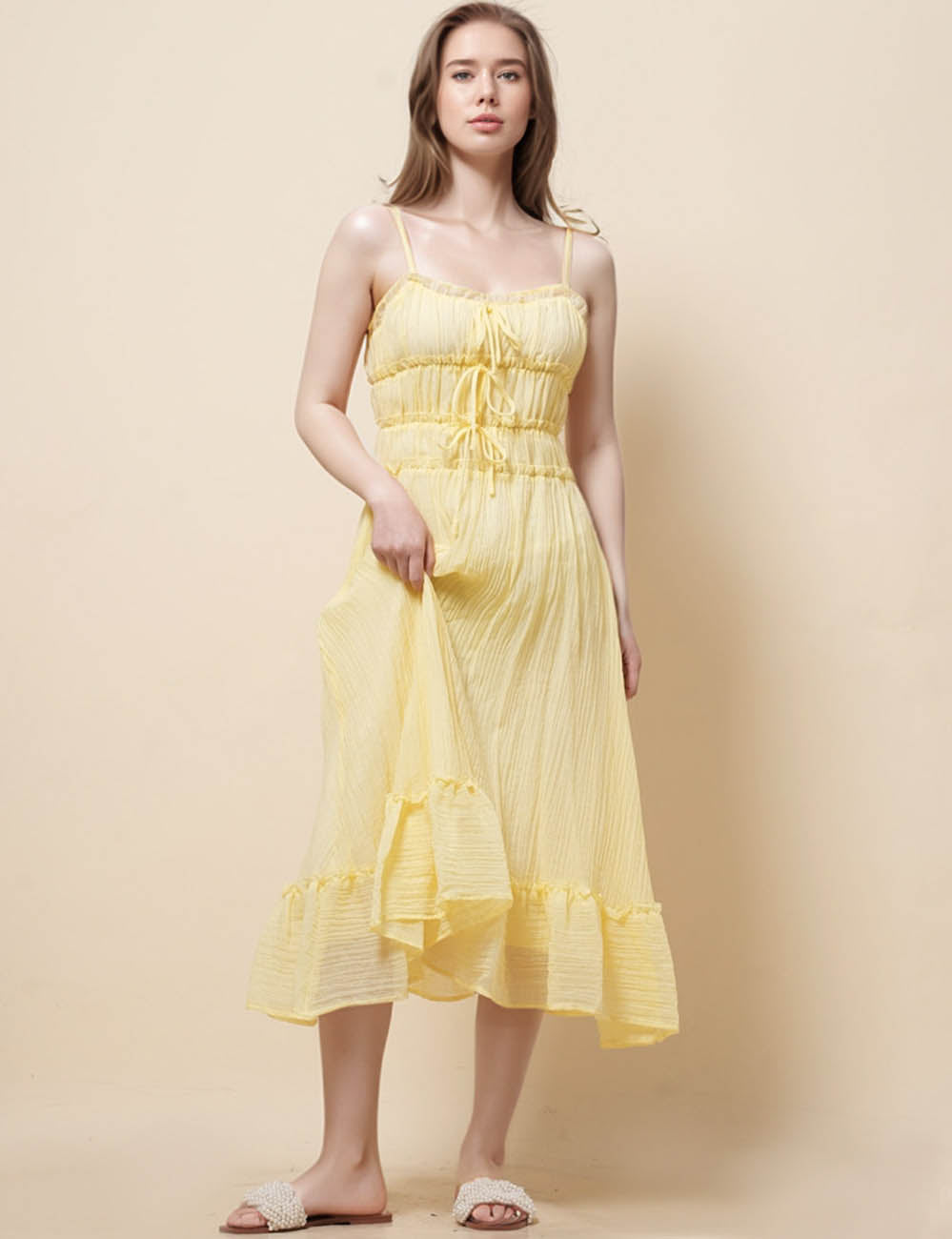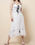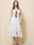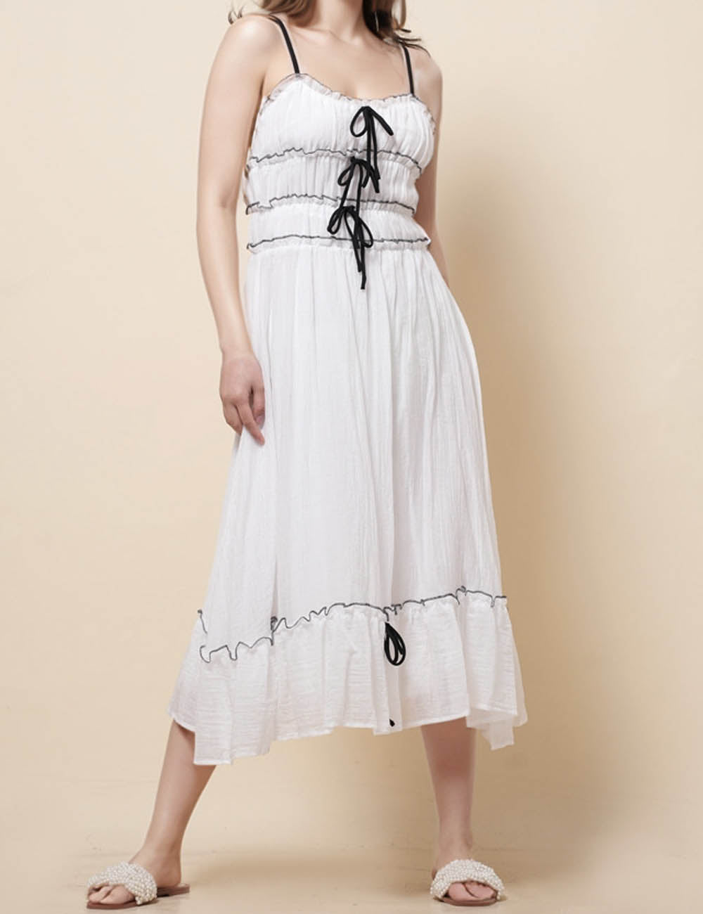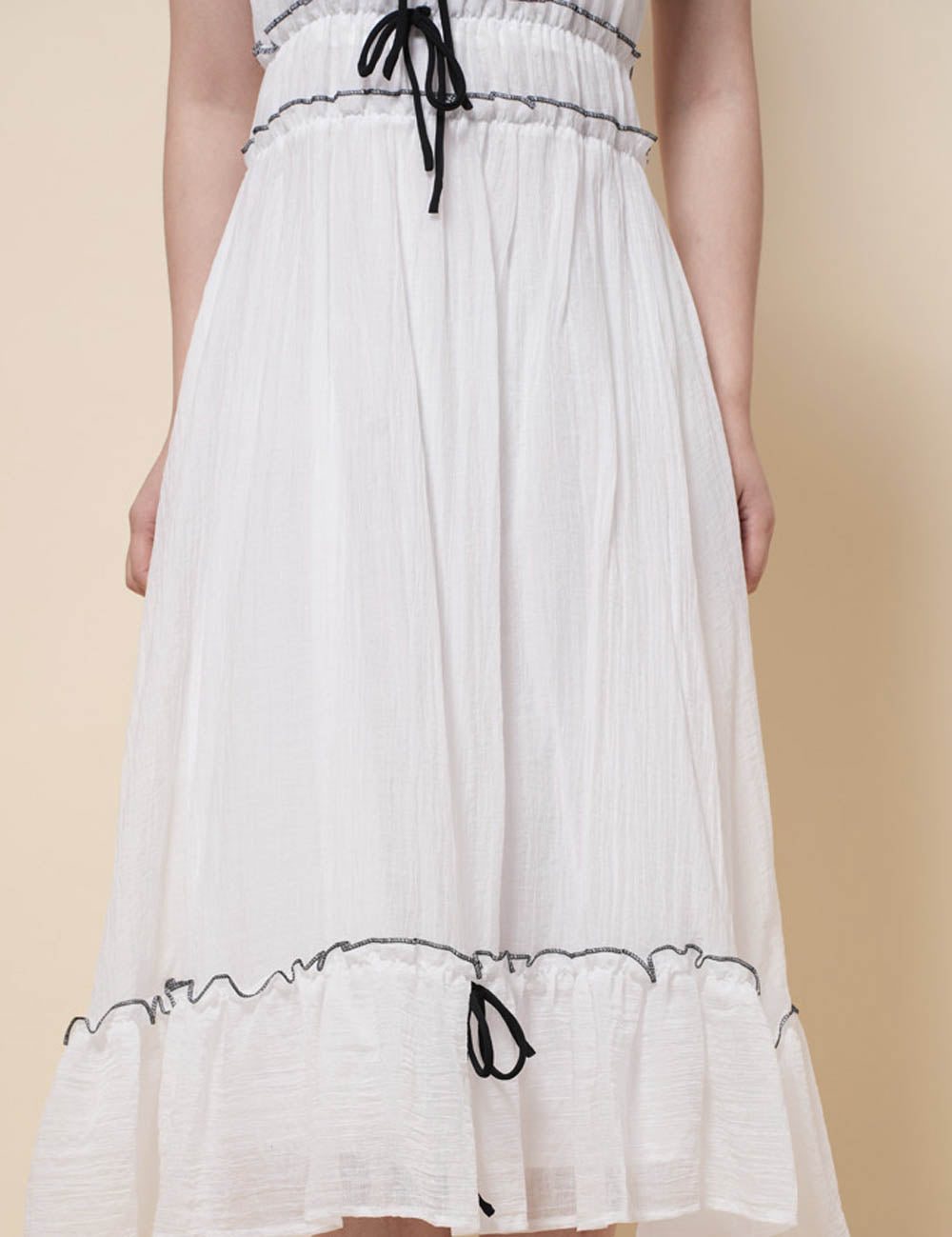 Ladies String Tie Sleeveless Color Block Midi Dress SKD51204