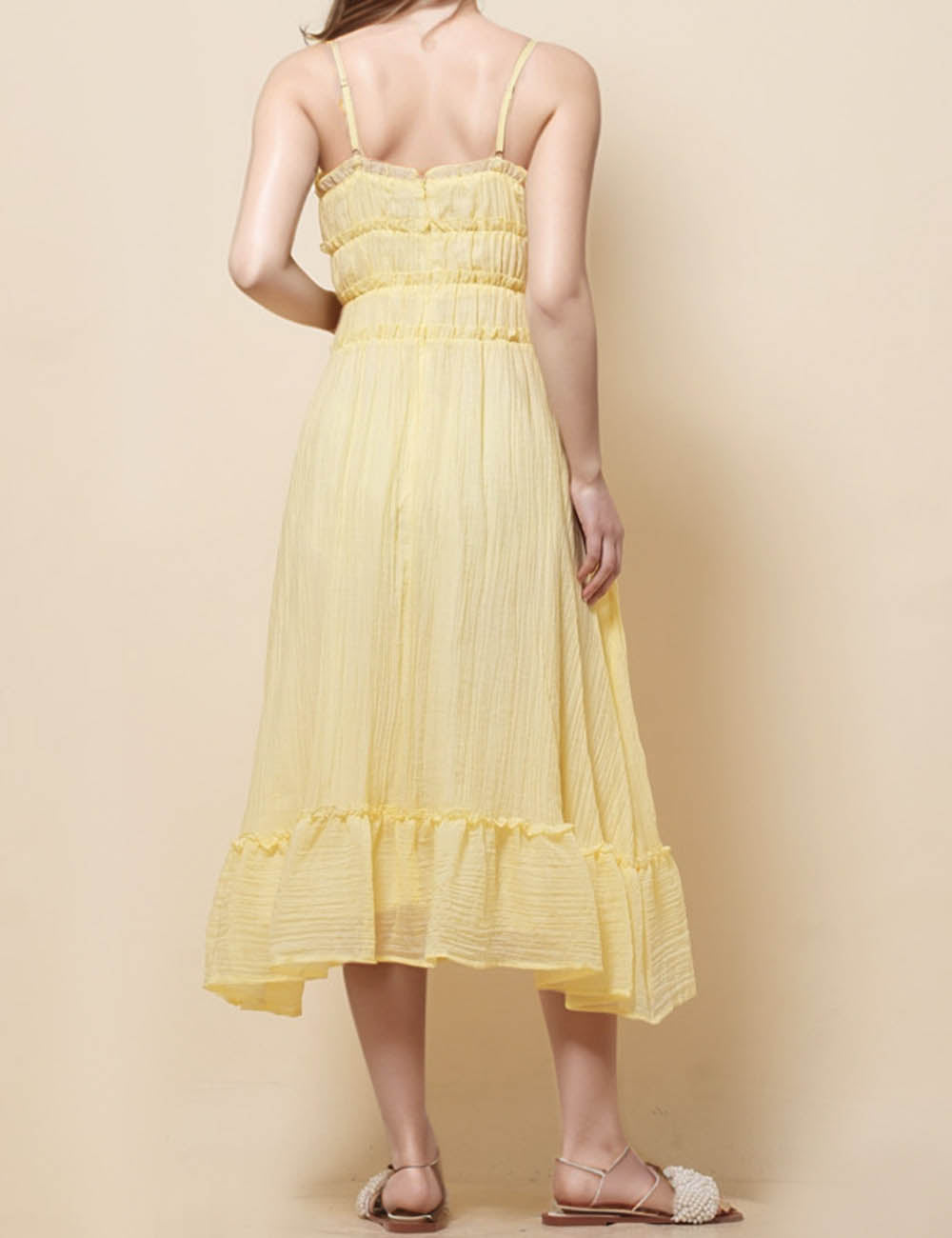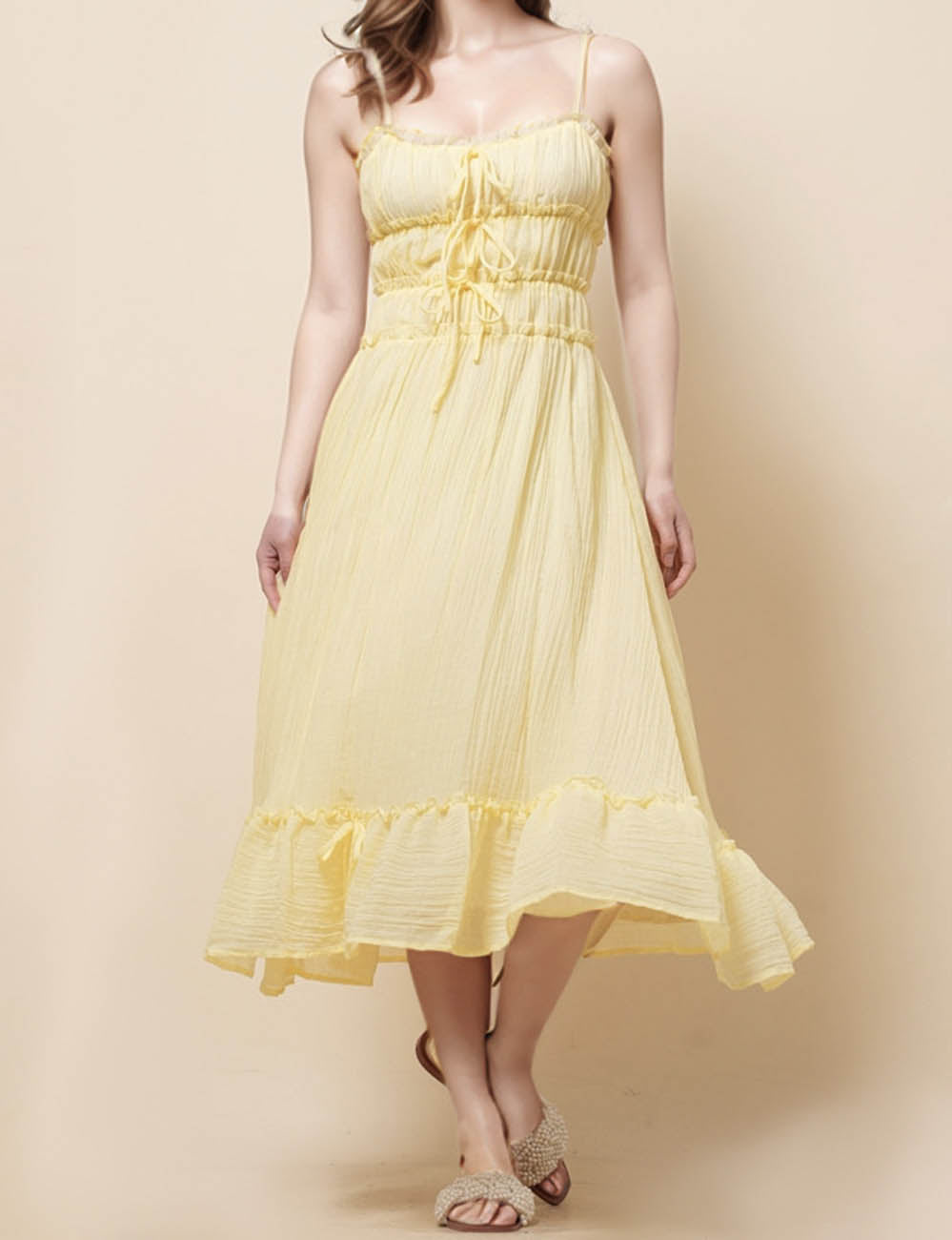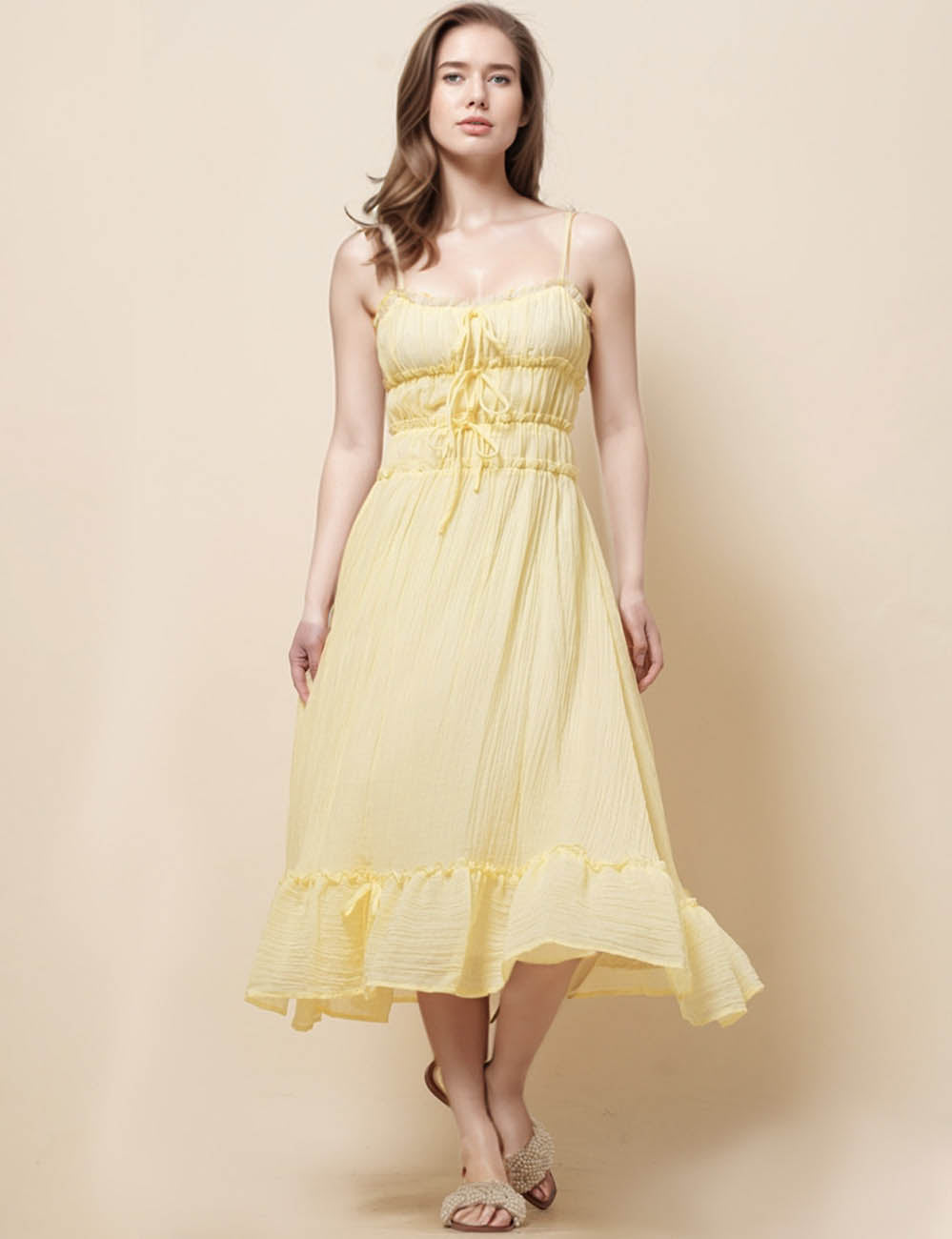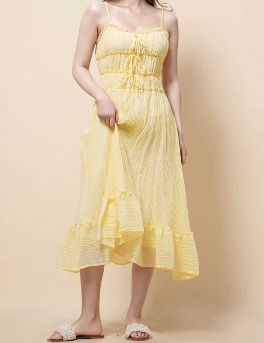 Ladies String Tie Sleeveless Color Block Midi Dress SKD51204