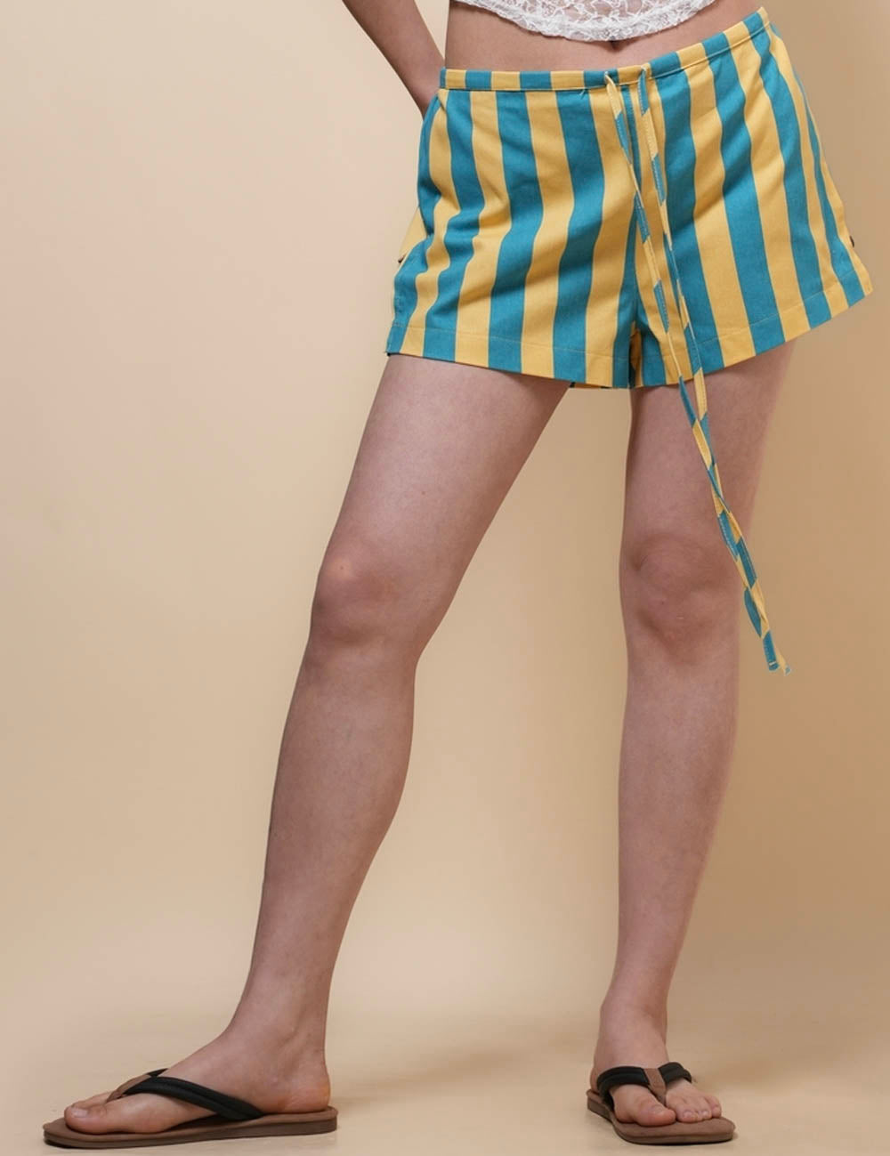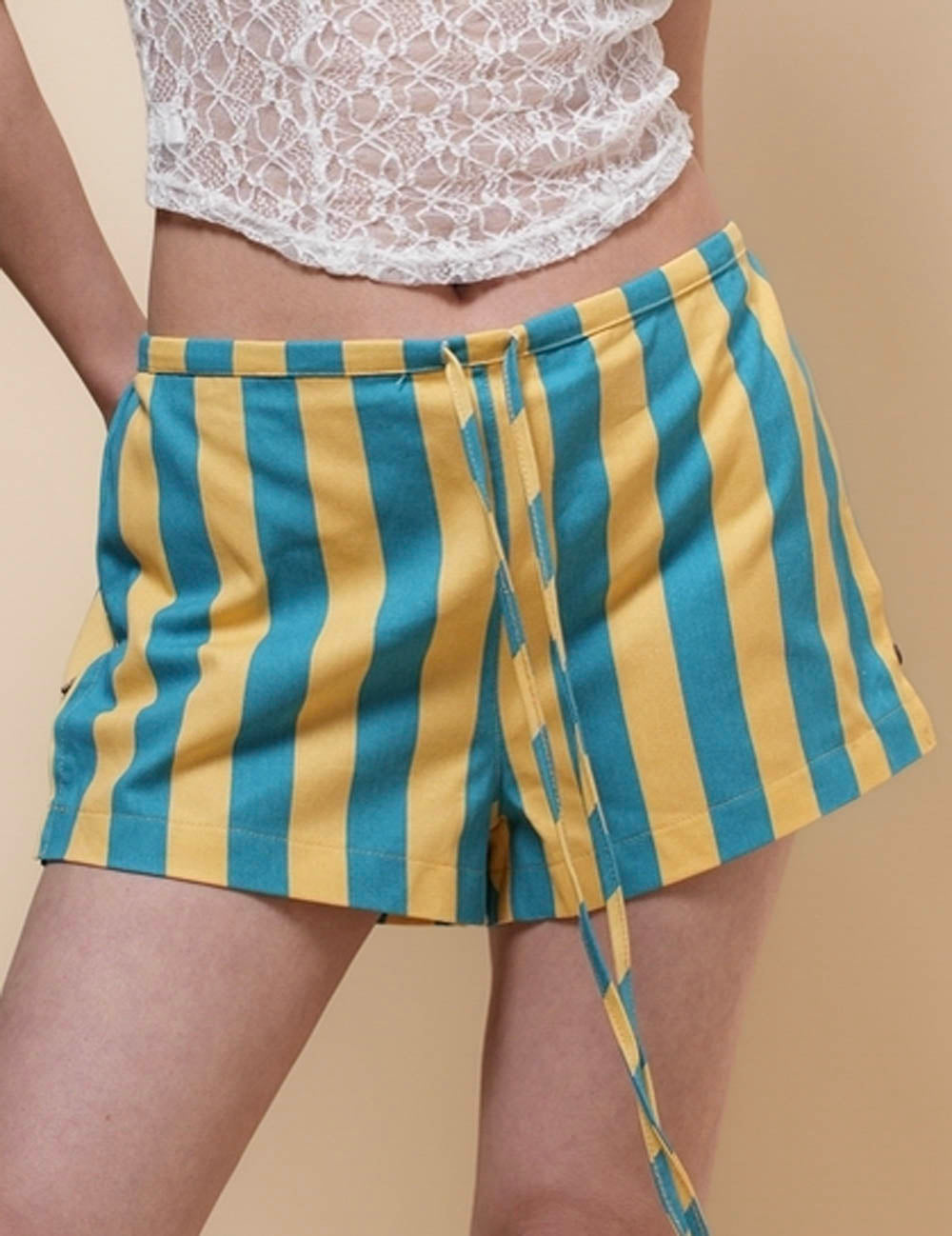 Ladies String Tie Striped Color Block Shorts SKS51069