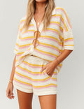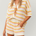 Ladies Stripe Color Block Knit Top & Shorts Set SKST50176