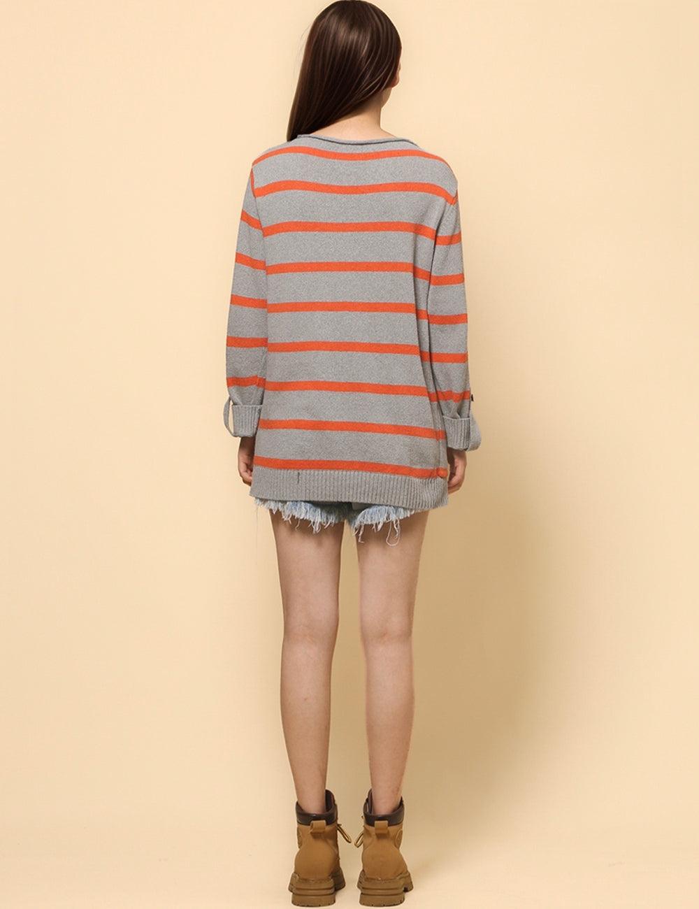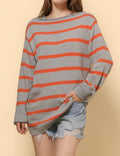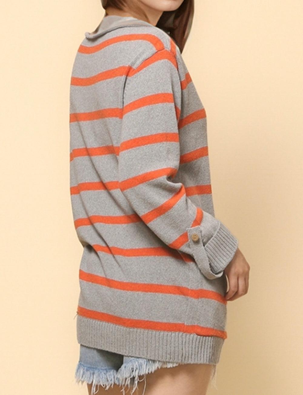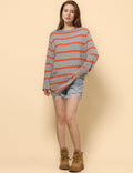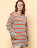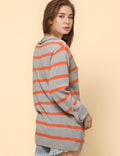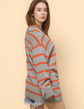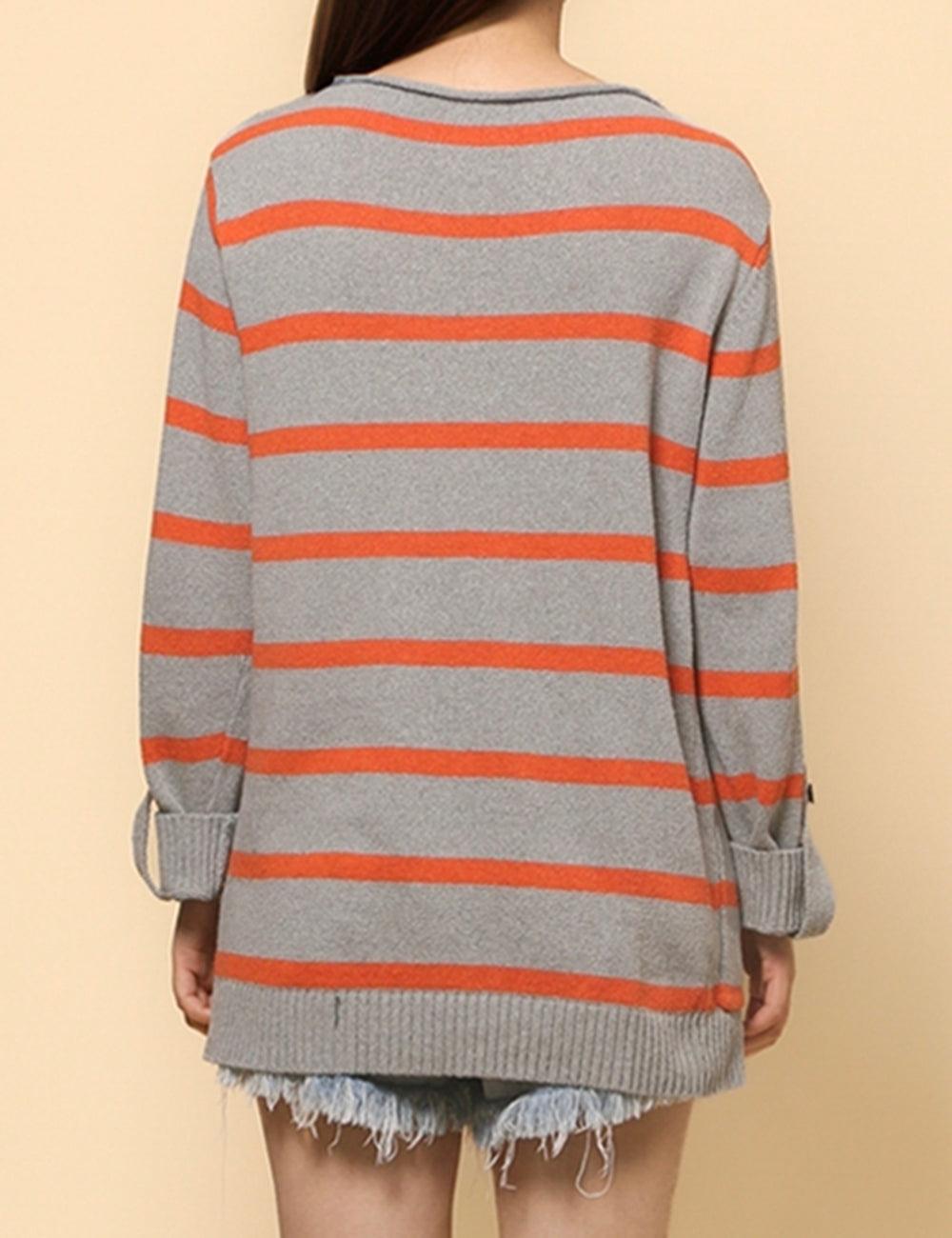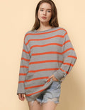 Ladies Stripe Color Block Pullover Pocket Sweater SKT4746