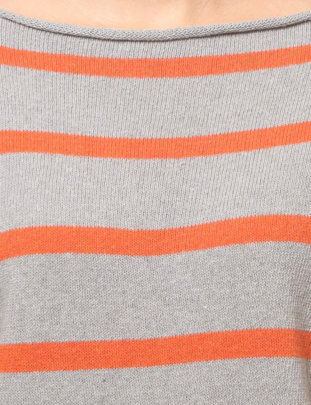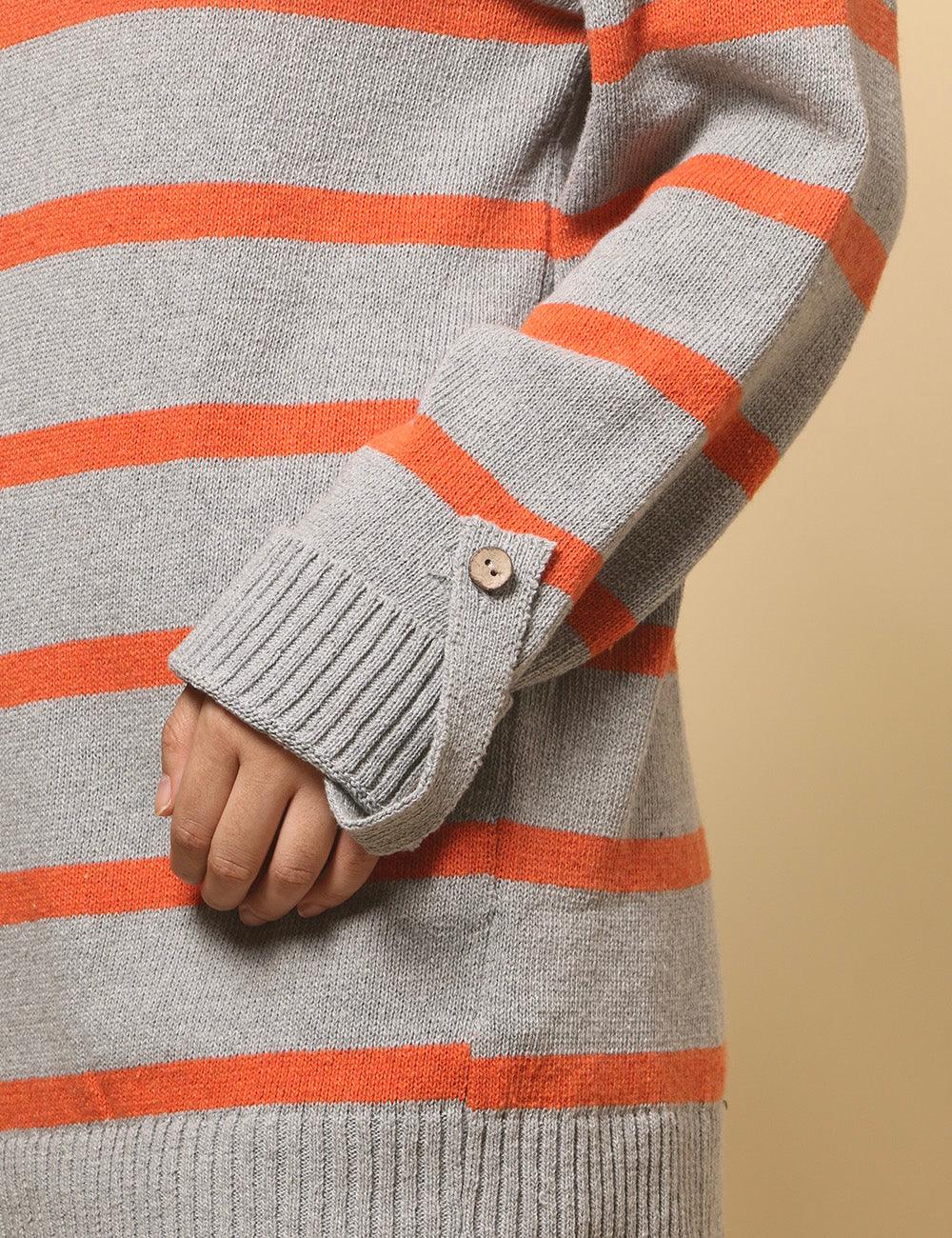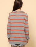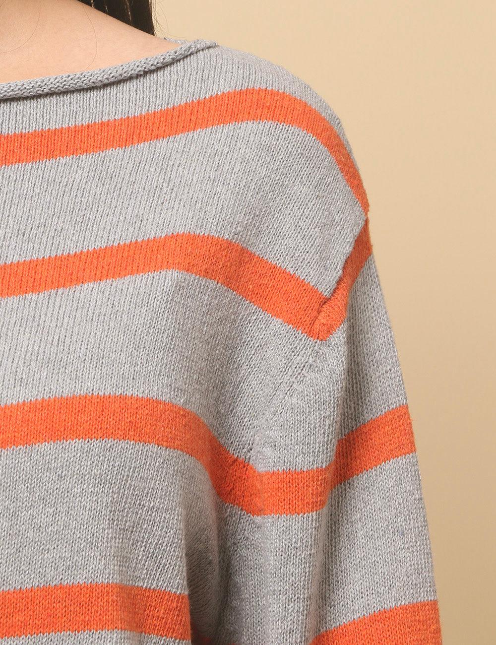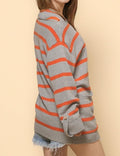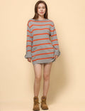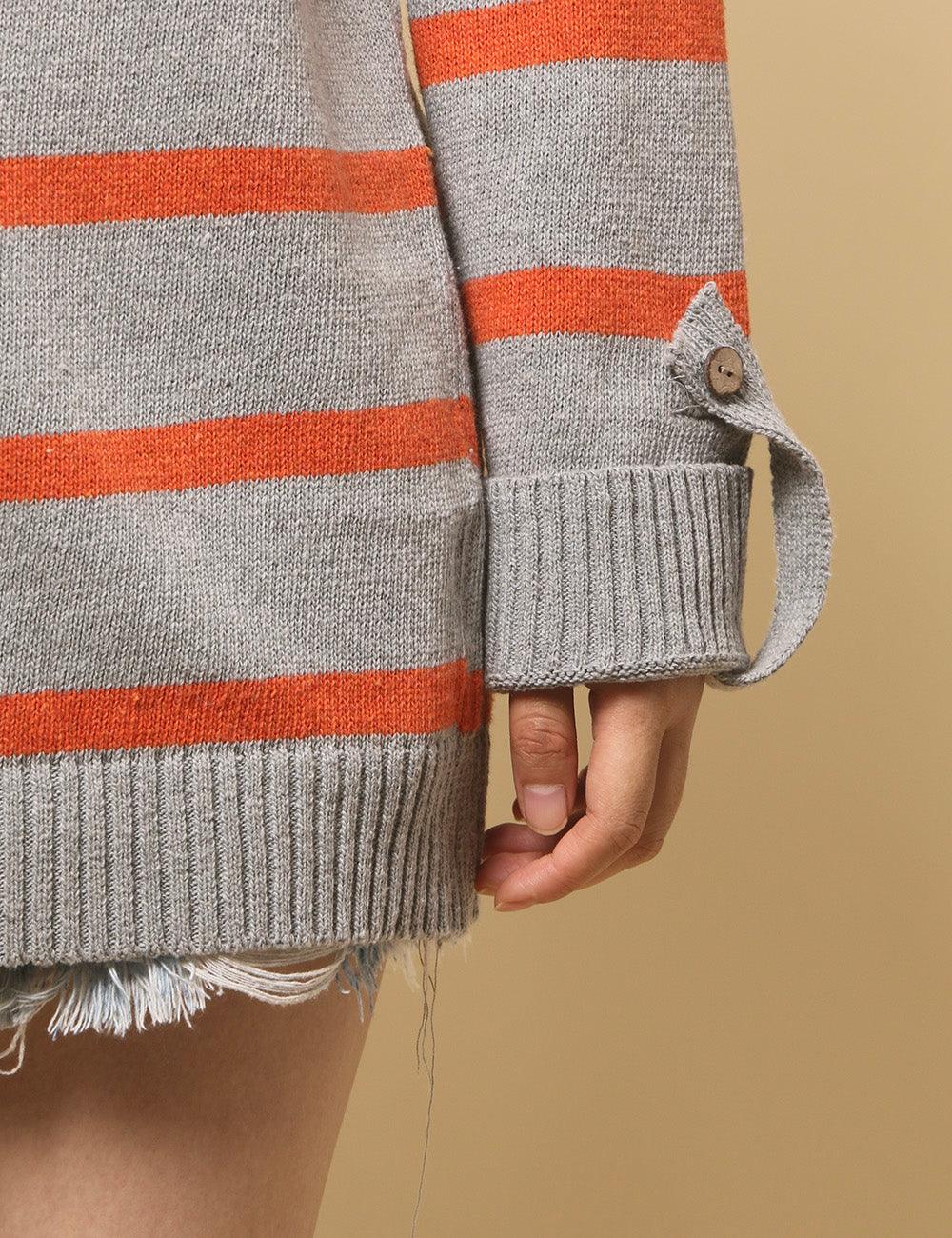 Ladies Stripe Color Block Pullover Pocket Sweater SKT4746