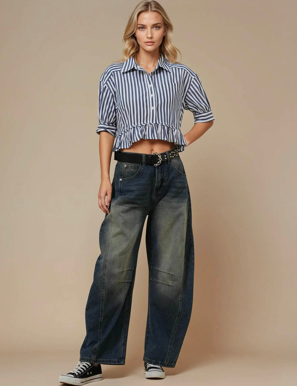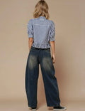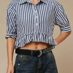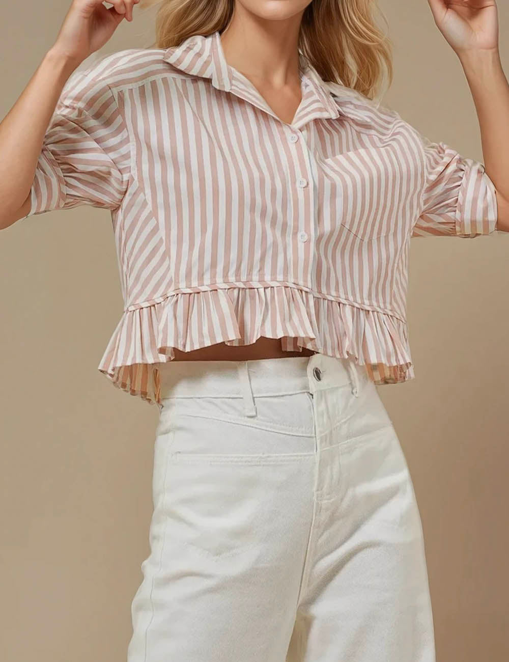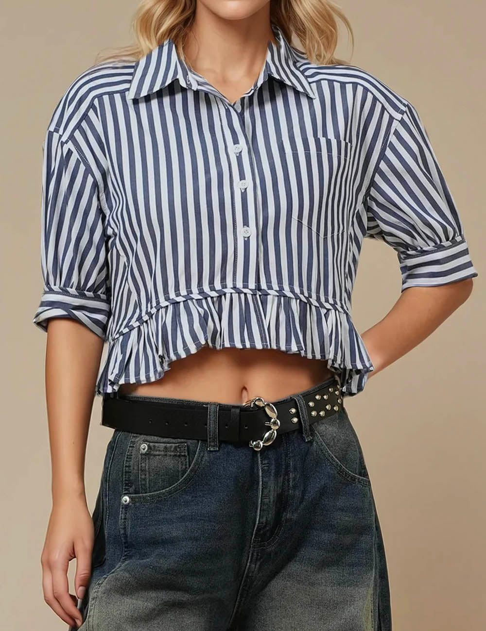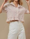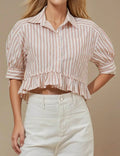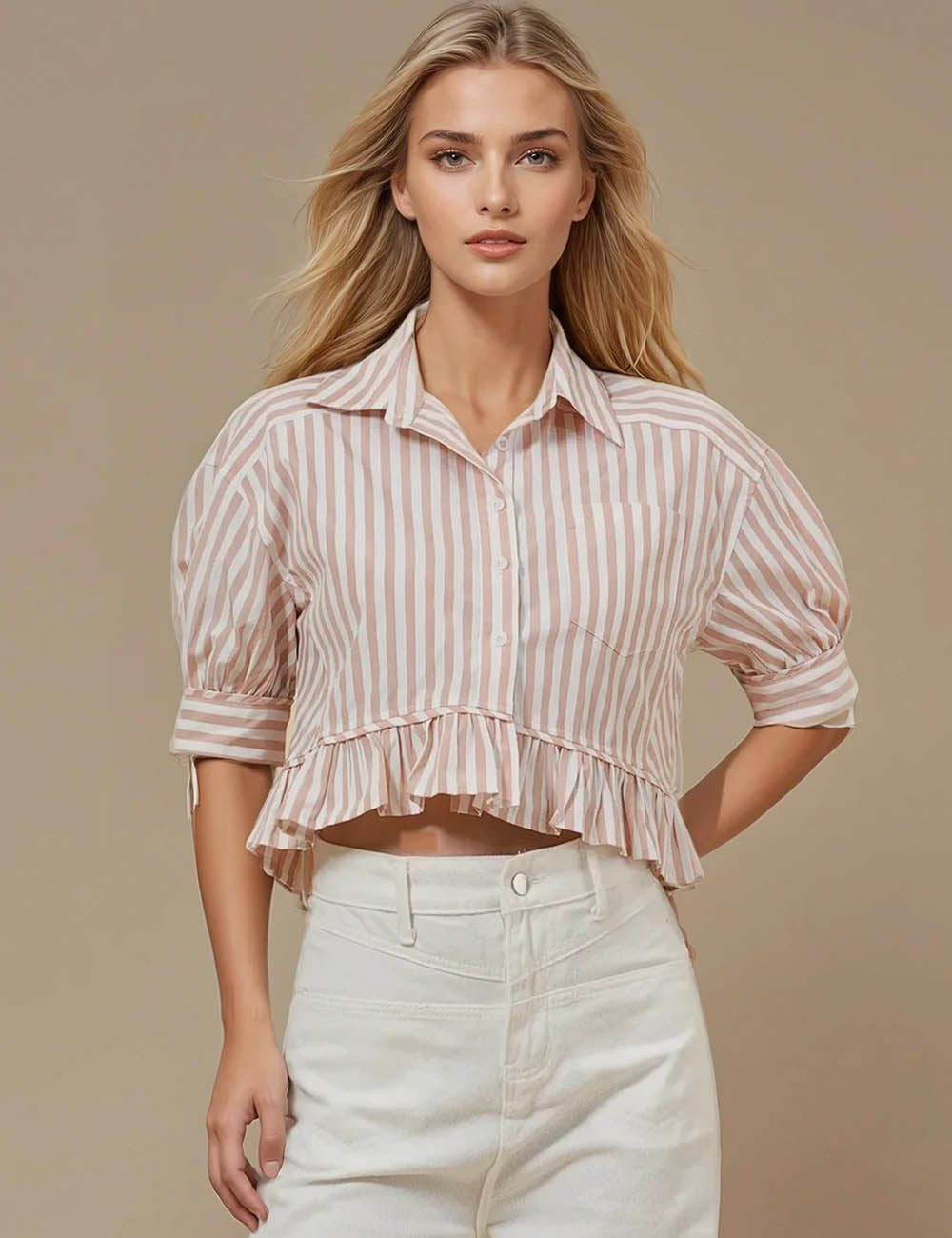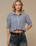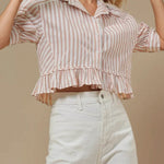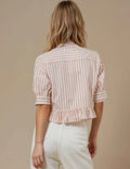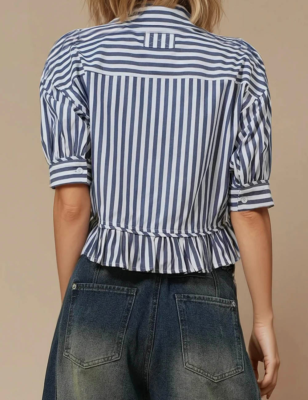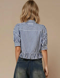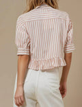 Ladies Stripe Color Block Short Sleeves Shirt SKT51302