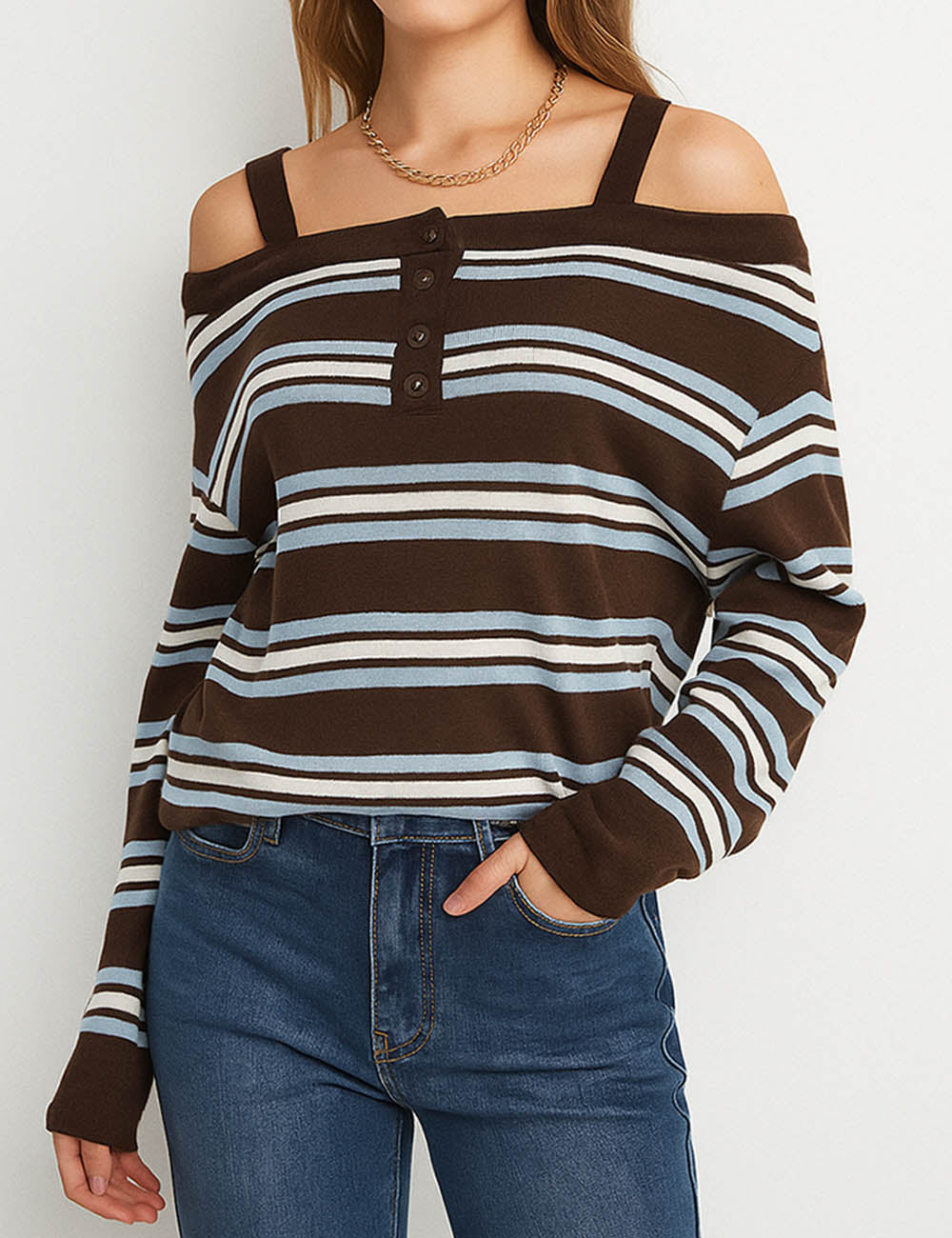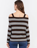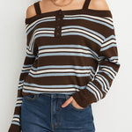 Ladies Stripe Everyday Pullover Color Block Long Sleeves Top