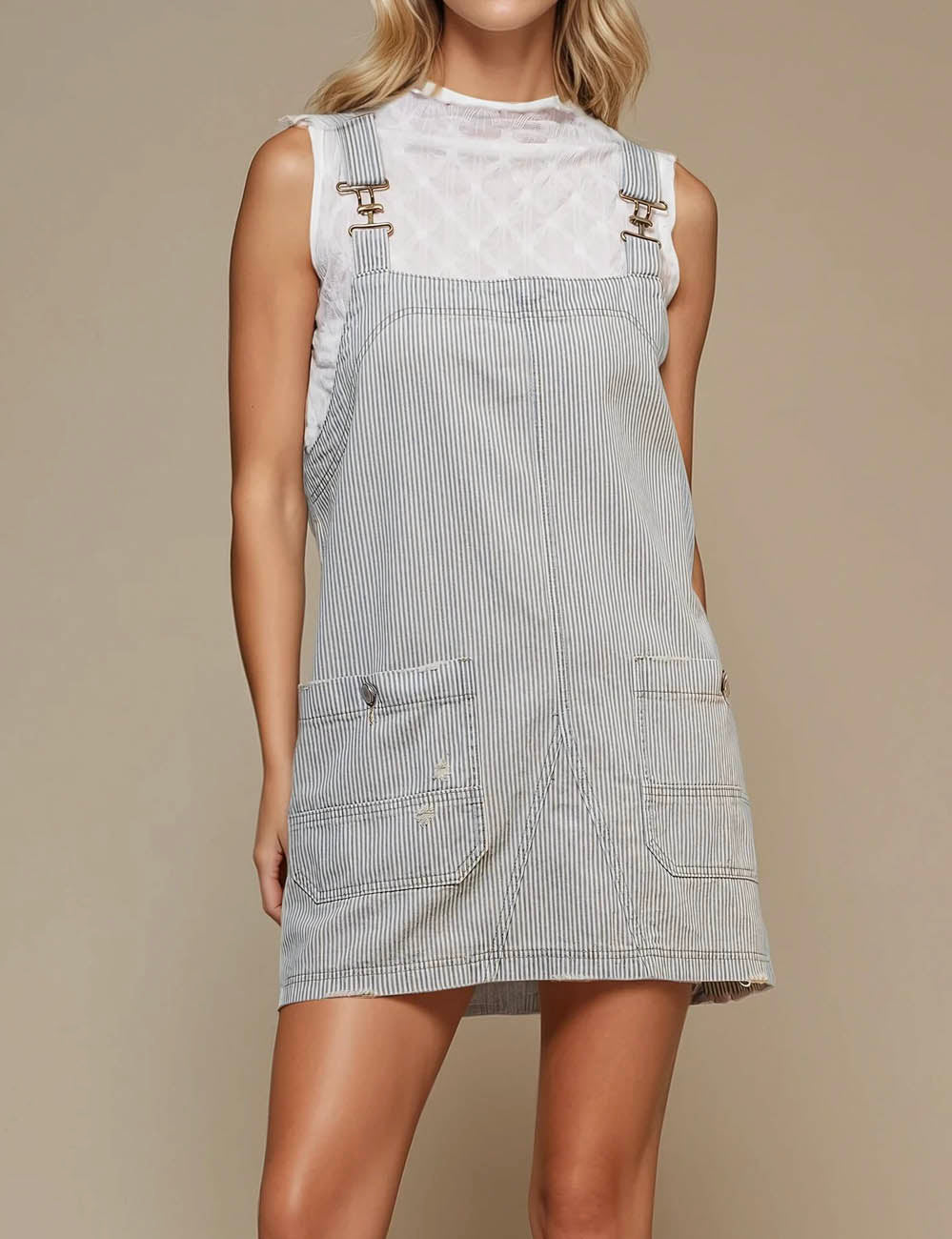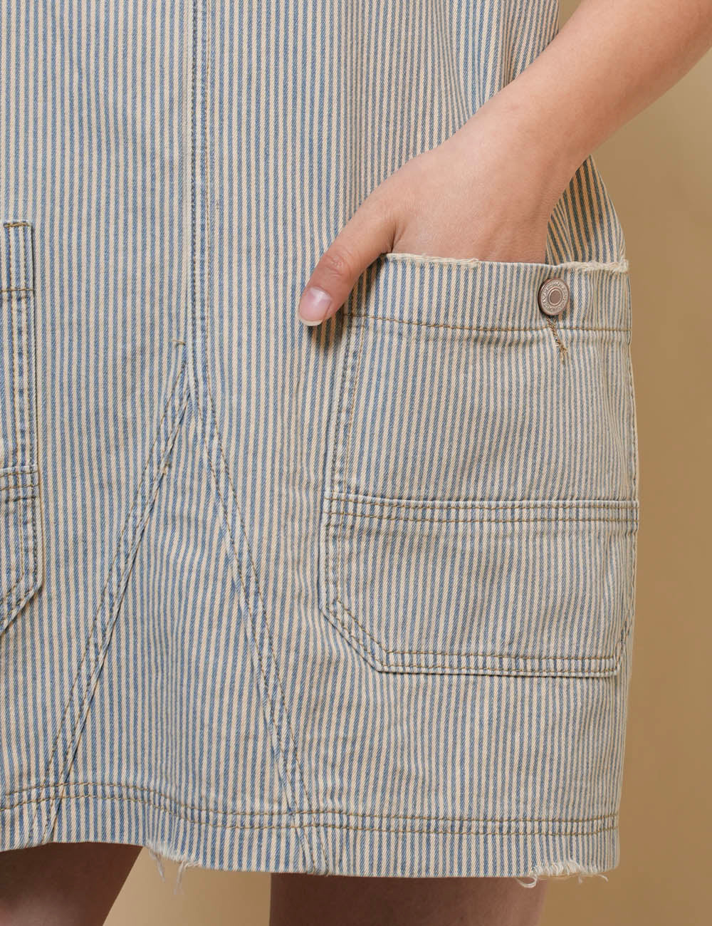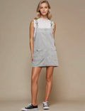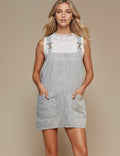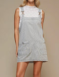Ladies Stripe Two Strap Shoulder Mini Denim Dress SKD50003