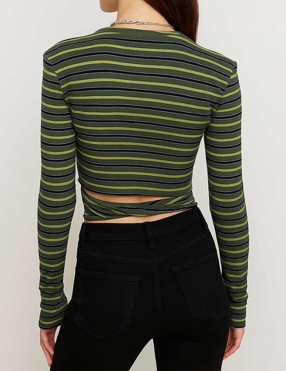 Ladies Striped Basic Round Neck Cropped Layering Top