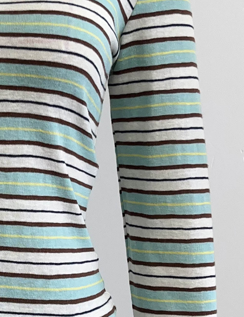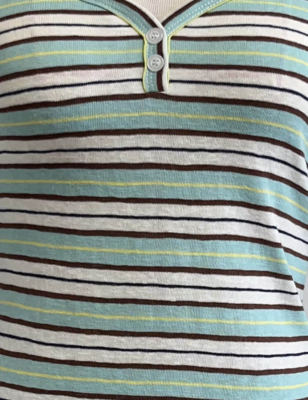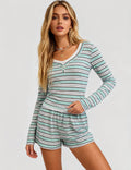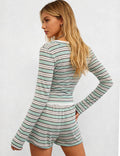 Ladies Striped Button V-Neck Top & Elastic Waist Shorts Set