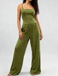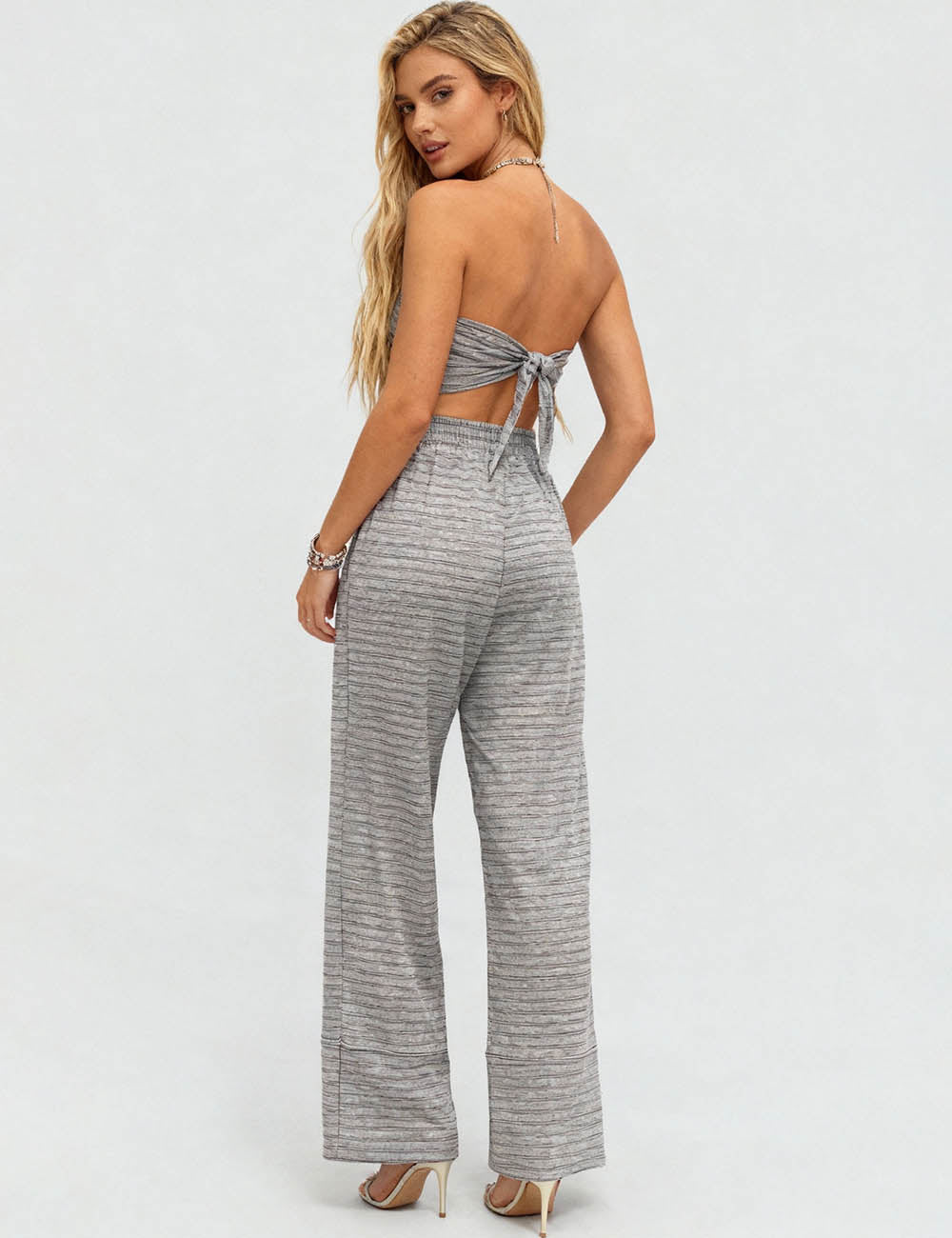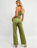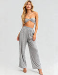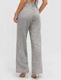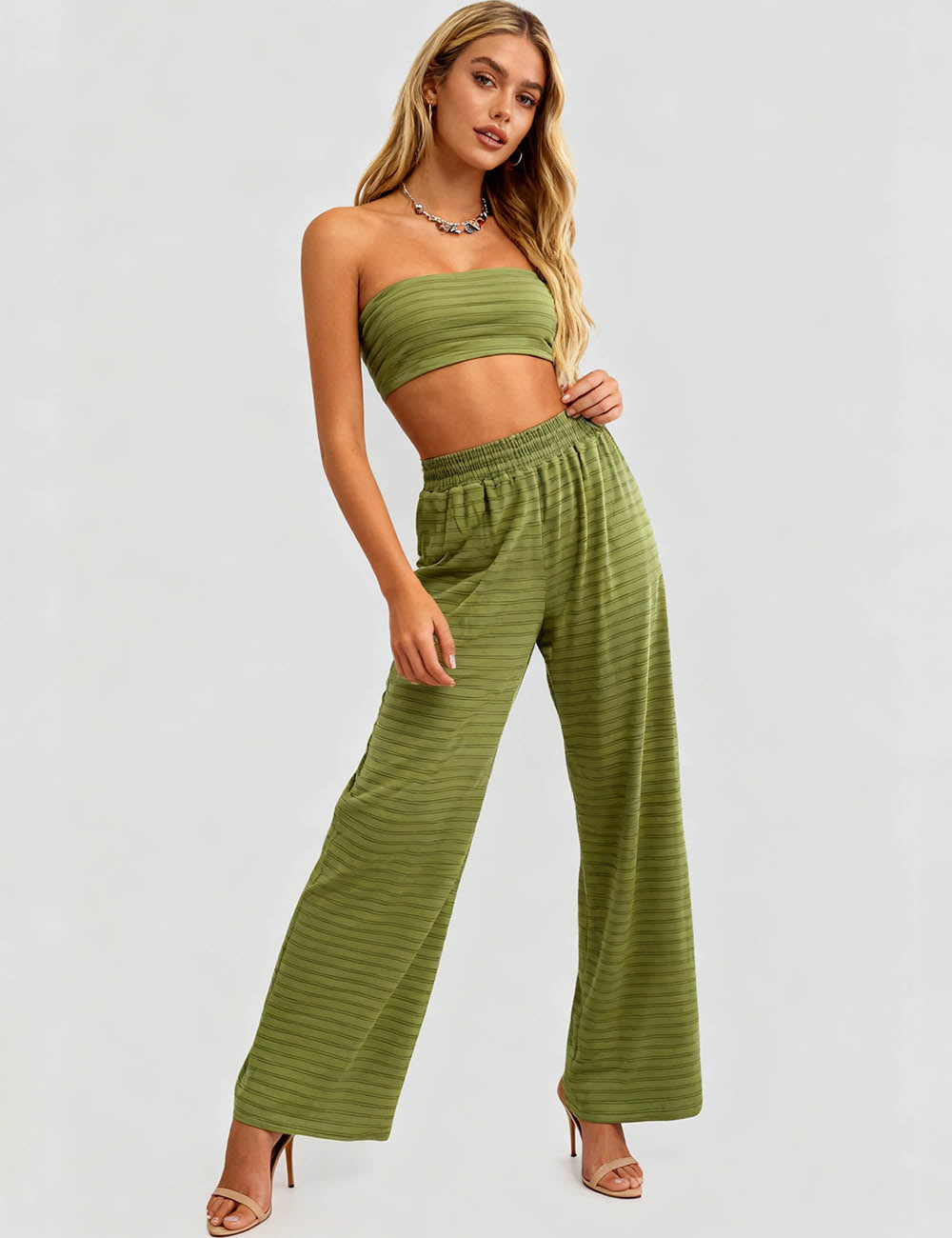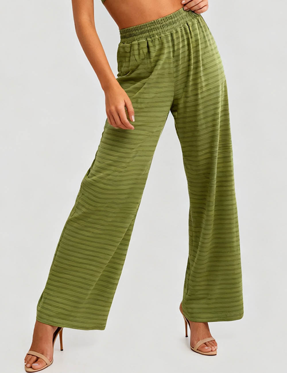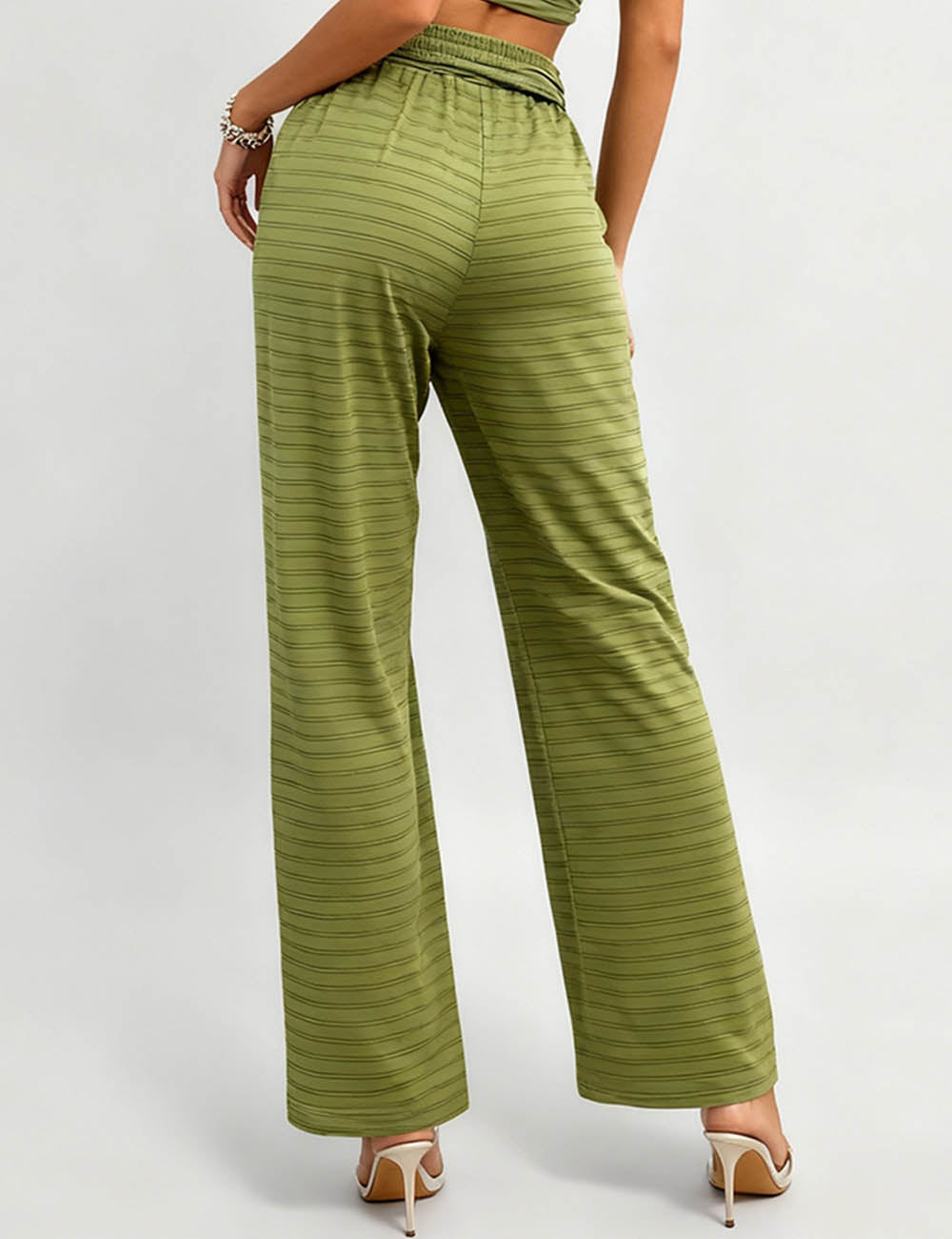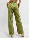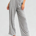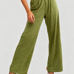 Ladies Striped Color Block Elastic Waist Wide Leg Pants