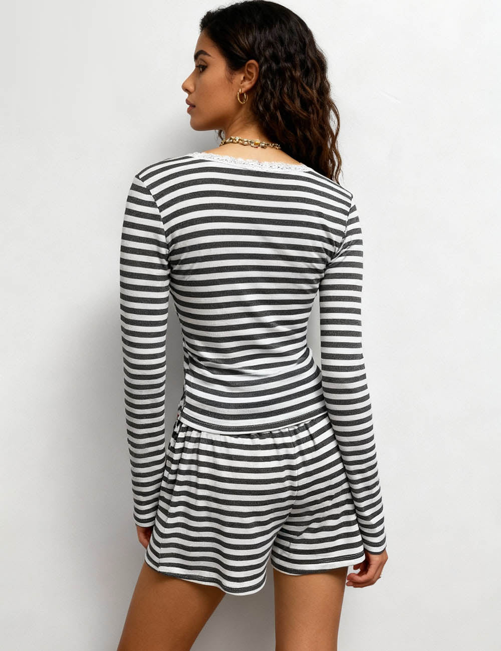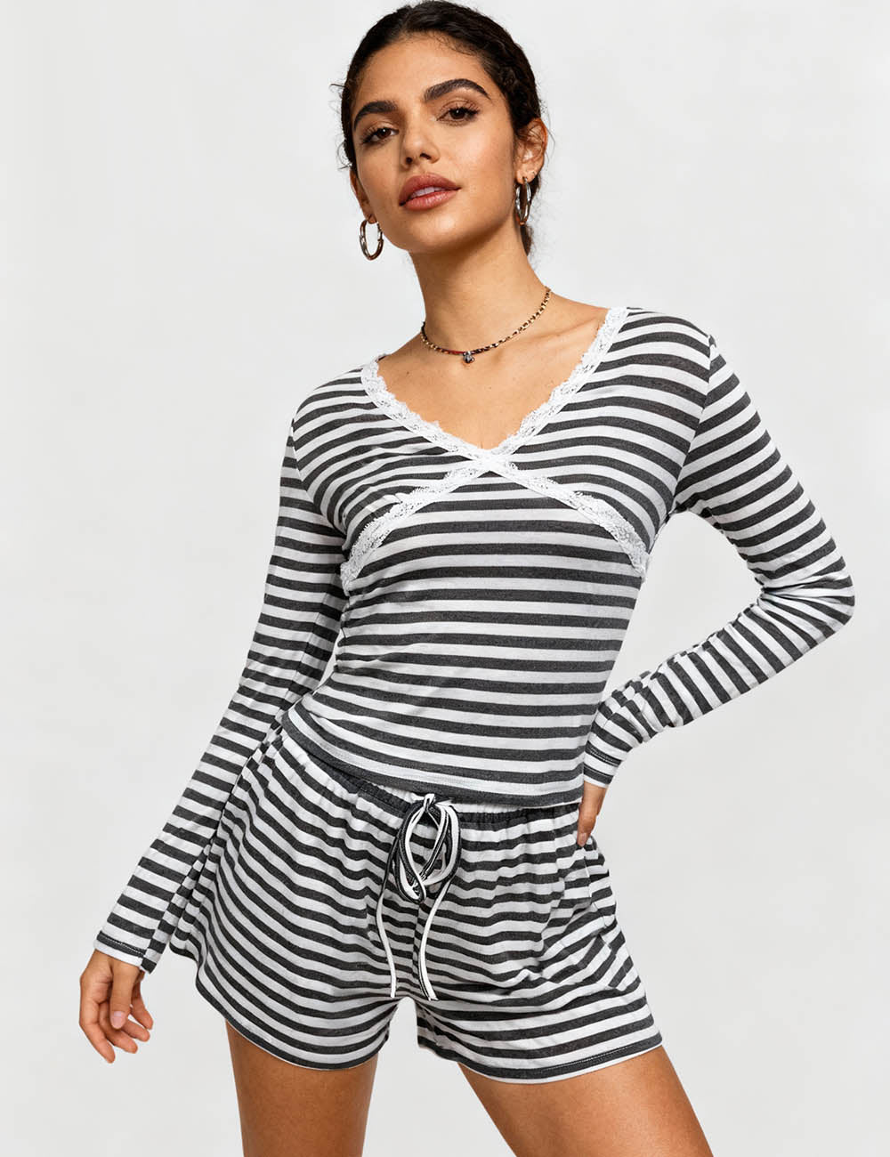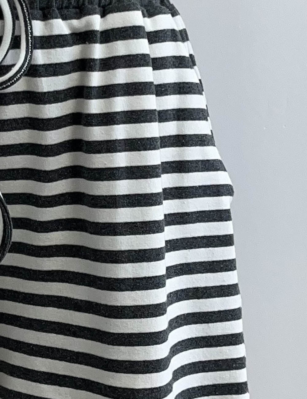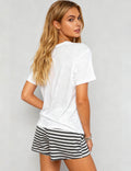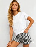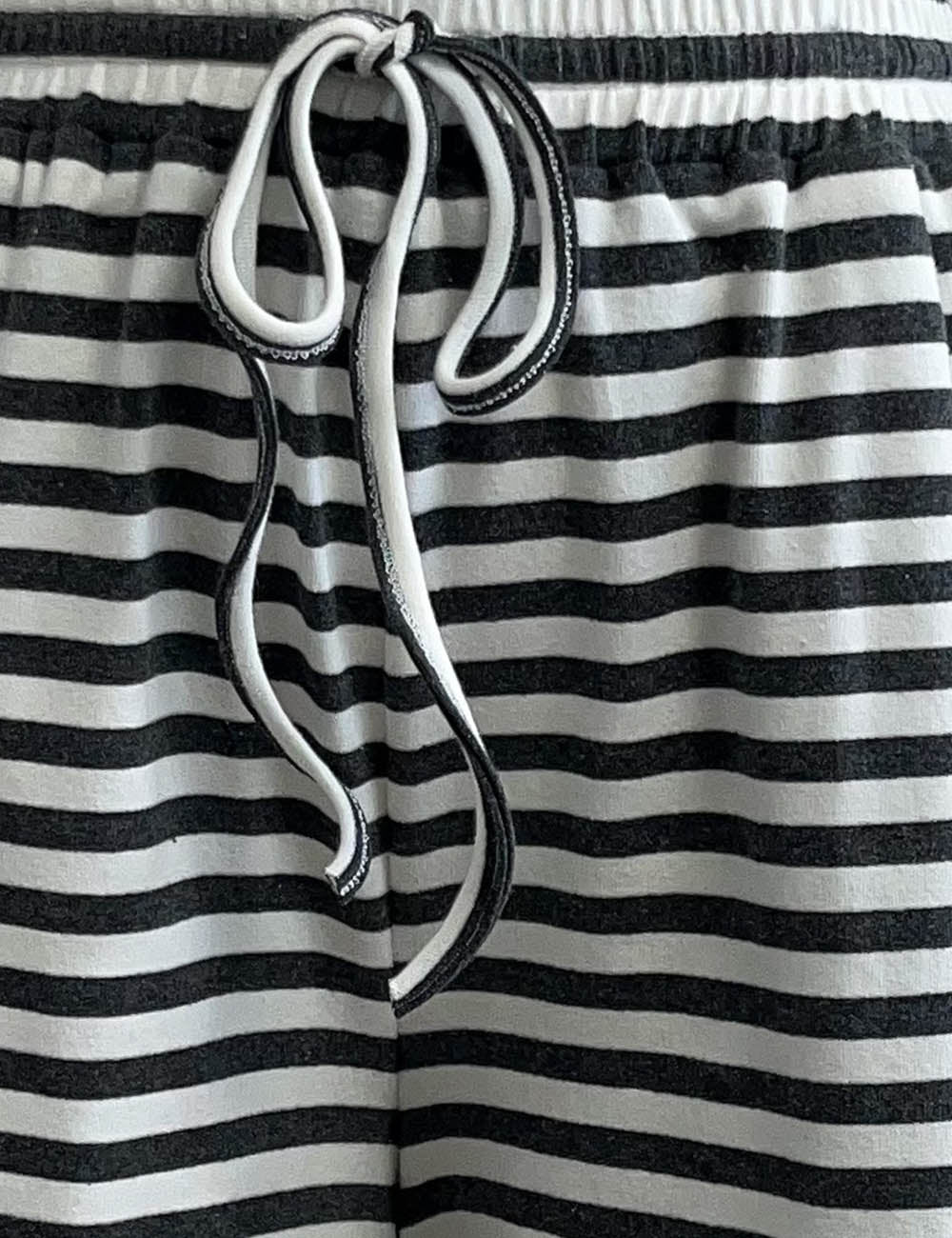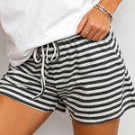 Ladies Striped Color Block Elastic Waist Wide Leg Shorts