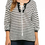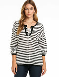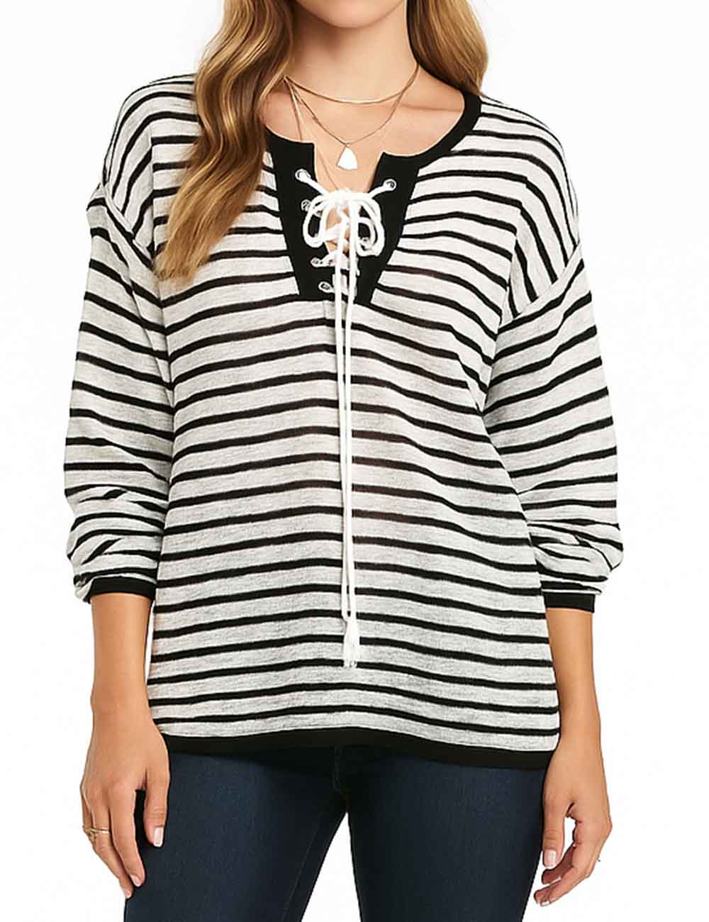 Ladies Striped Color Block String Tie Long Sleeves Blouse