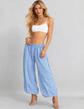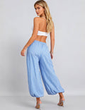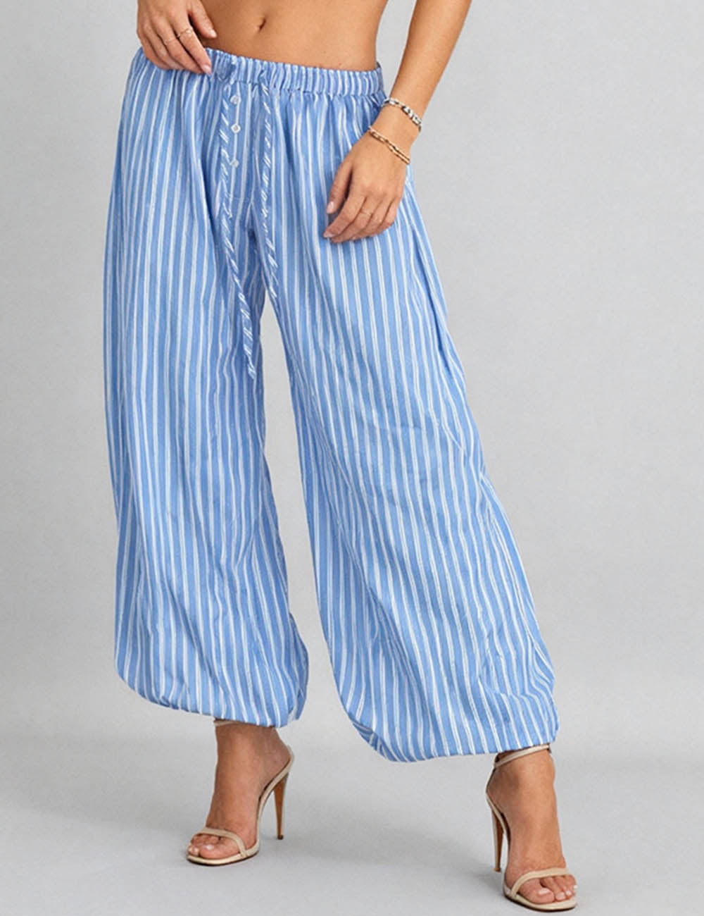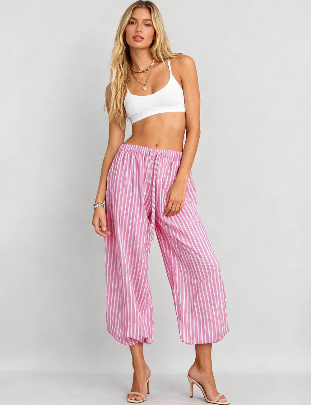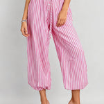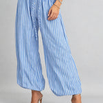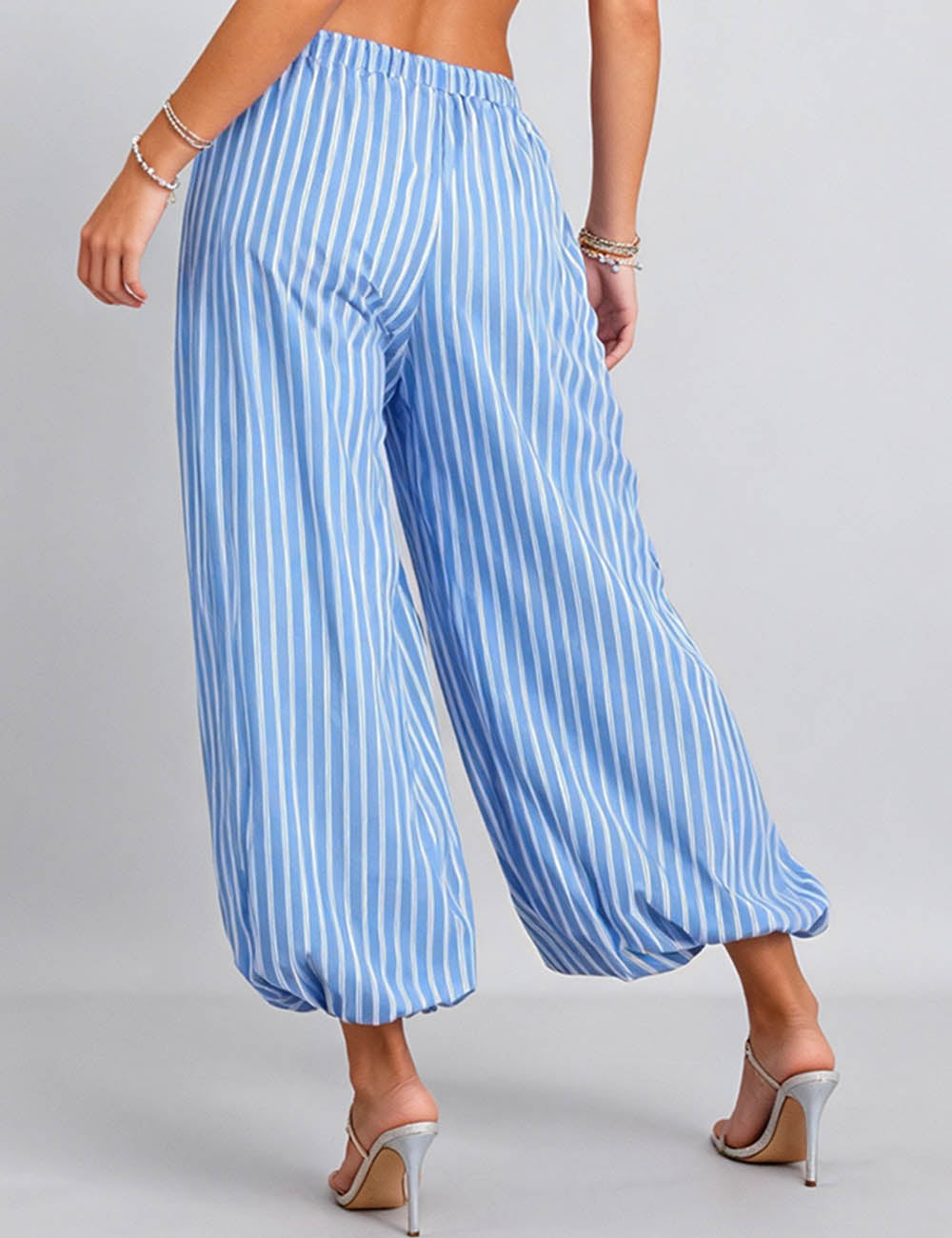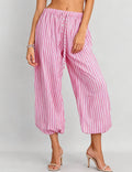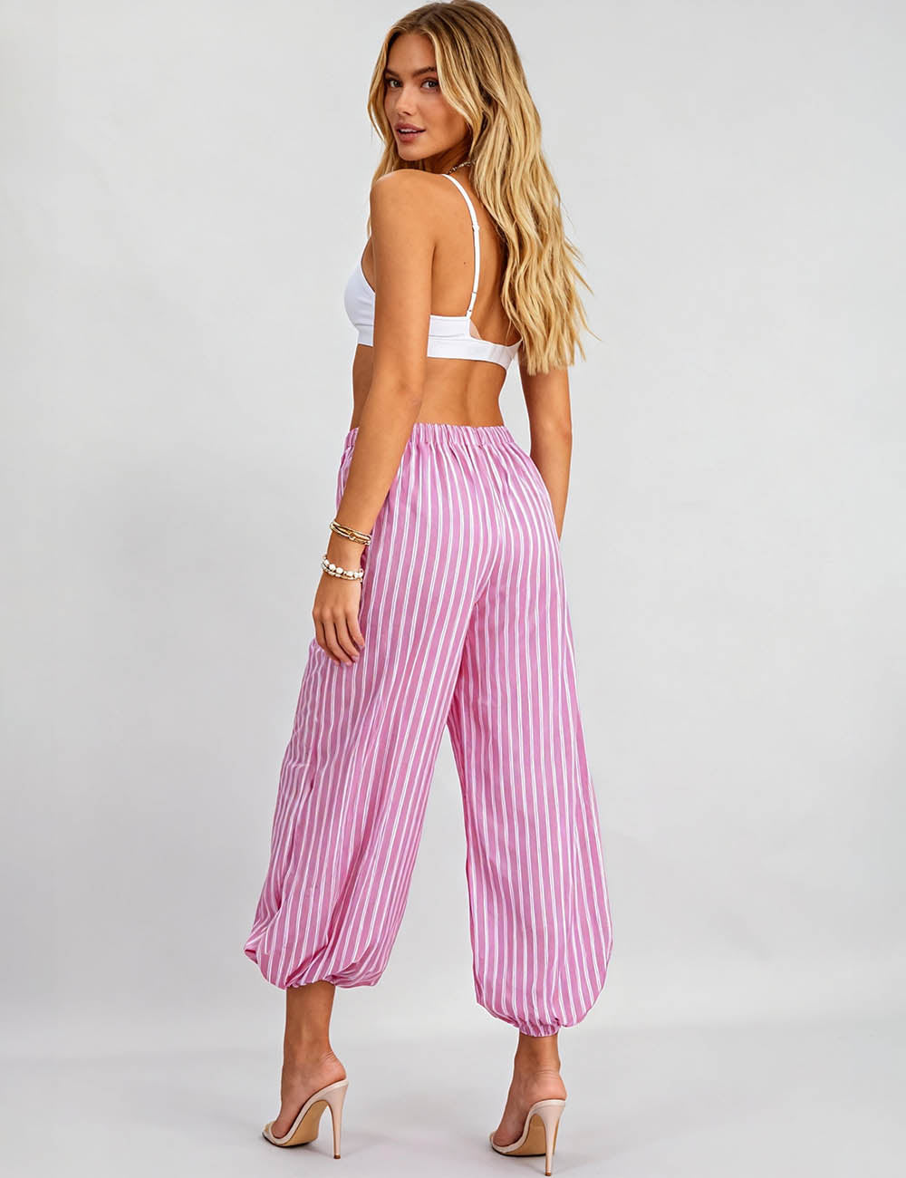 Ladies Striped Drawstring Cinched Hem Balloon Pants