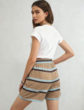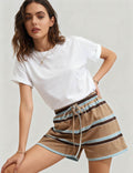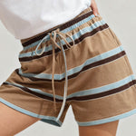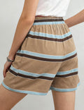 Ladies Striped Elastic Waist Drawstring Wide Leg Shorts