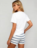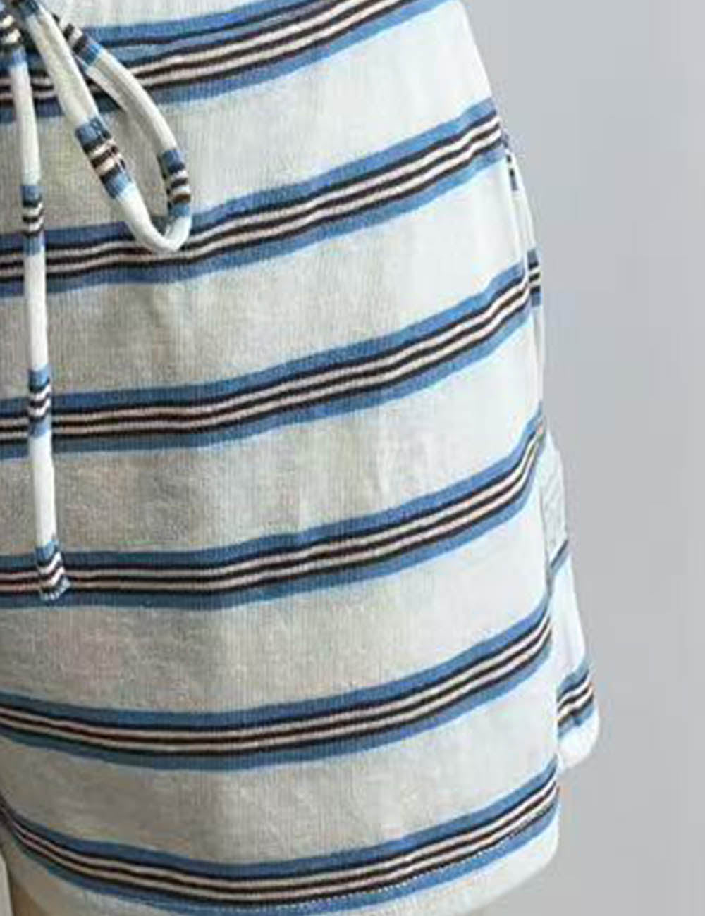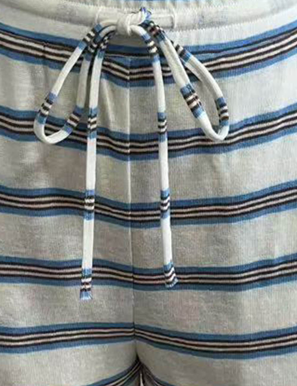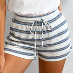 Ladies Striped Elastic Waist Drawstring Wide Leg Shorts