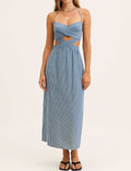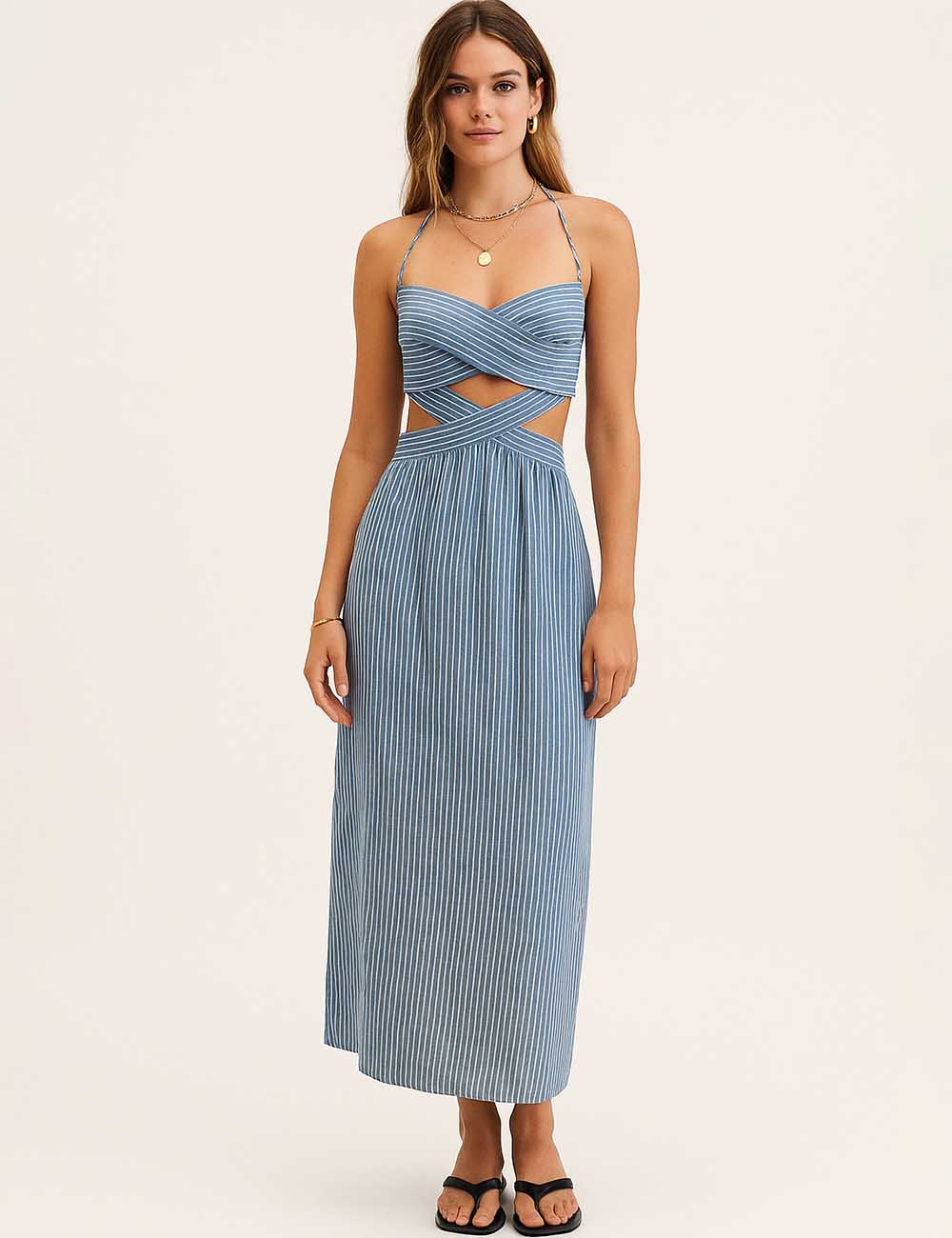 Ladies Striped Halter Tie Crisscross Cut-Out Maxi Dress