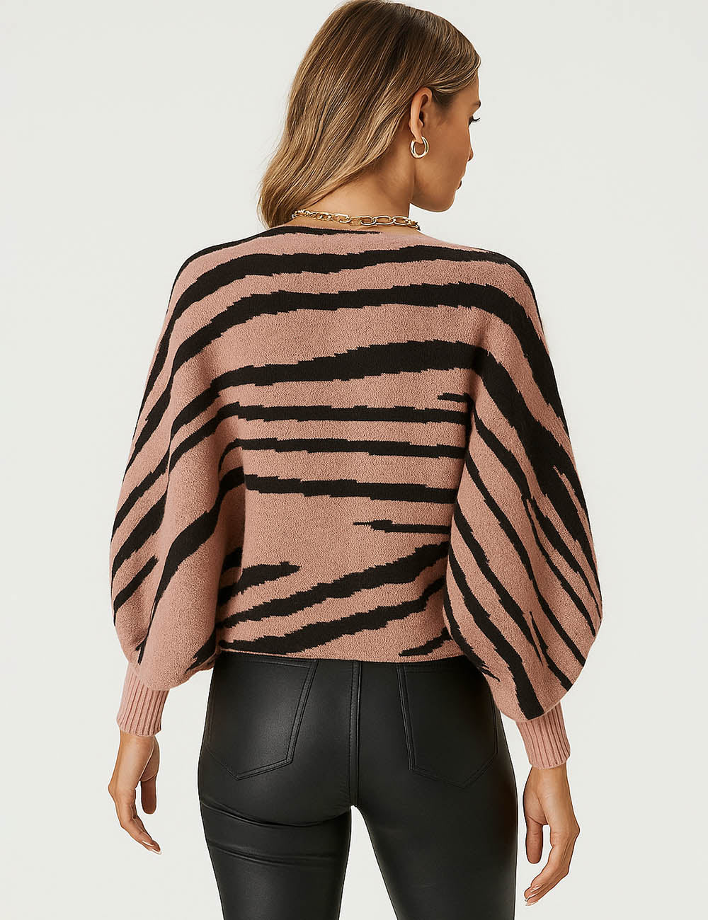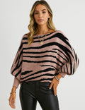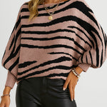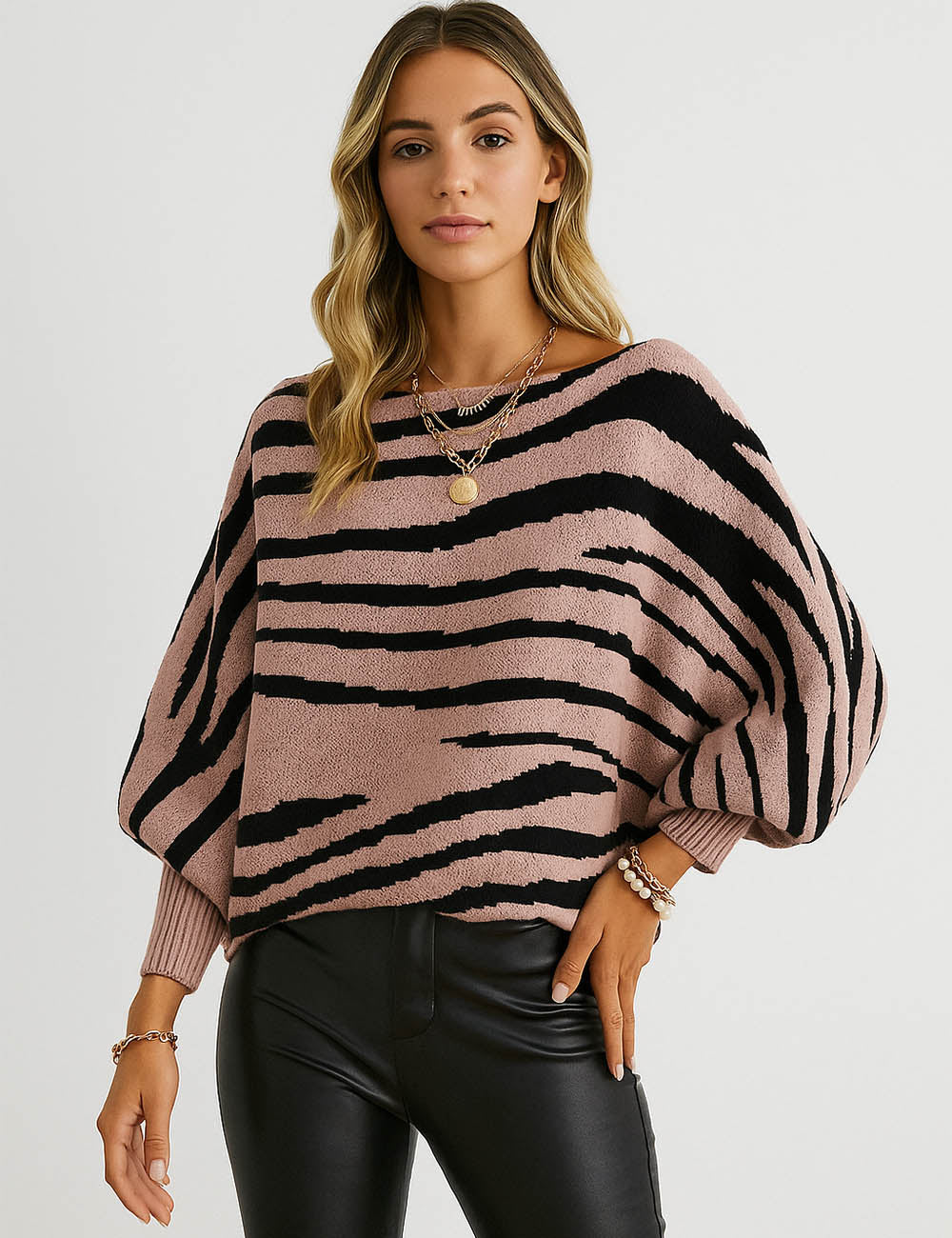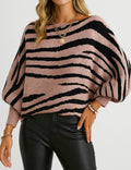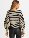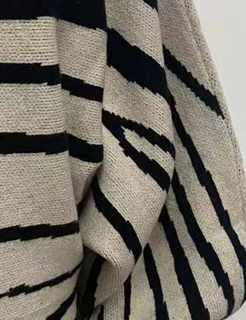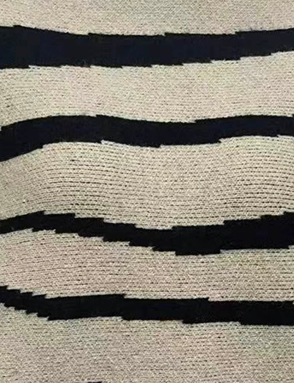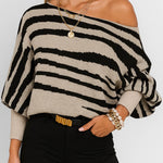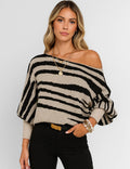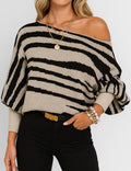 Ladies Striped Knit Round Neck One Shoulder Sweater Top