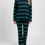 Ladies Striped Long Sleeves Flared Leg Top & Pants Set