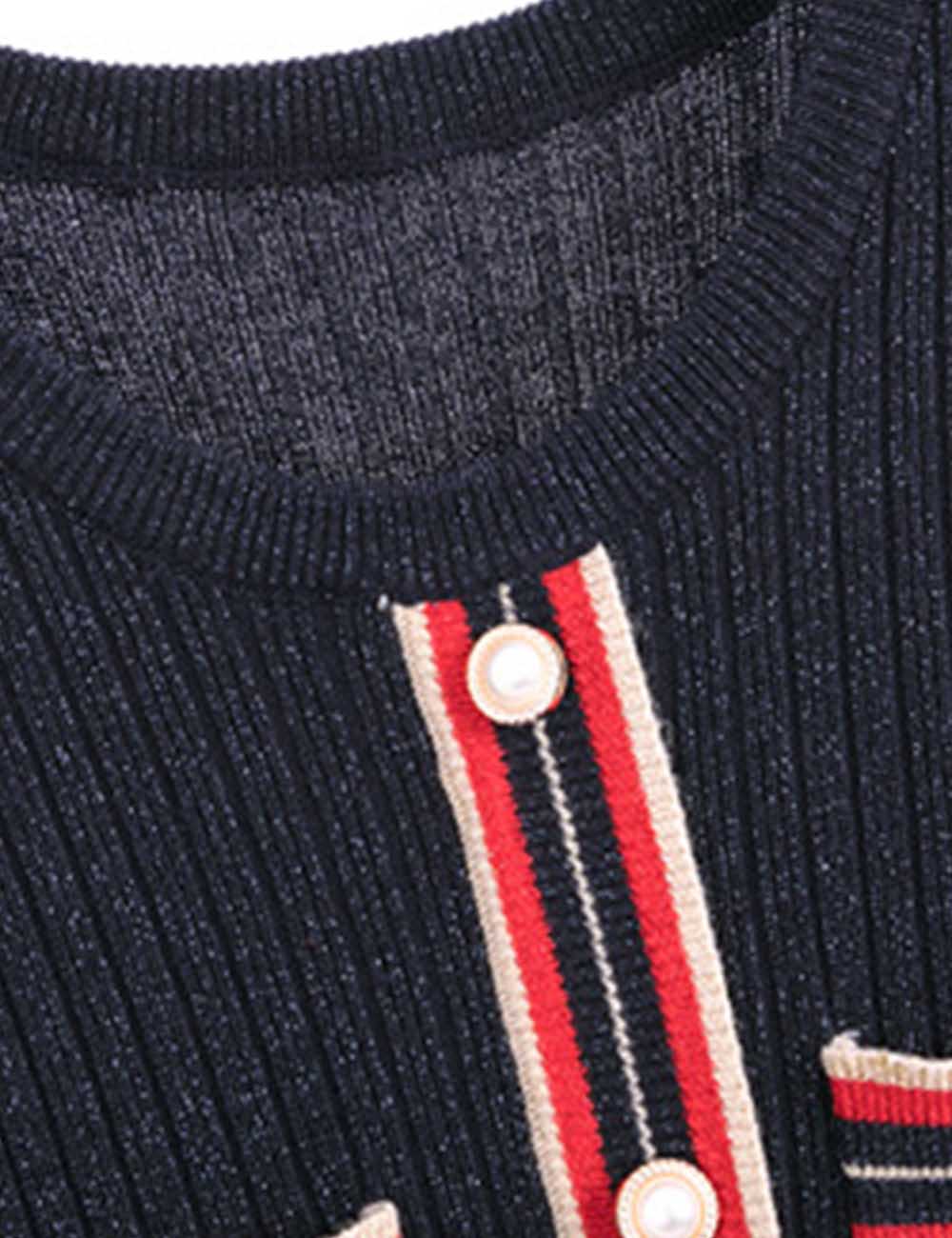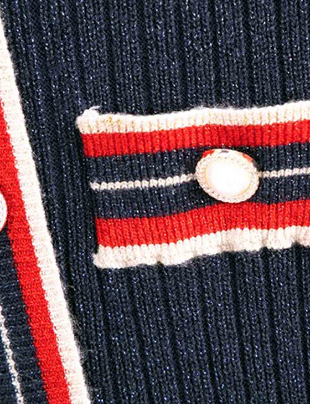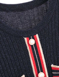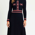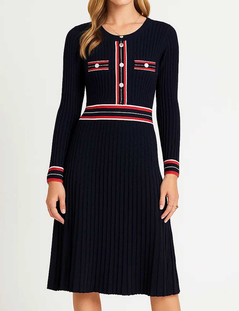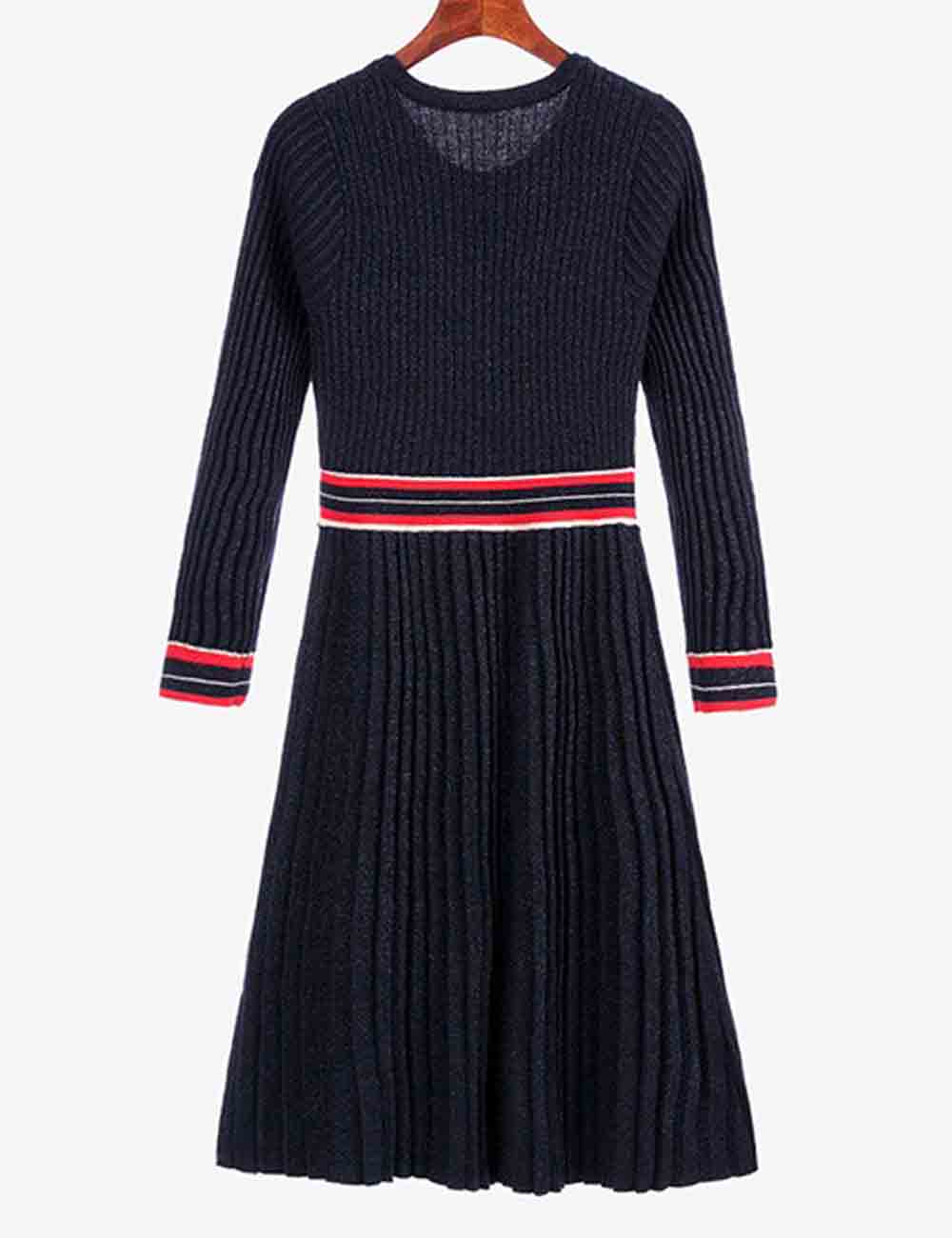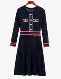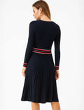 Ladies Striped Long Sleeves Pleated Knit Midi Dress