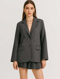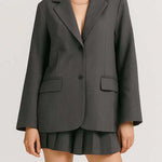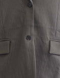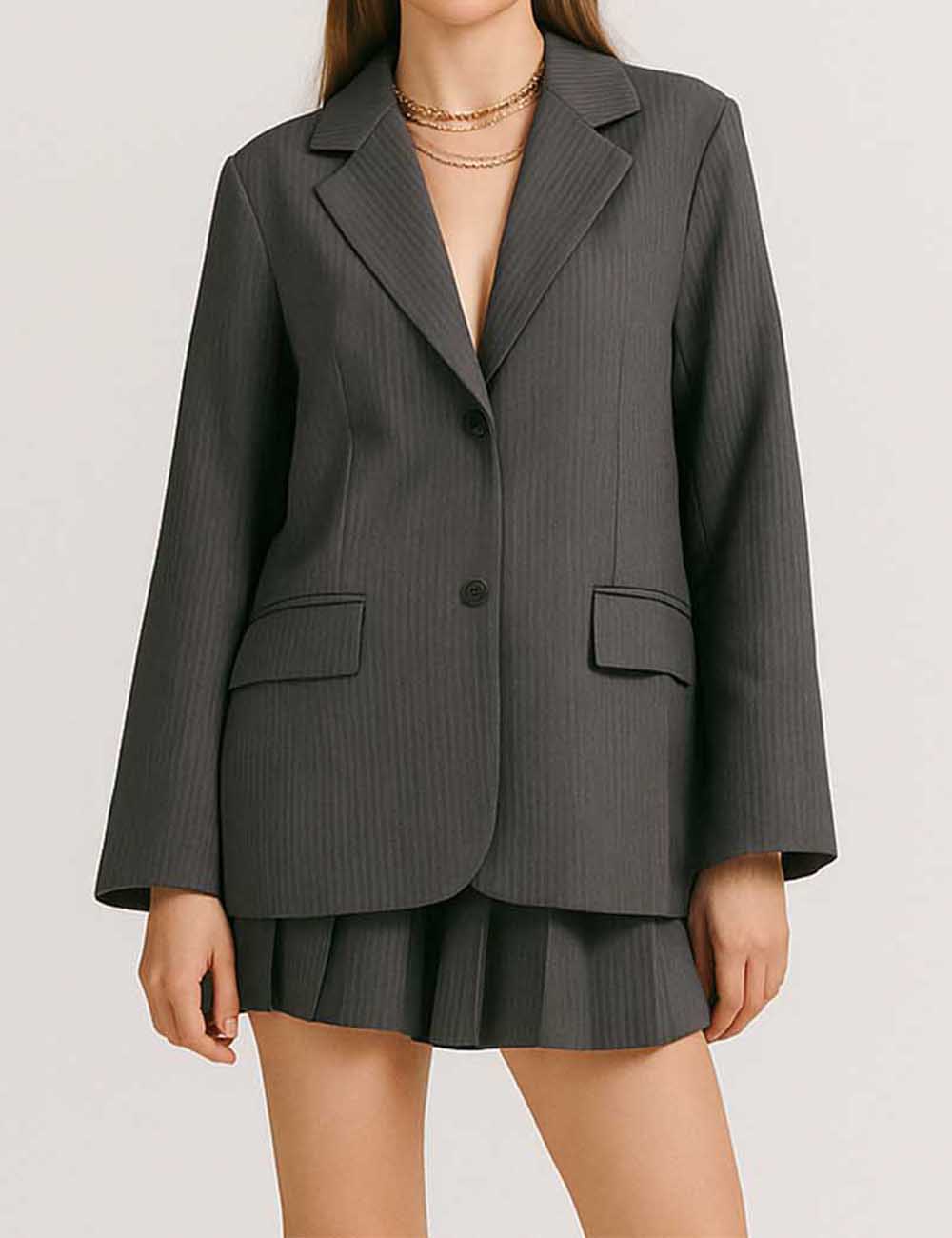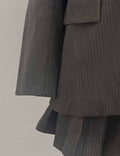 Ladies Striped Notched Lapel Blazer Pleated Mini Skirt 2PCS Set