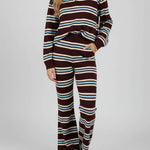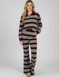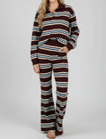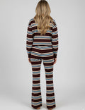 Ladies Striped Polo Collar Flared Leg Sweatshirt & Pants Set
