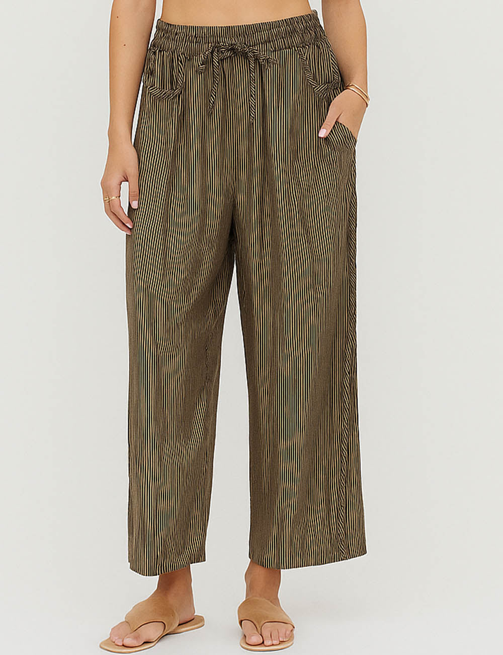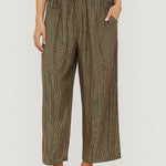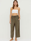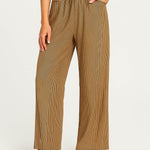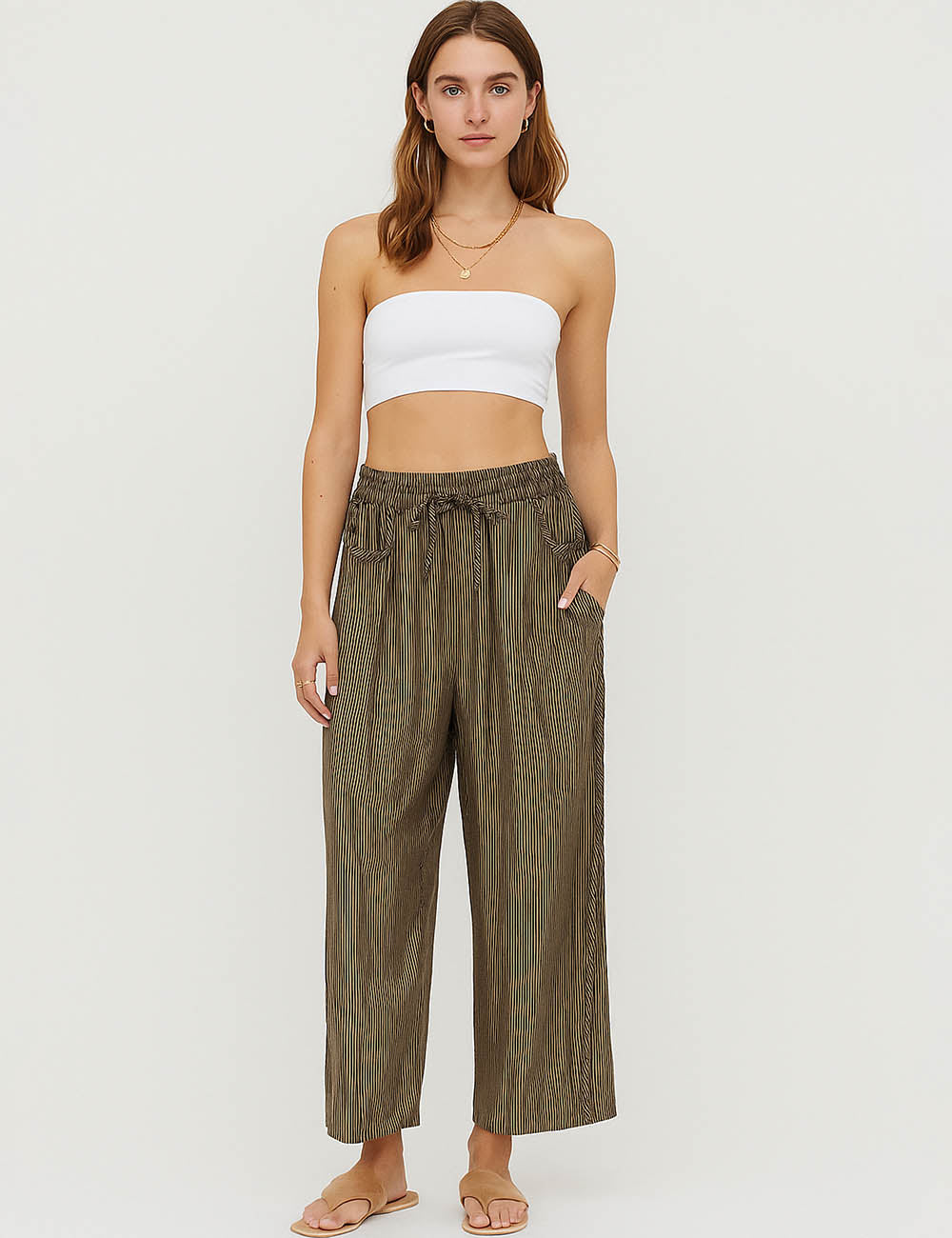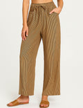 Ladies Striped Print Elastic Waist Lace Up Wide Leg Pants