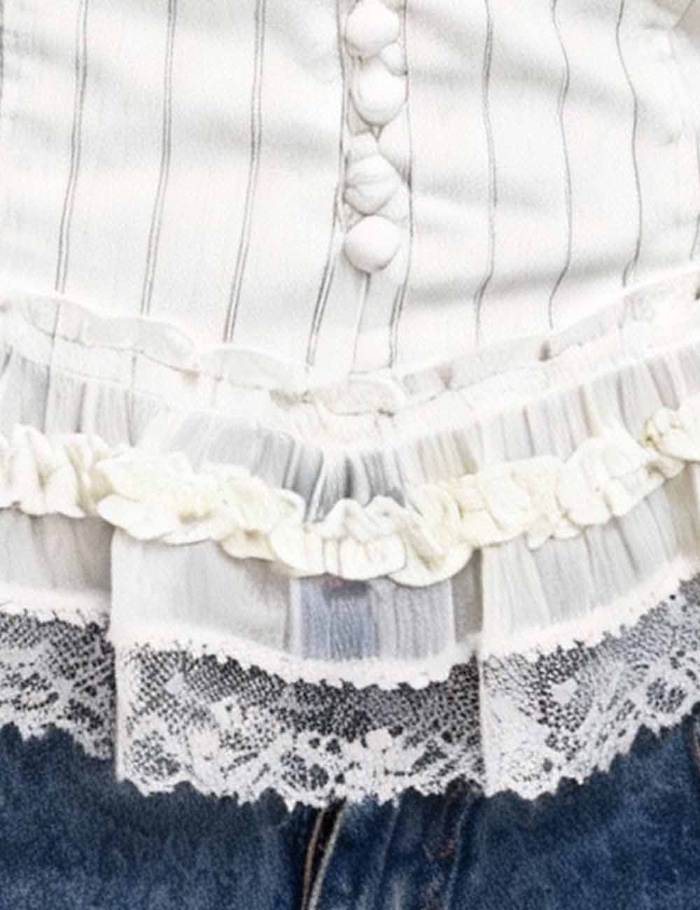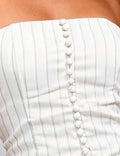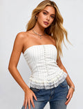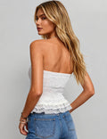 Ladies Striped Print Tiered Lace Hem Padded Tube Top