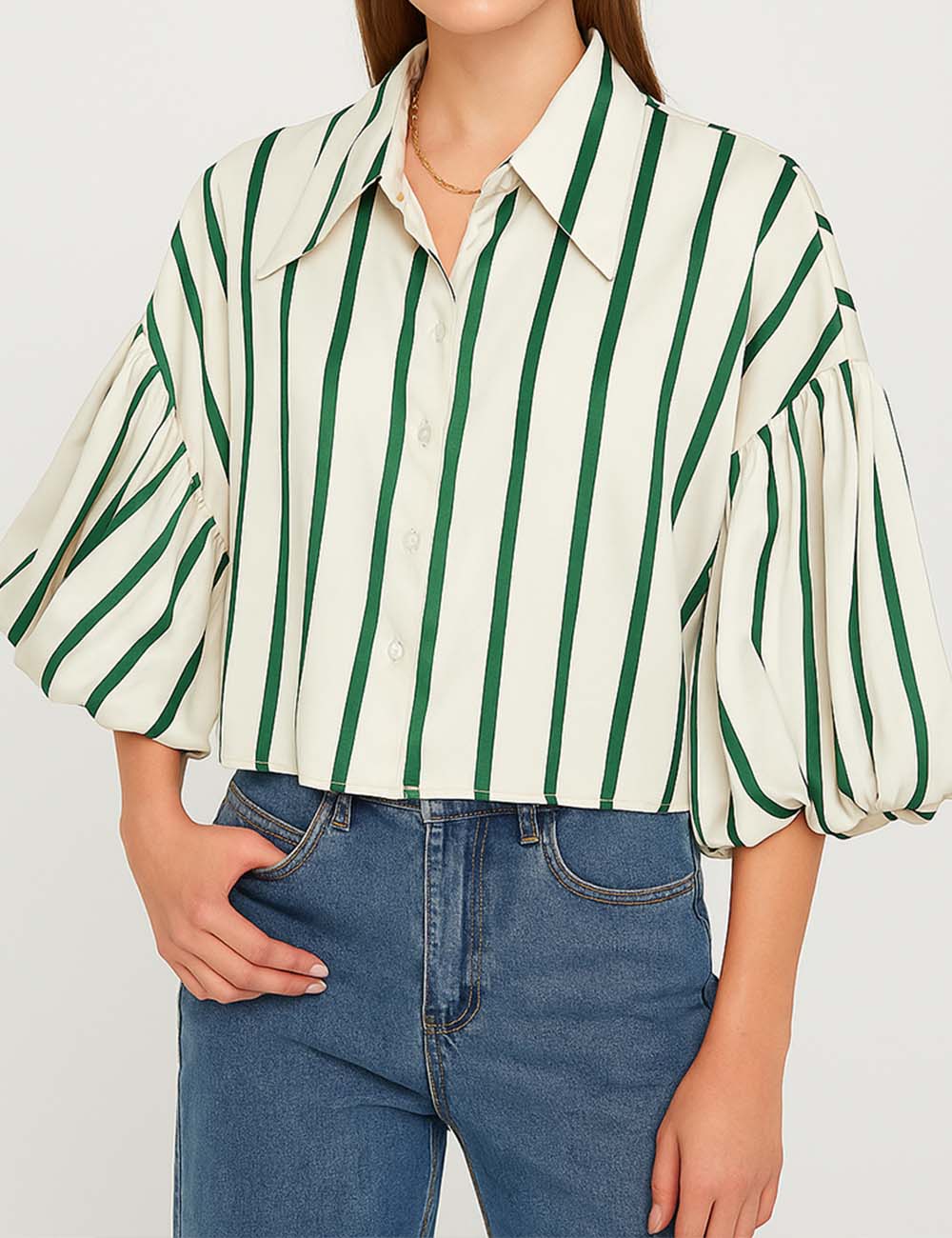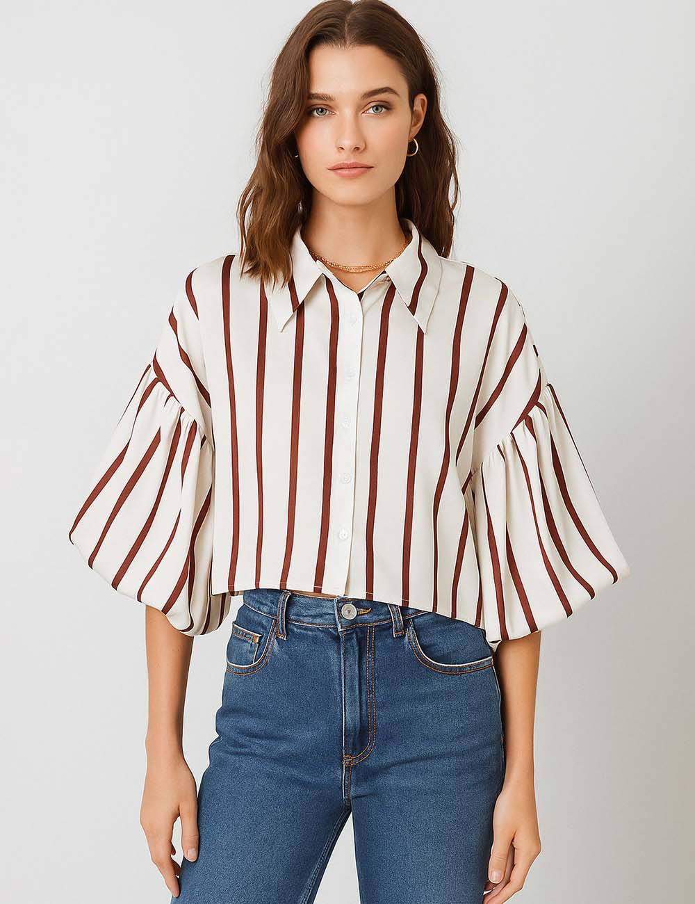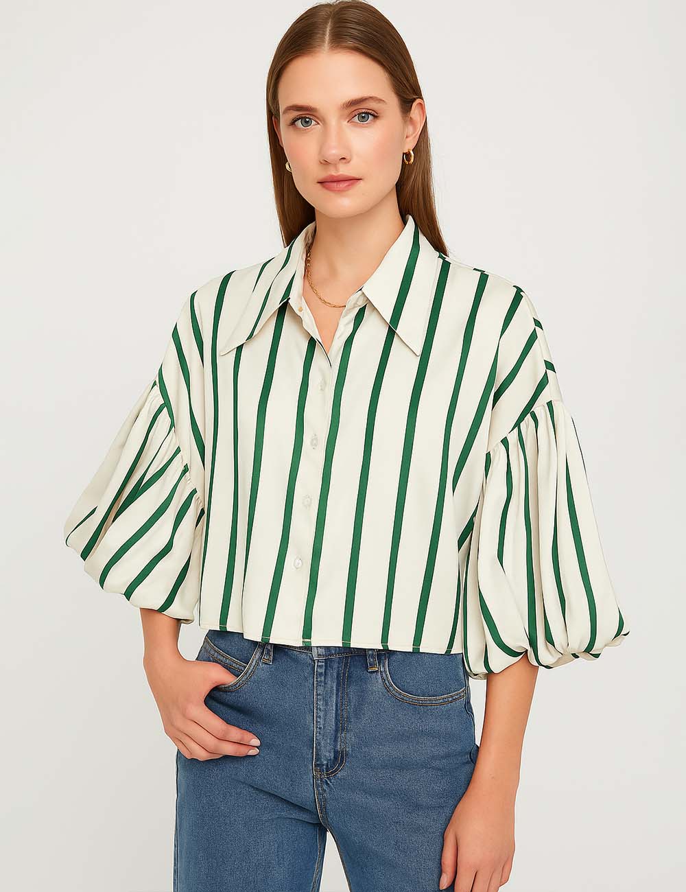 Ladies Striped Puff Sleeves Button Shirt SP068