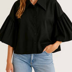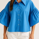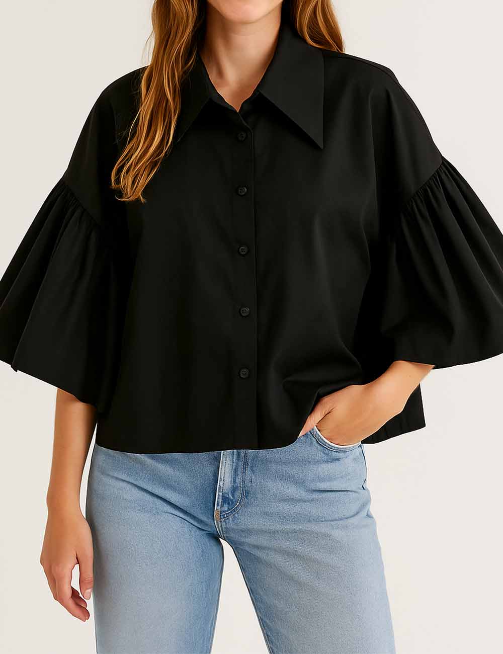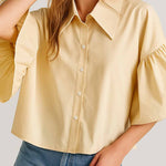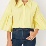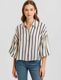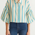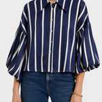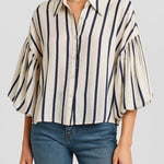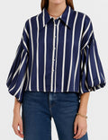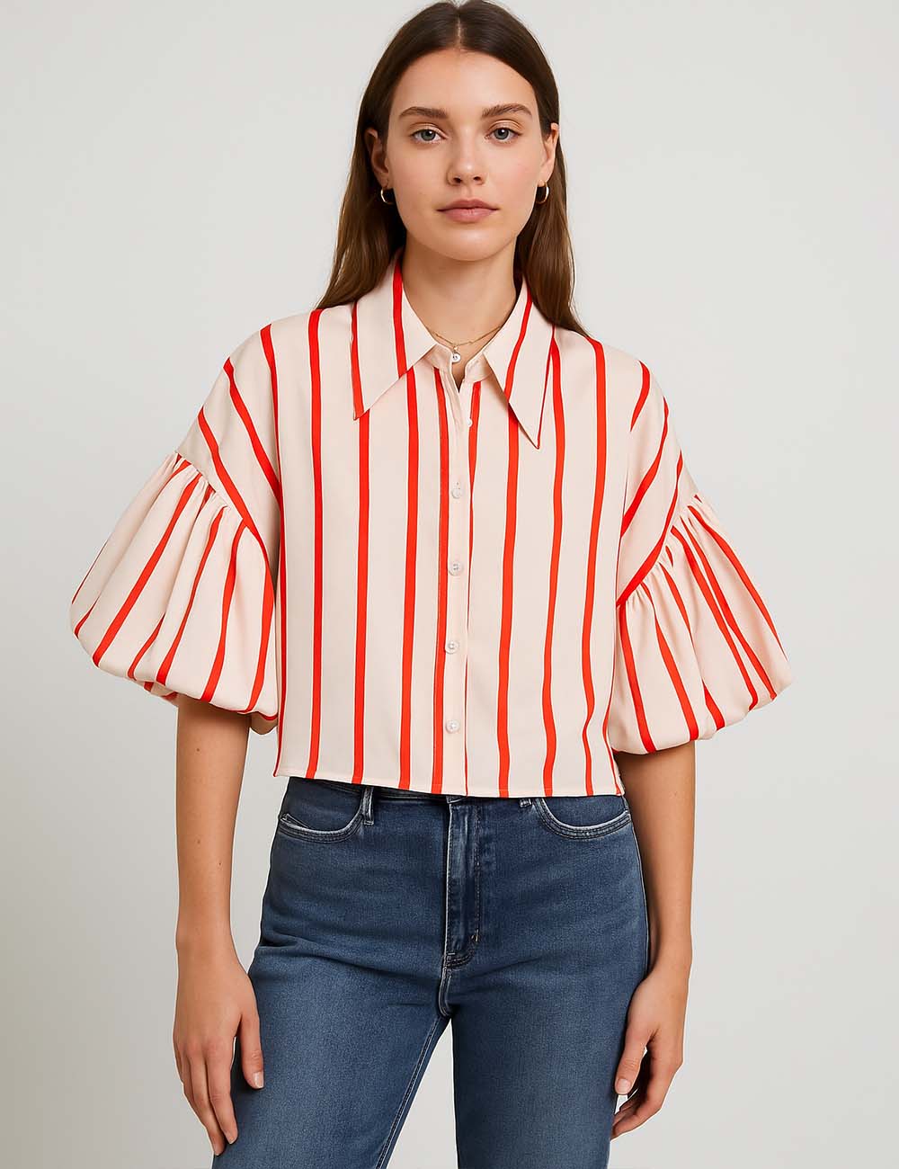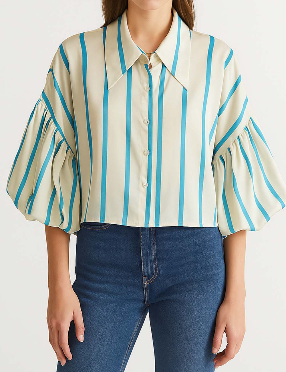 Ladies Striped Puff Sleeves Button Shirt SP068