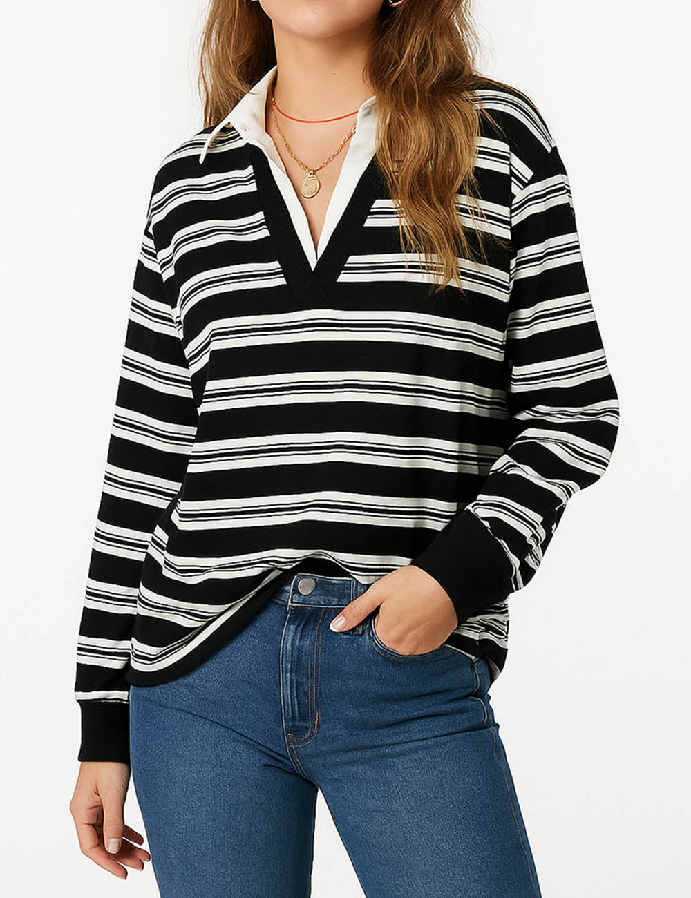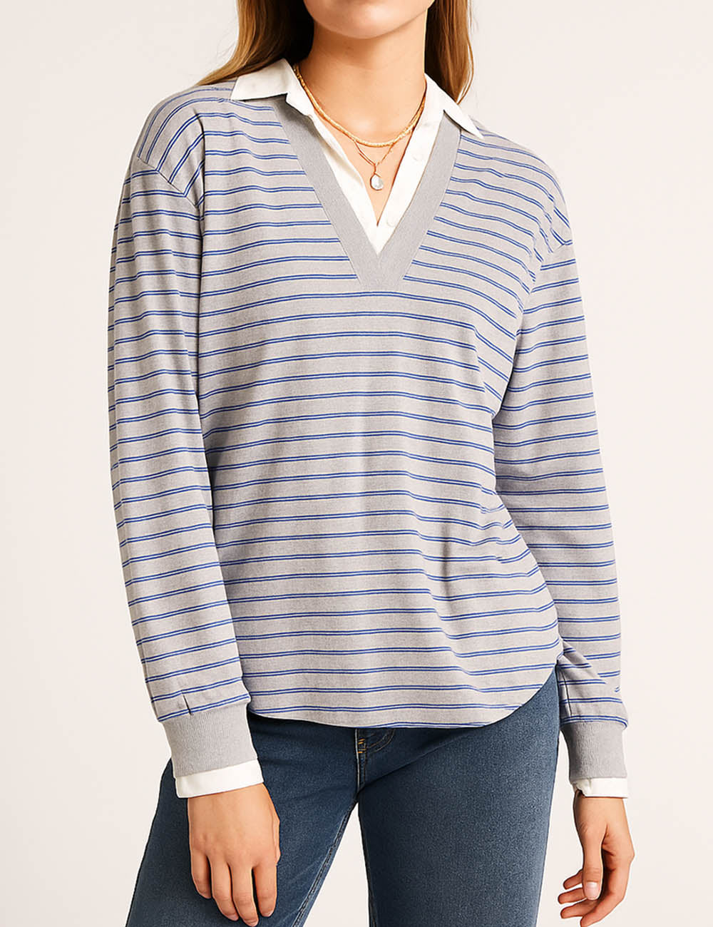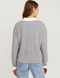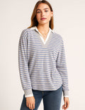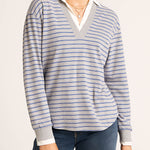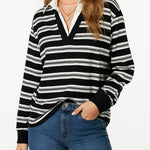Ladies Striped Shirt Collar Long Sleeves Fake 2PCS Sweatshirt