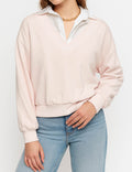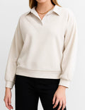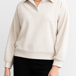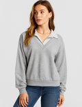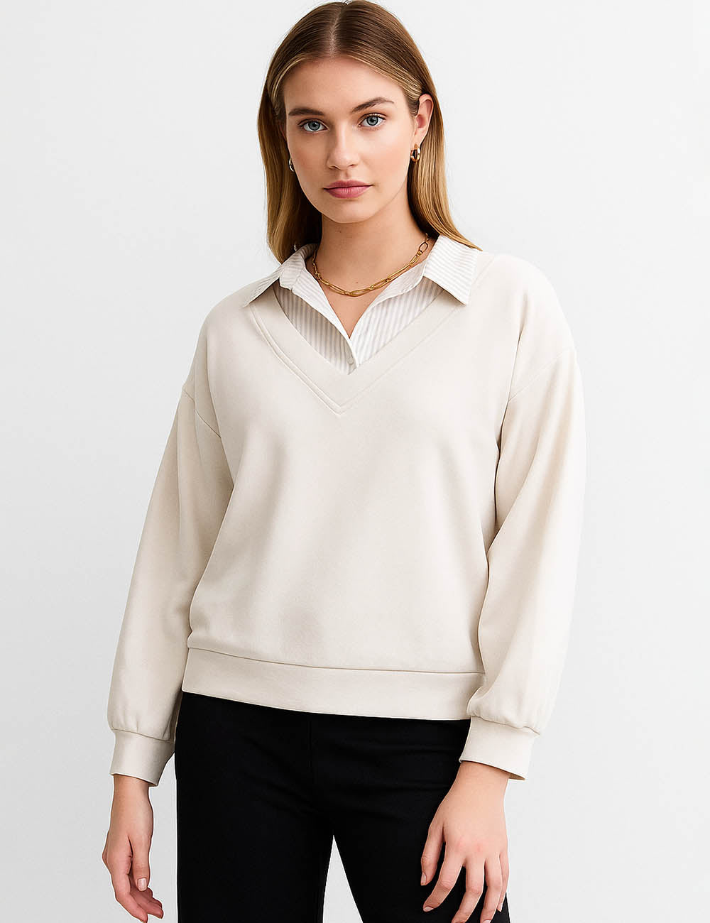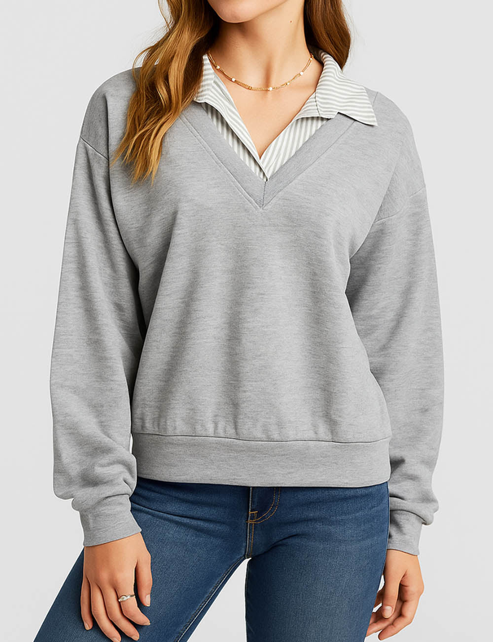 Ladies Striped Shirt Collar Long Sleeves Faux 2PCS Sweatshirt