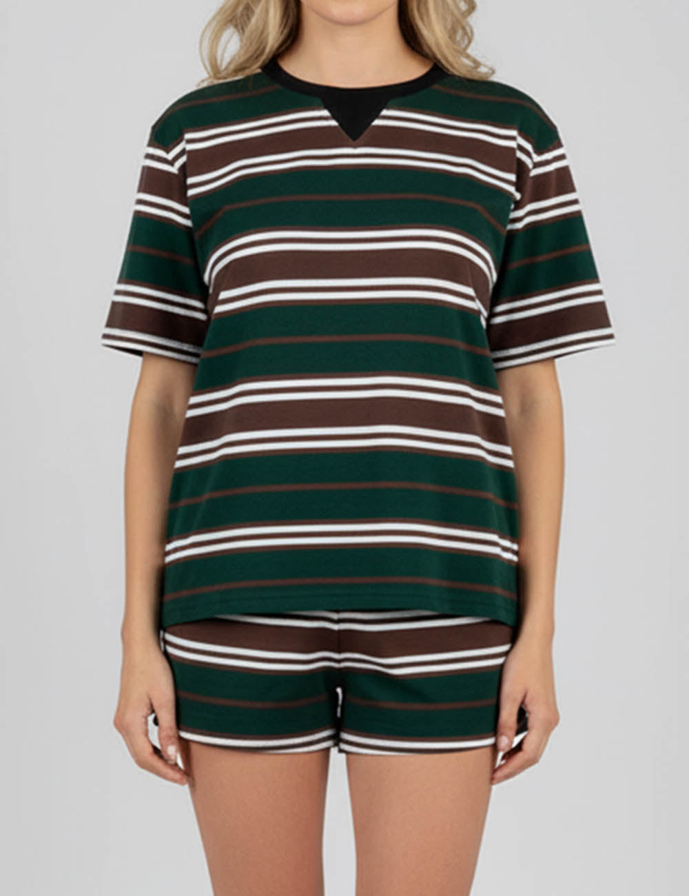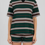 Ladies Striped Short Sleeves Top & Wide Leg Shorts 2PCS Set