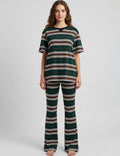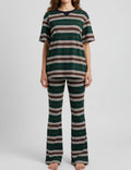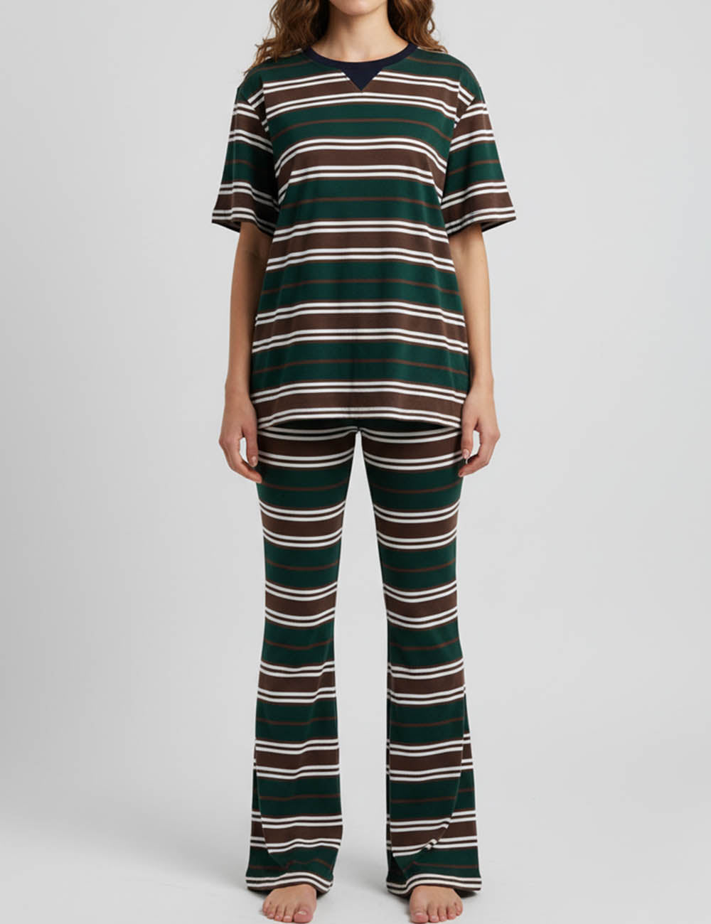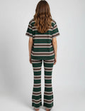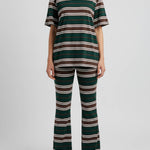 Ladies Striped Shorts Sleeves Flared Leg Top & Pants Set