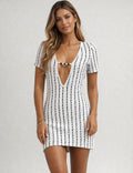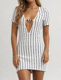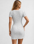 Ladies Striped V-Neck Short Sleeves Hip-Wrap Mini Dress