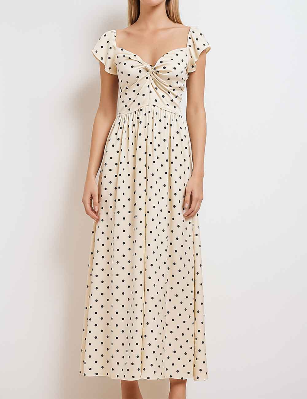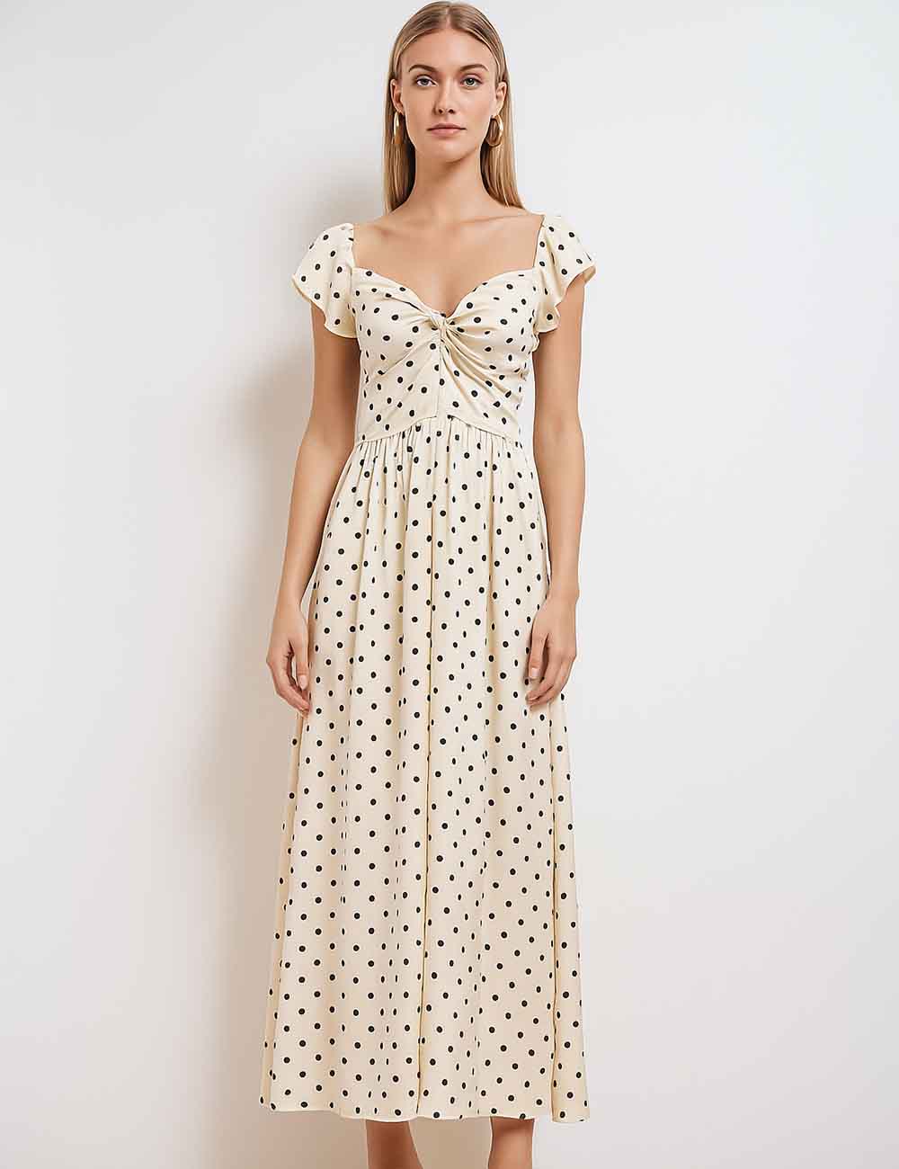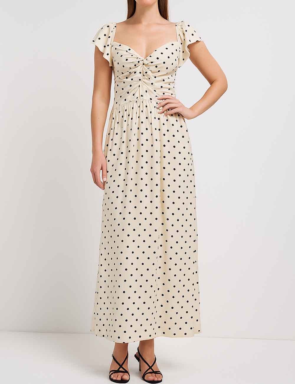 Ladies Sweetheart Neck Polka Dot Ruffle Maxi Dress