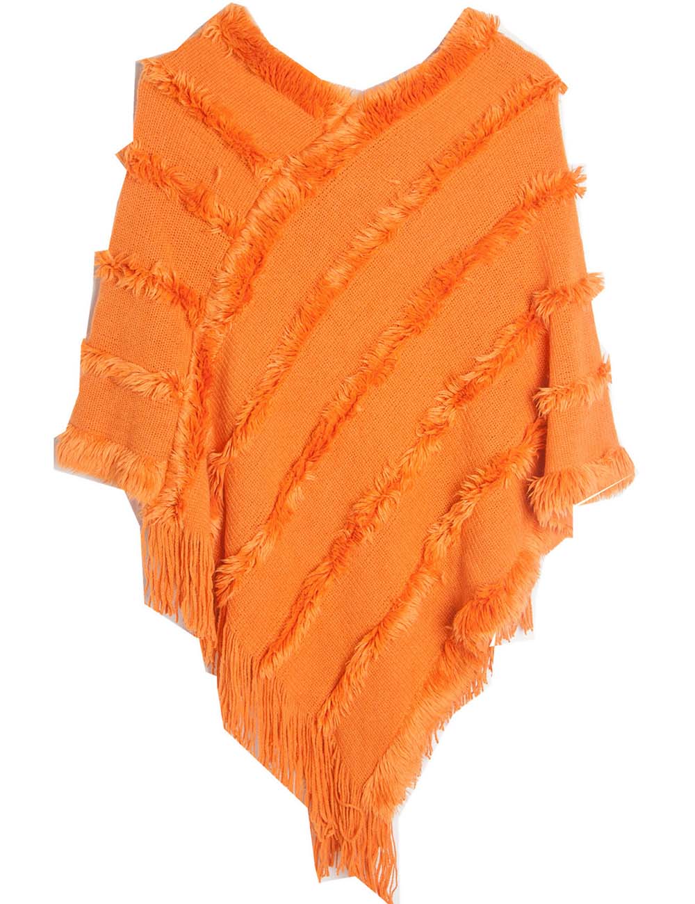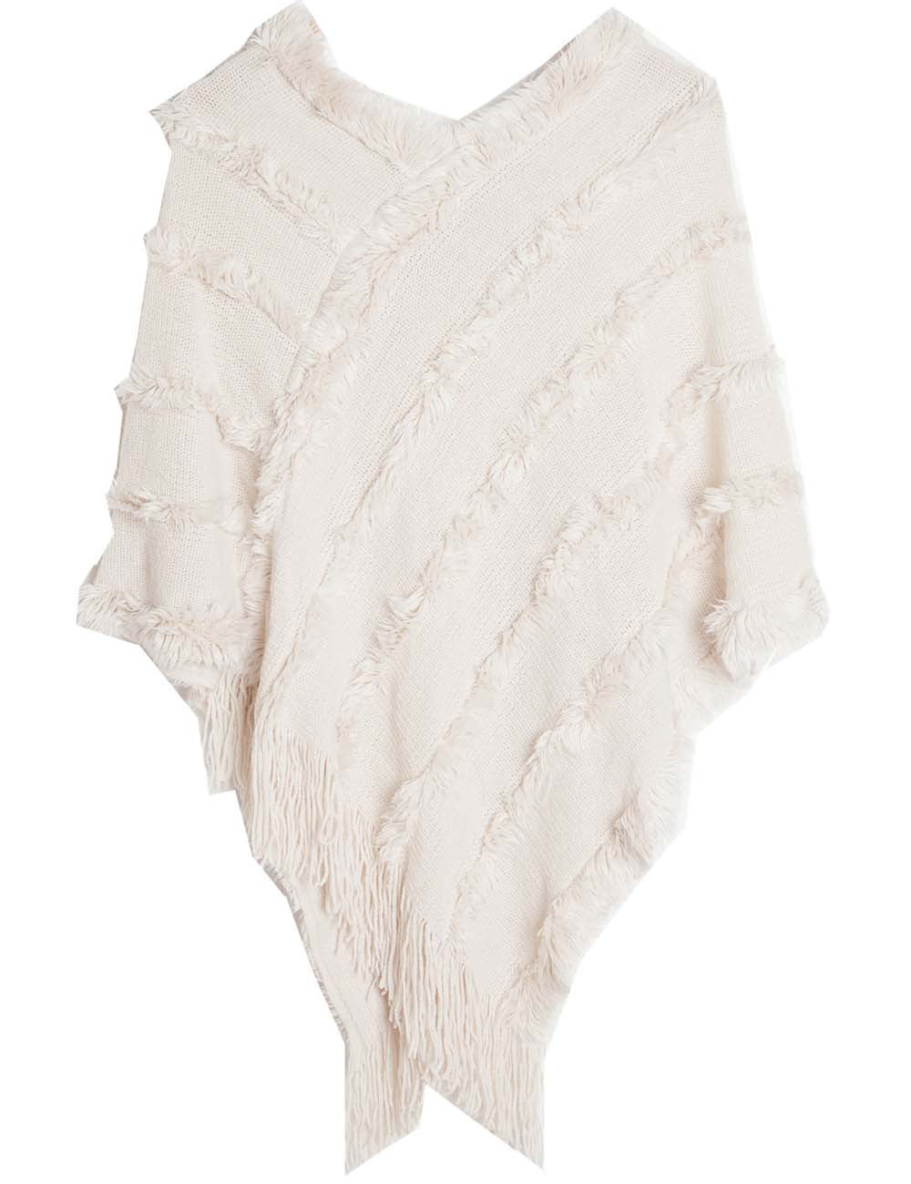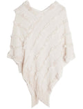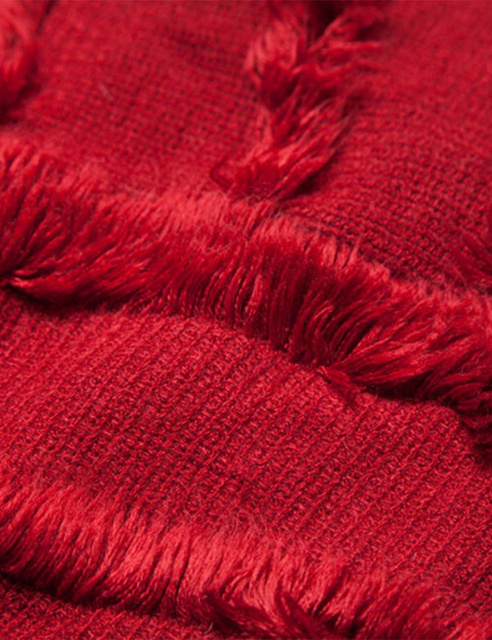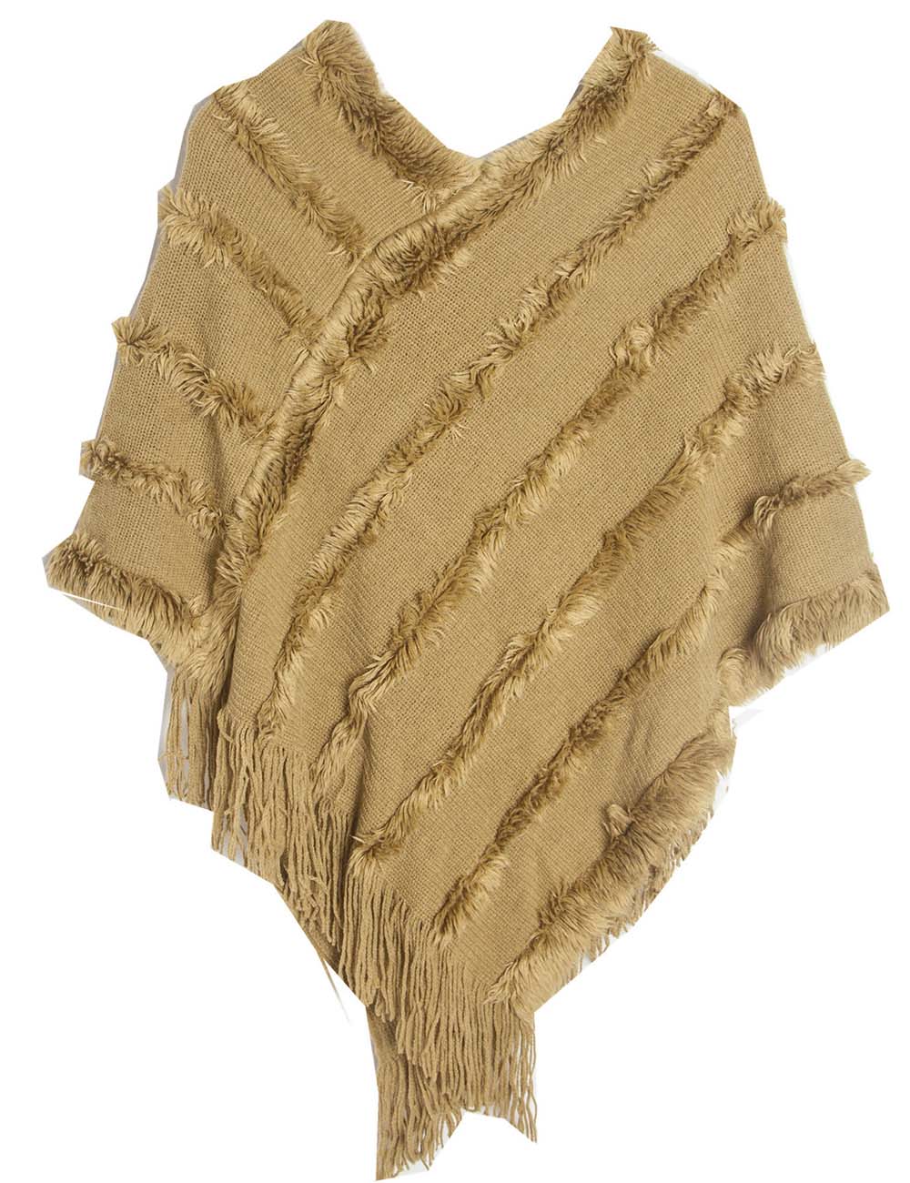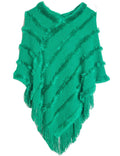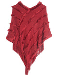 Ladies Tassel Trim Scarf V-Neck Solid Color Knit Shawl