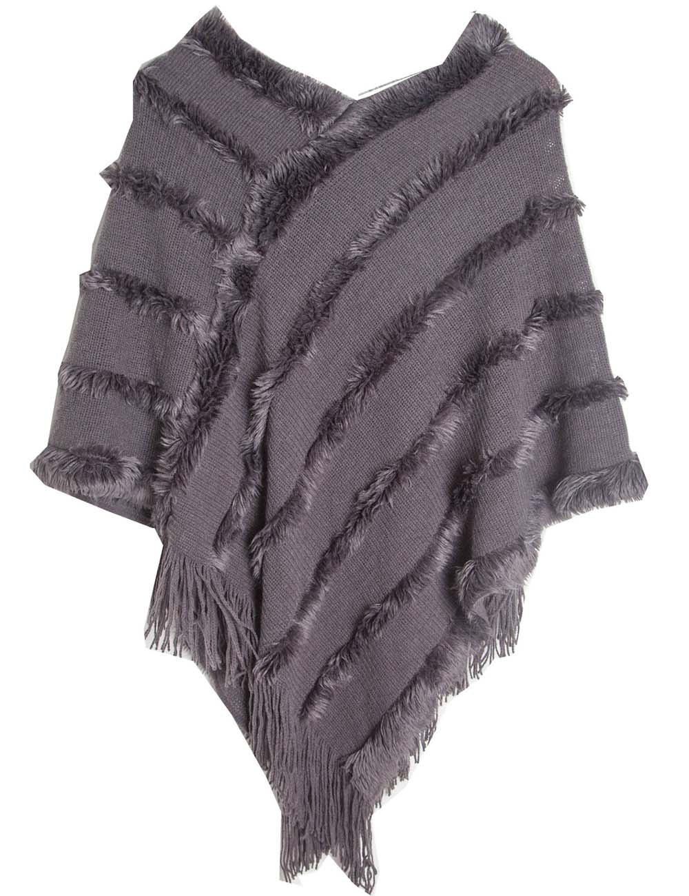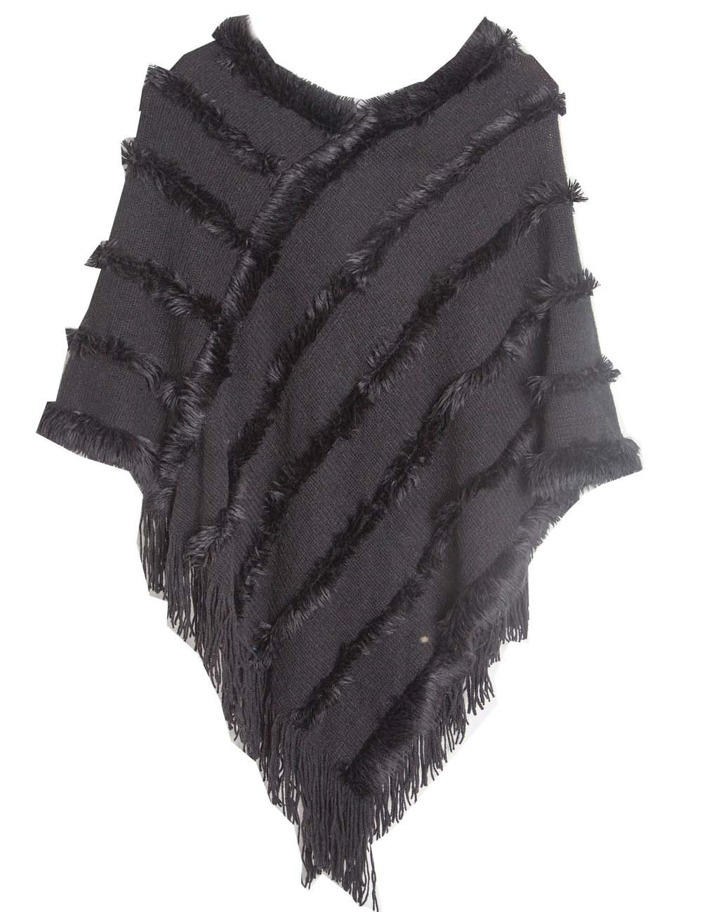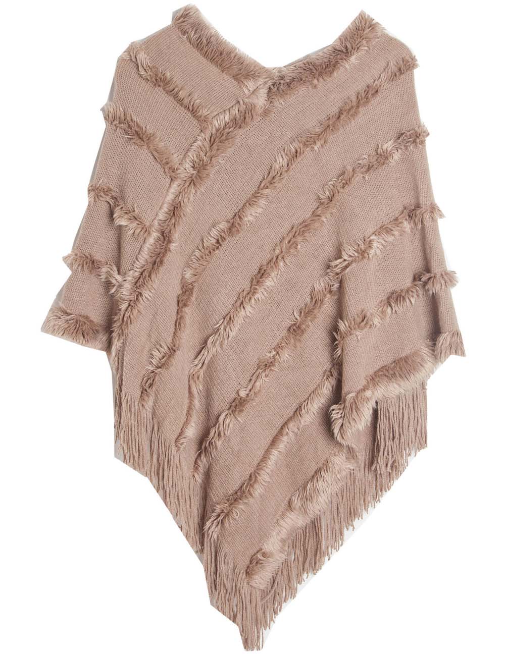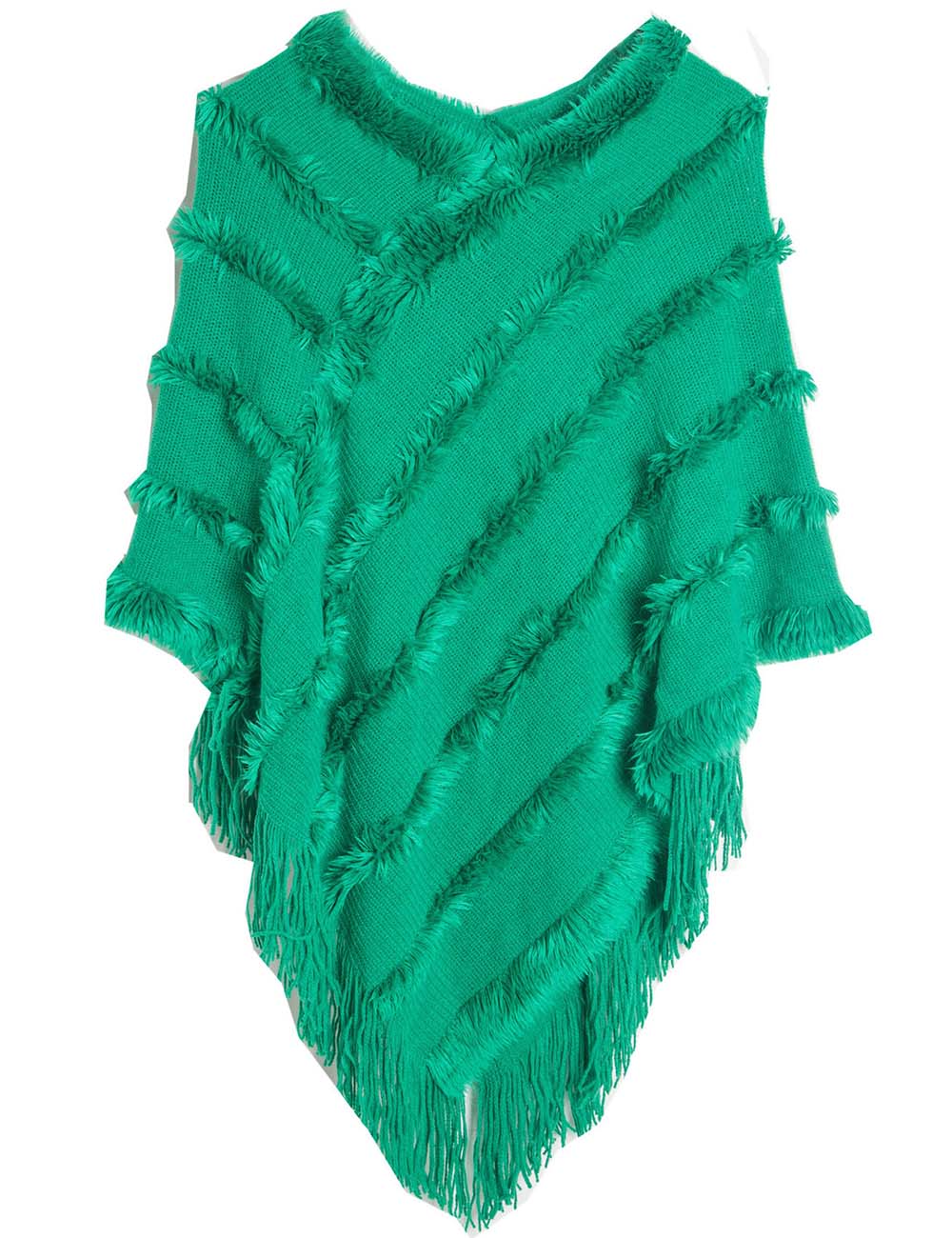 Ladies Tassel Trim Scarf V-Neck Solid Color Knit Shawl