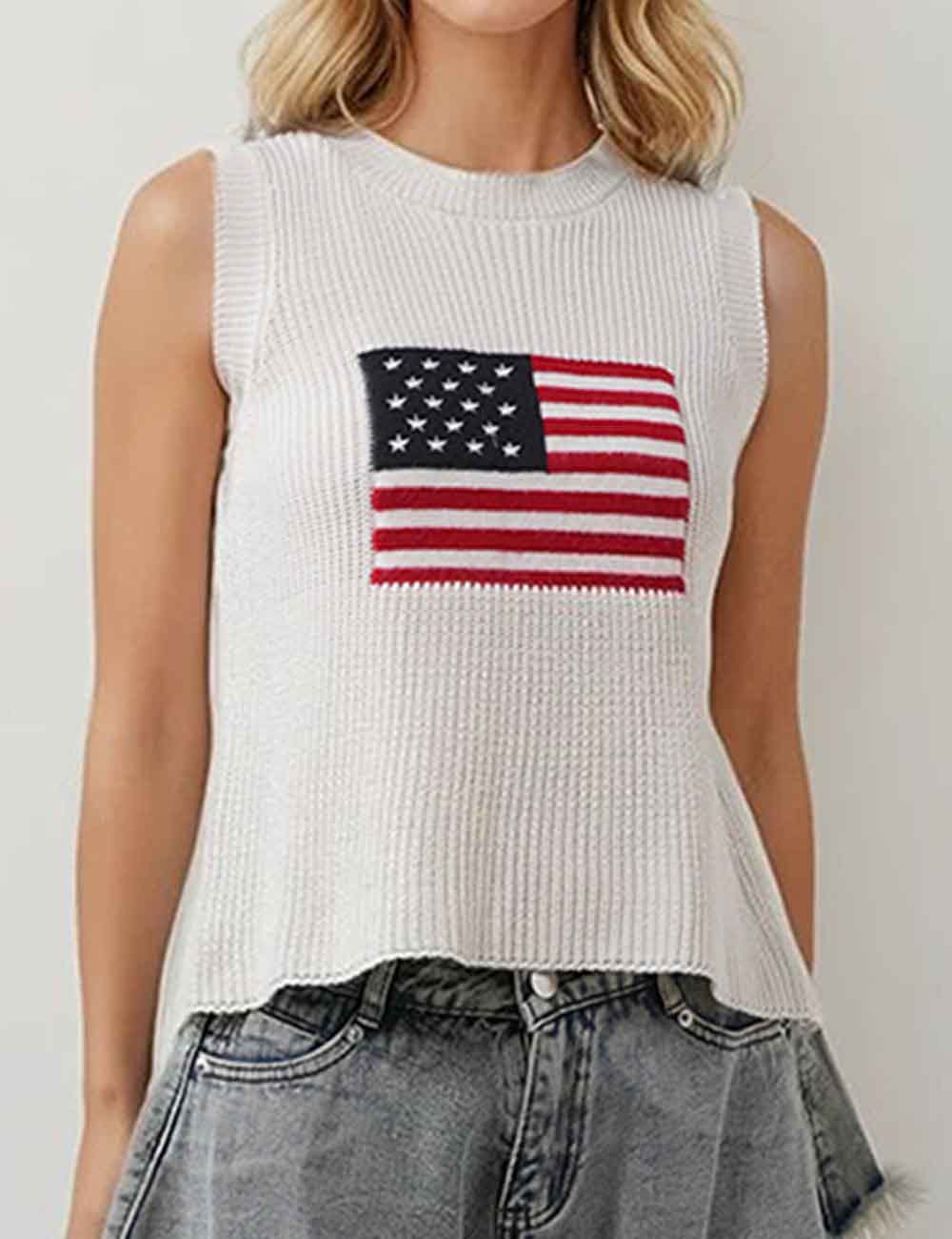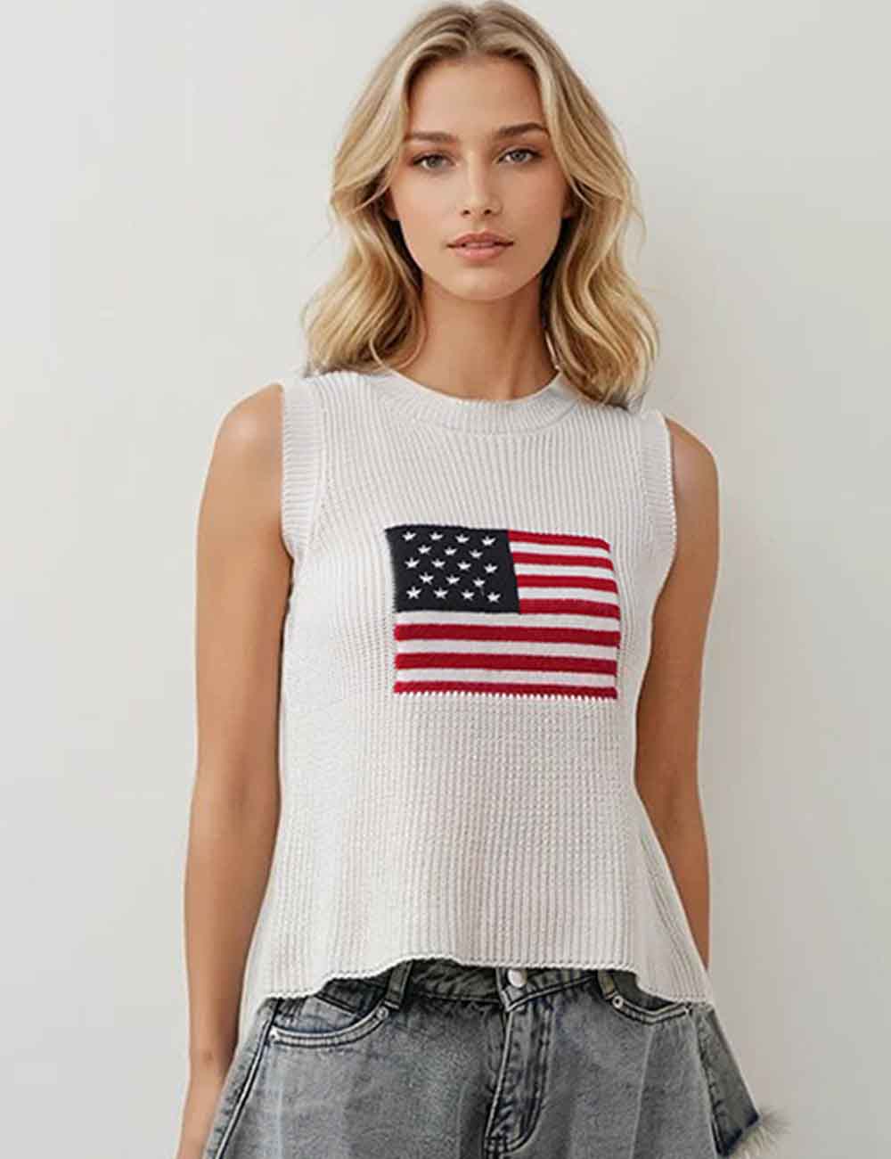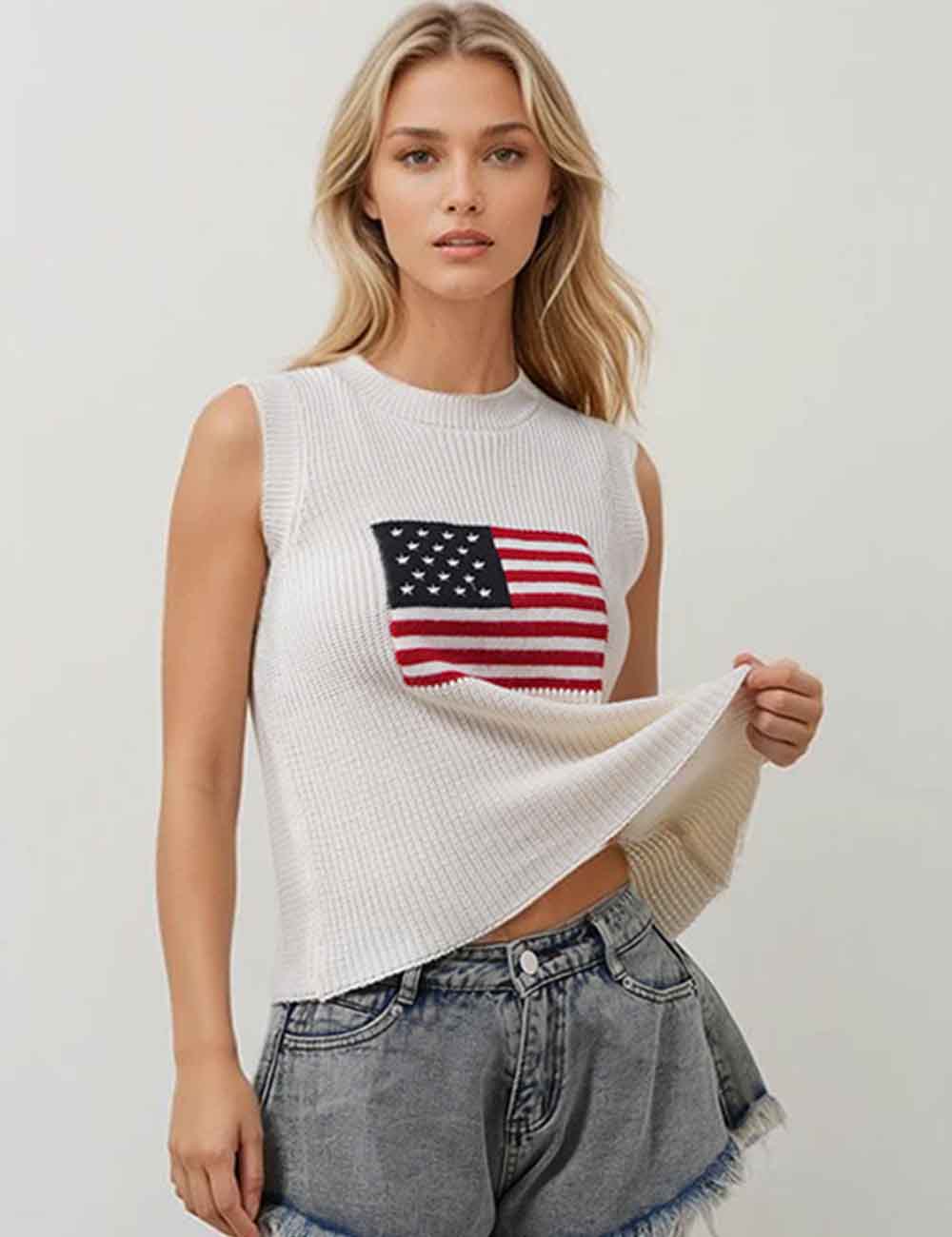 Ladies Flag Pattern Sleeveless Knit Sweater Vest