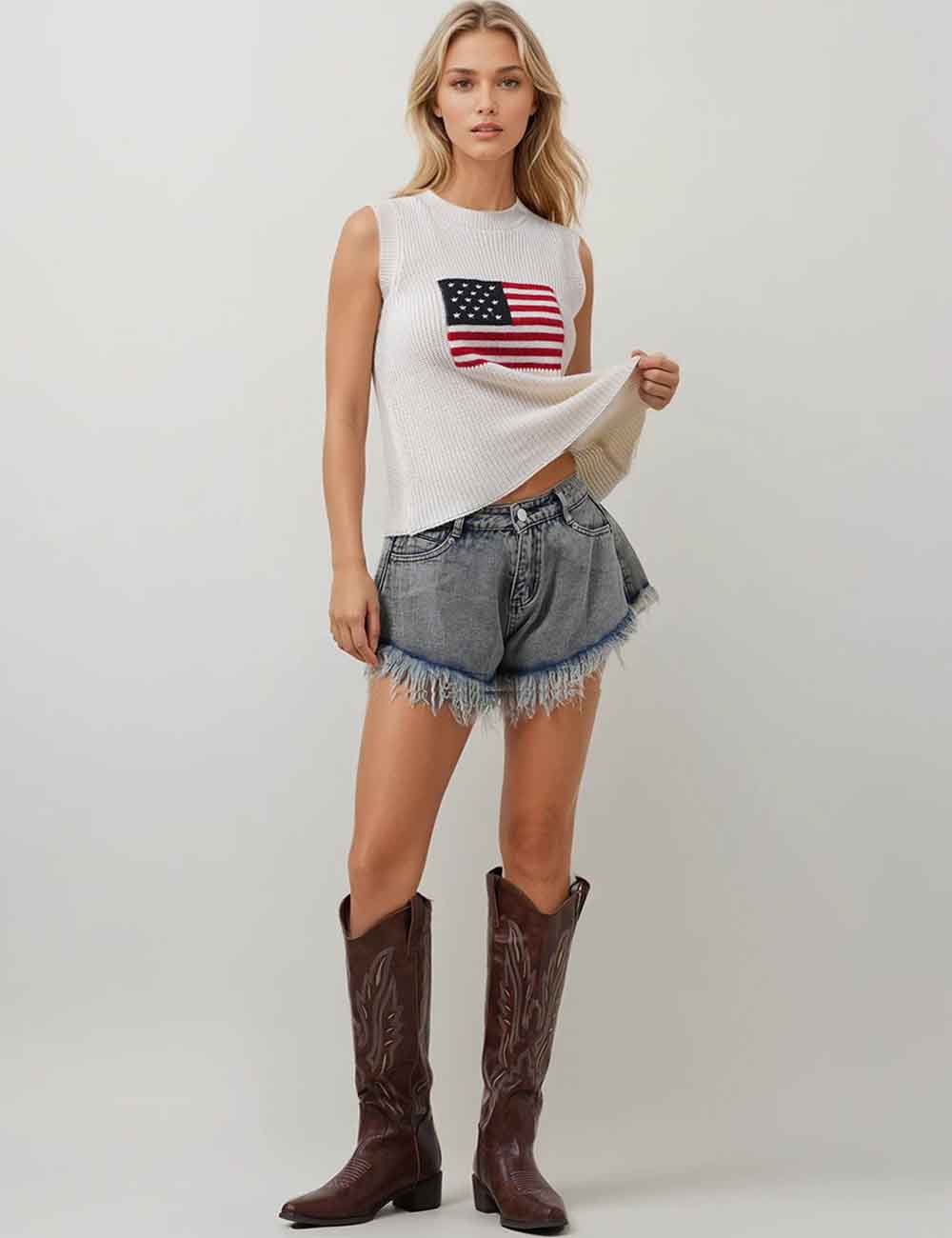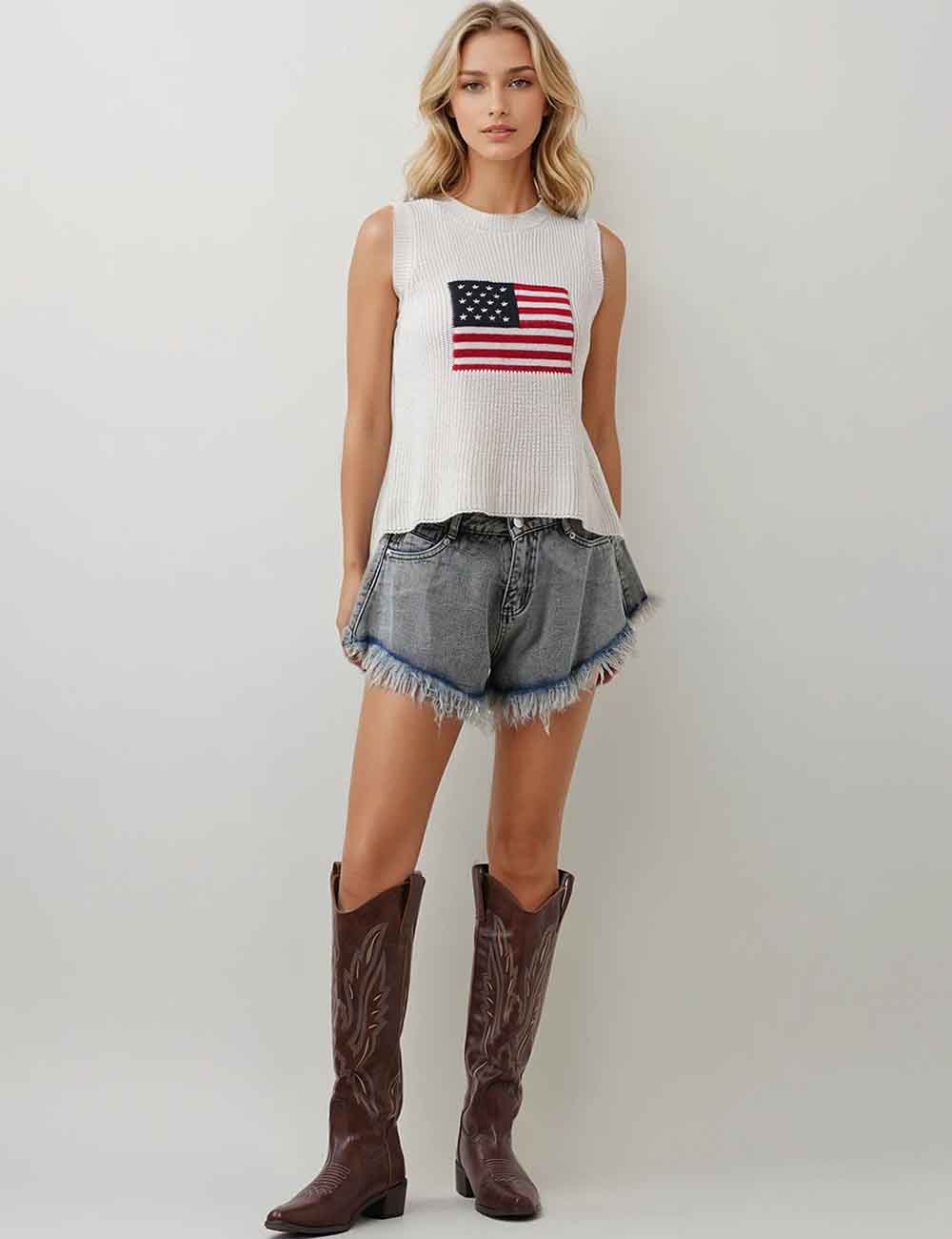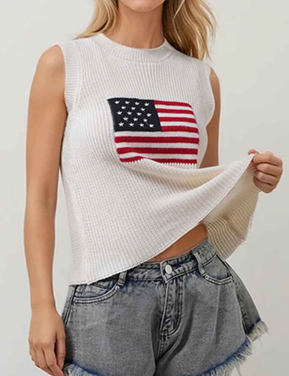 Ladies Flag Pattern Sleeveless Knit Sweater Vest