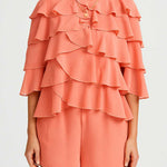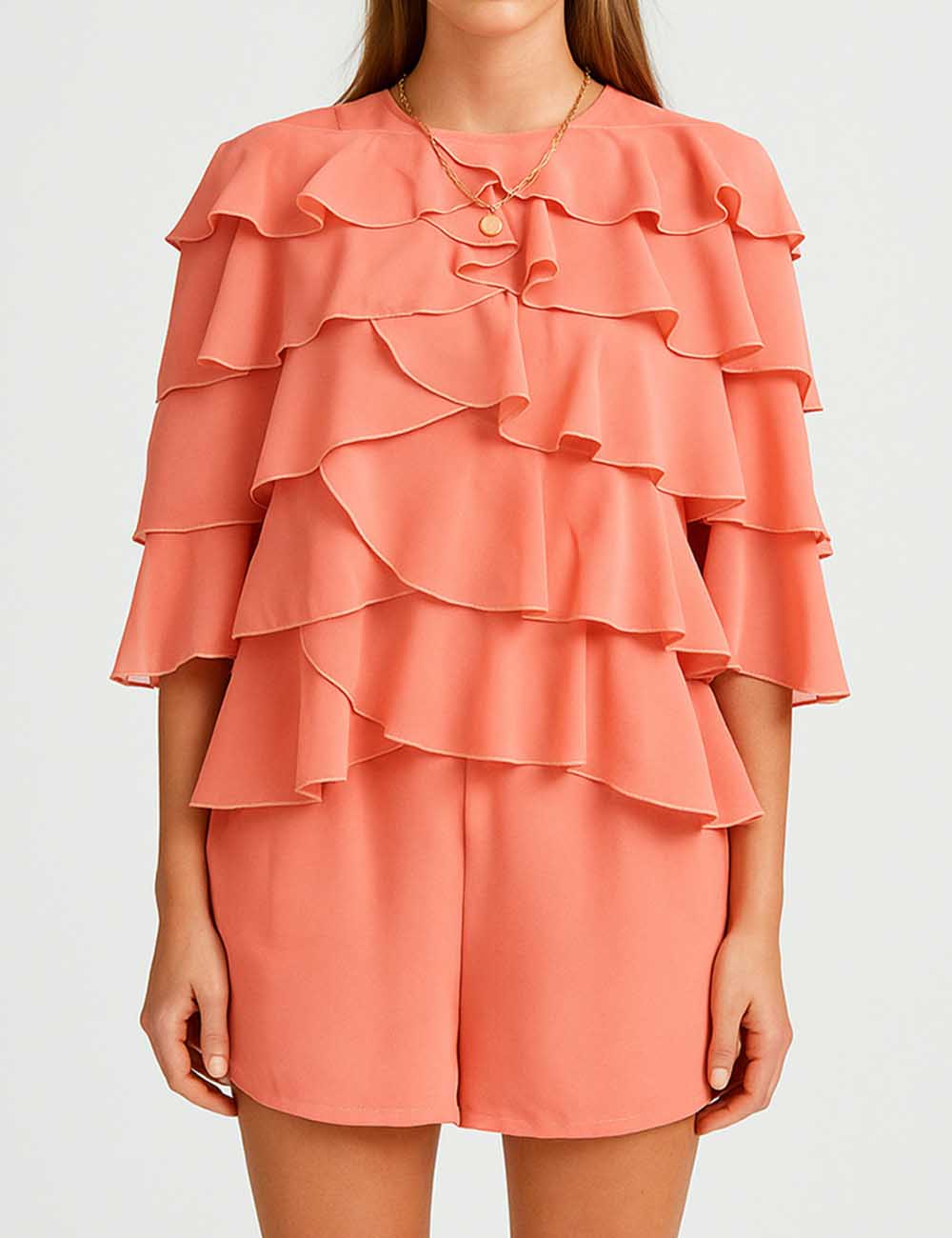 Ladies Tiered Ruffle Blouse Wide Leg Shorts 2PCS Set