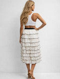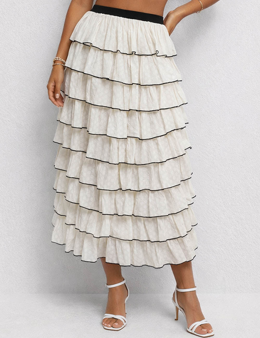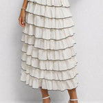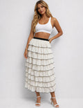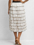 Ladies Chic Tiered Ruffle Elastic Waist Midi Skirt