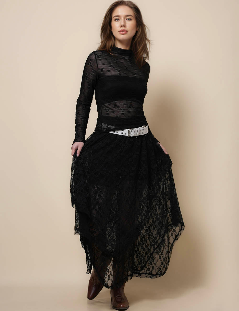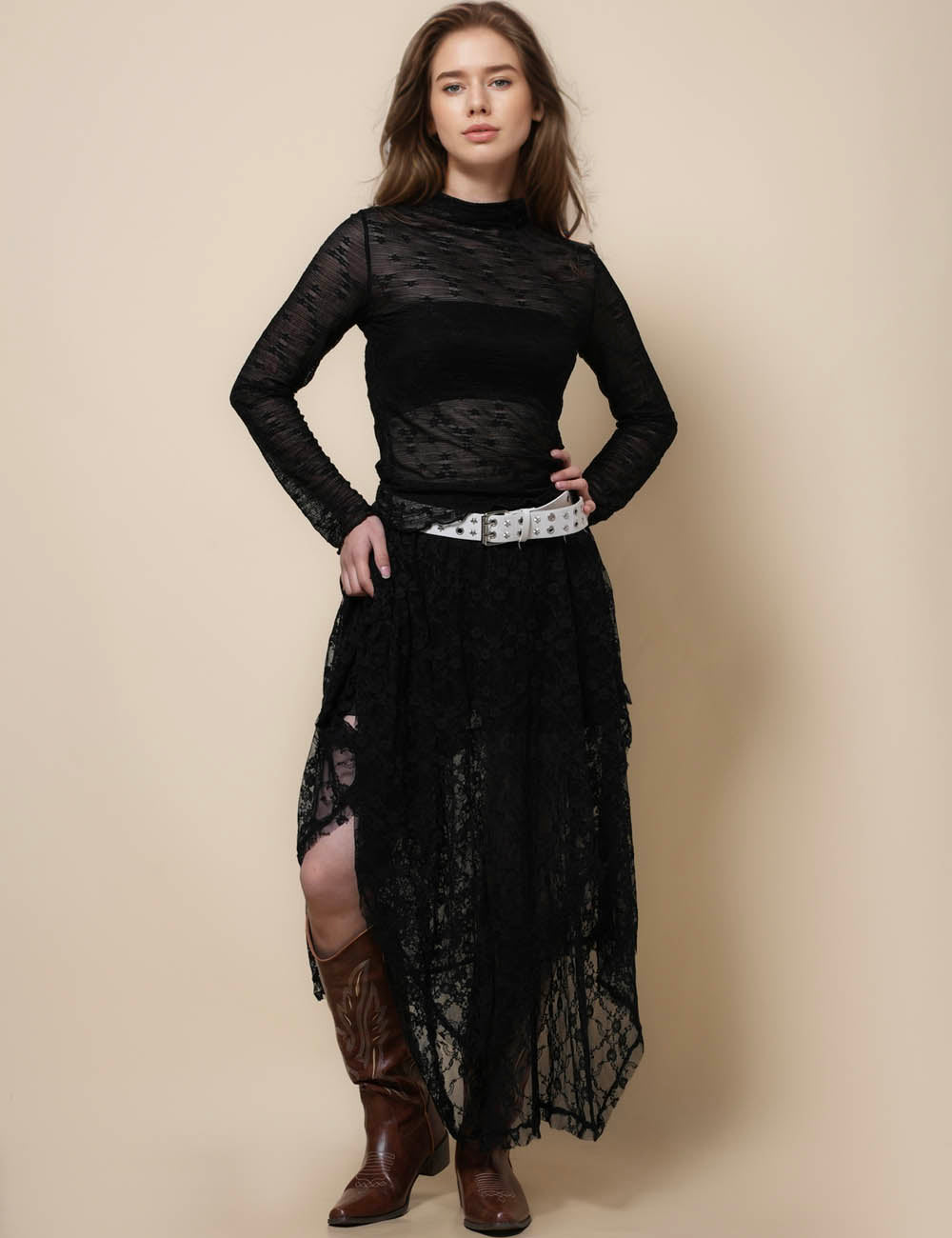 * Model wearing S size in white, apricot, beige and black