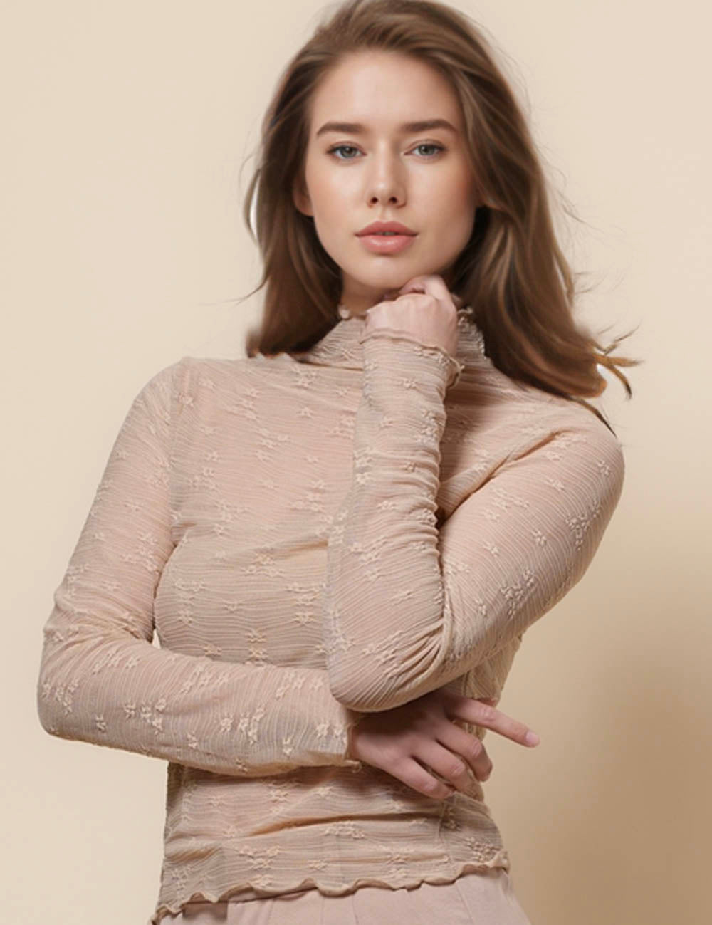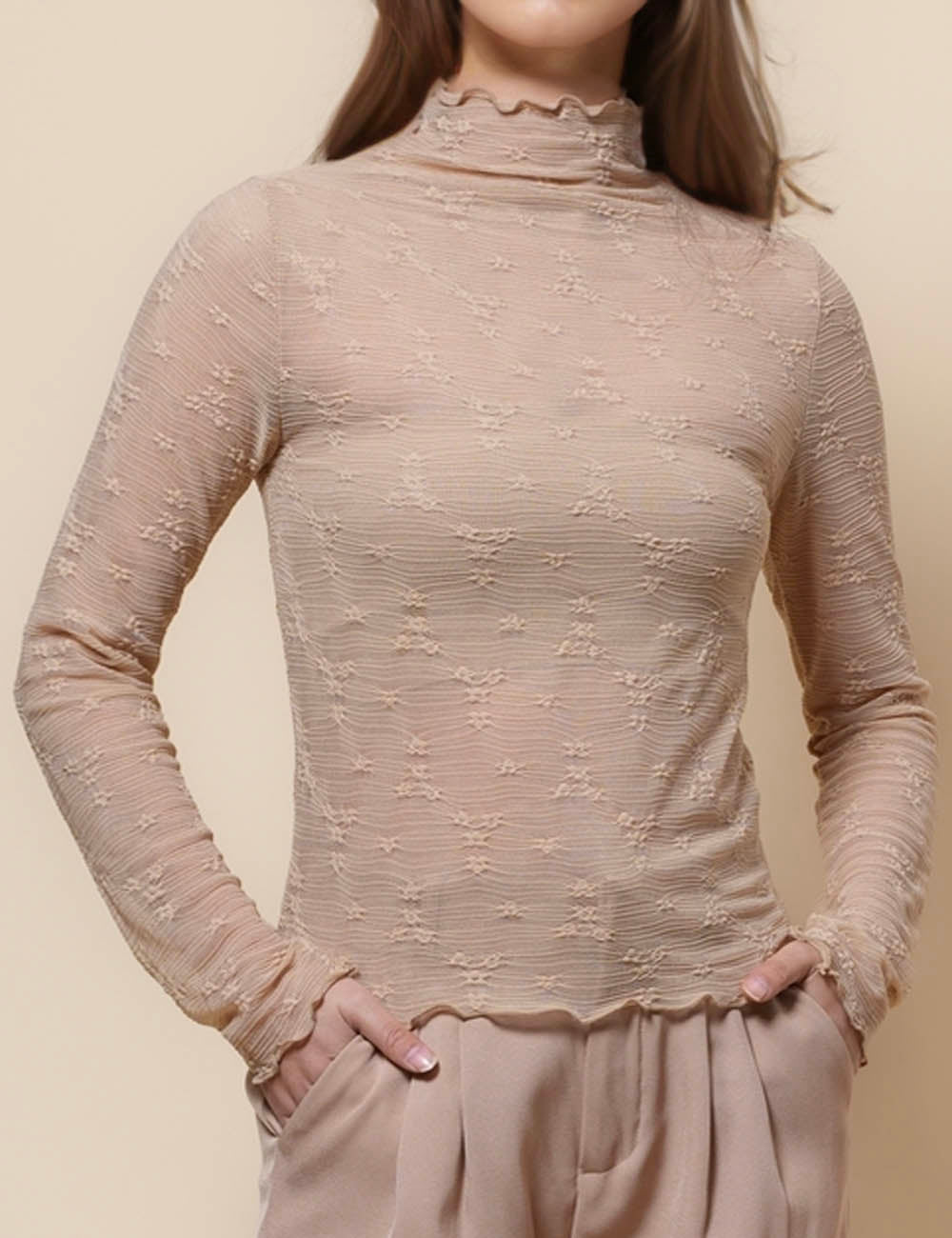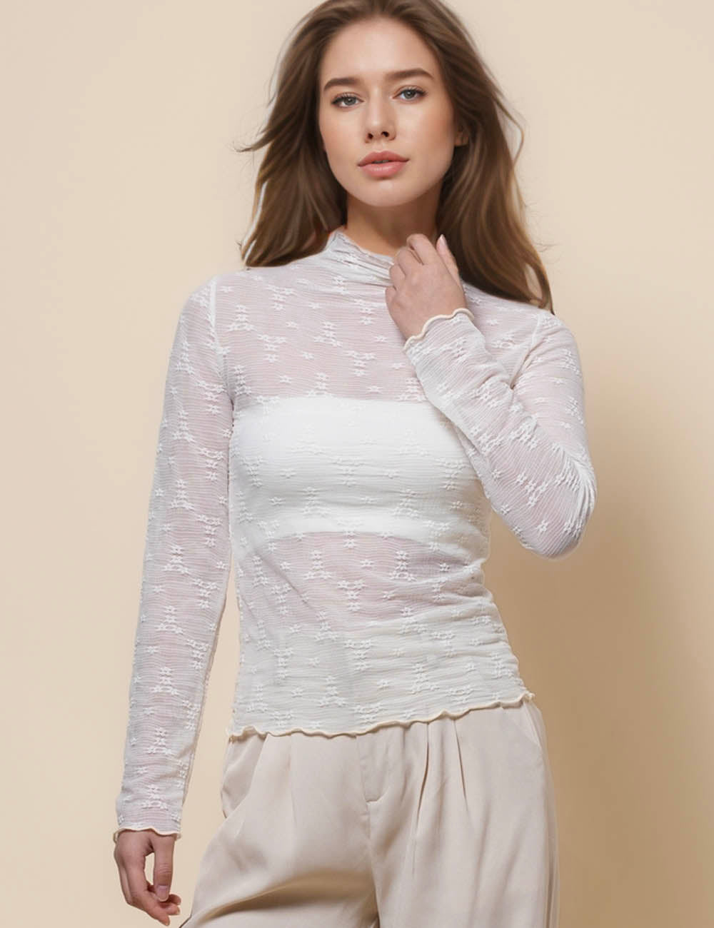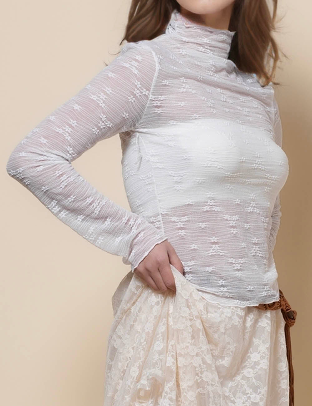 Ladies Tiny Flower See Sheer Layring Top SKT41144