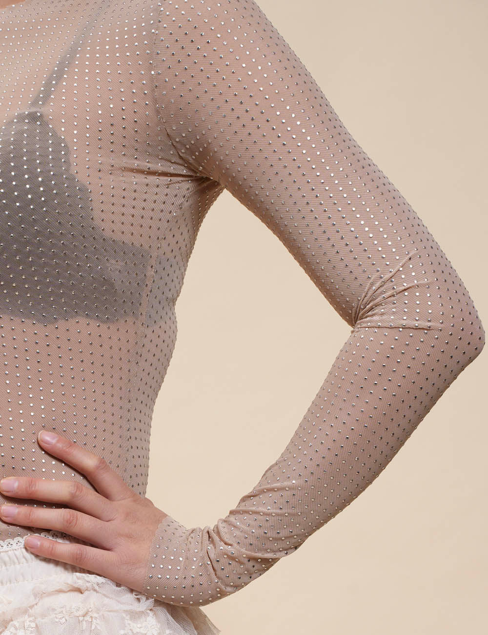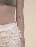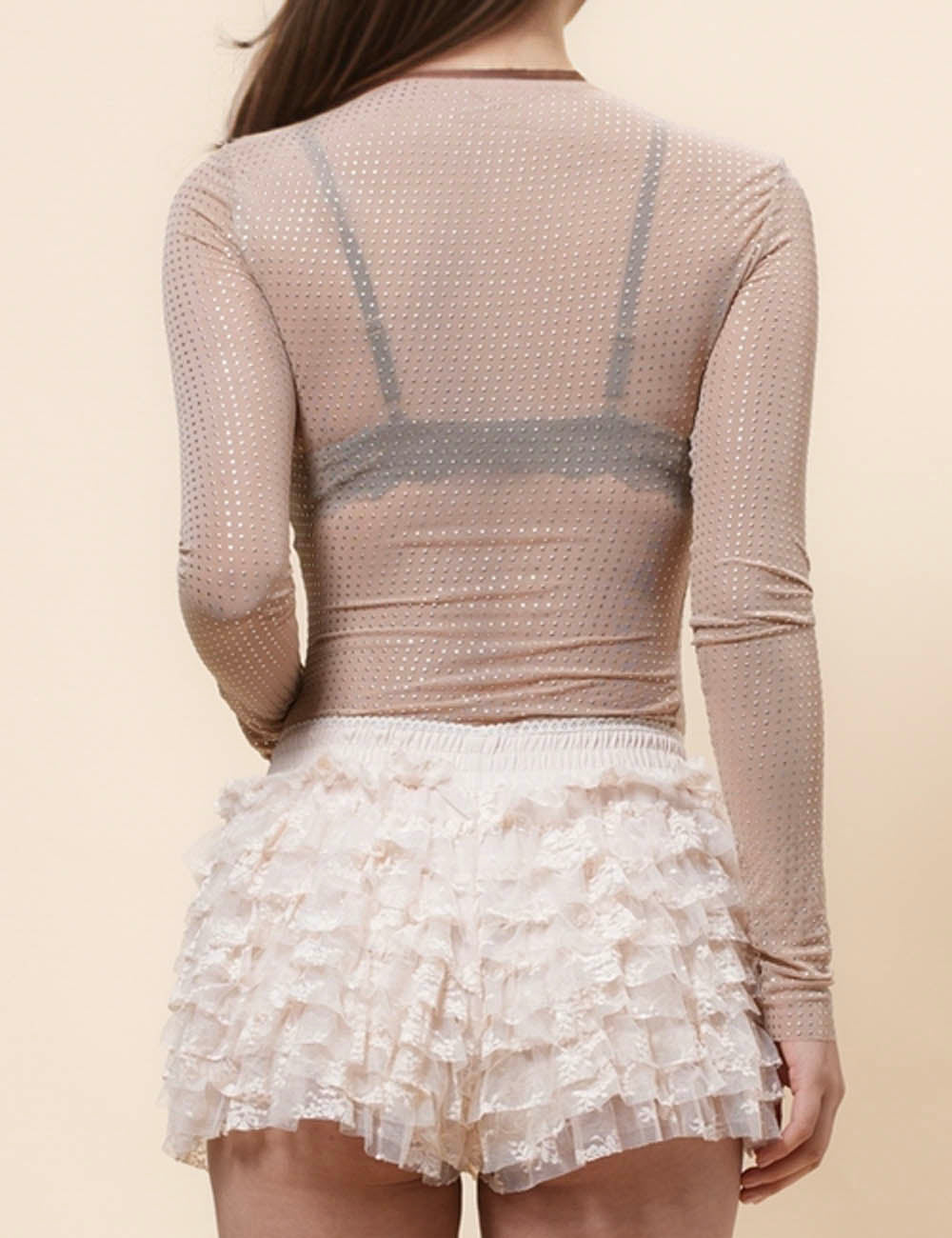 Ladies Tiny Spot Blouse See Sheer Mesh Layring Top SKT41013