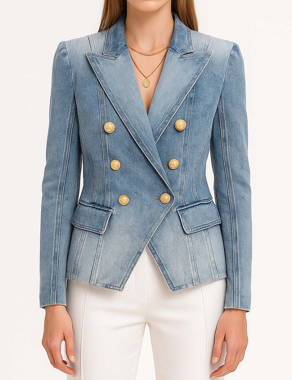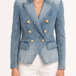 Ladies Trendy Jacket Golden Botton Denim Blazer 20026
